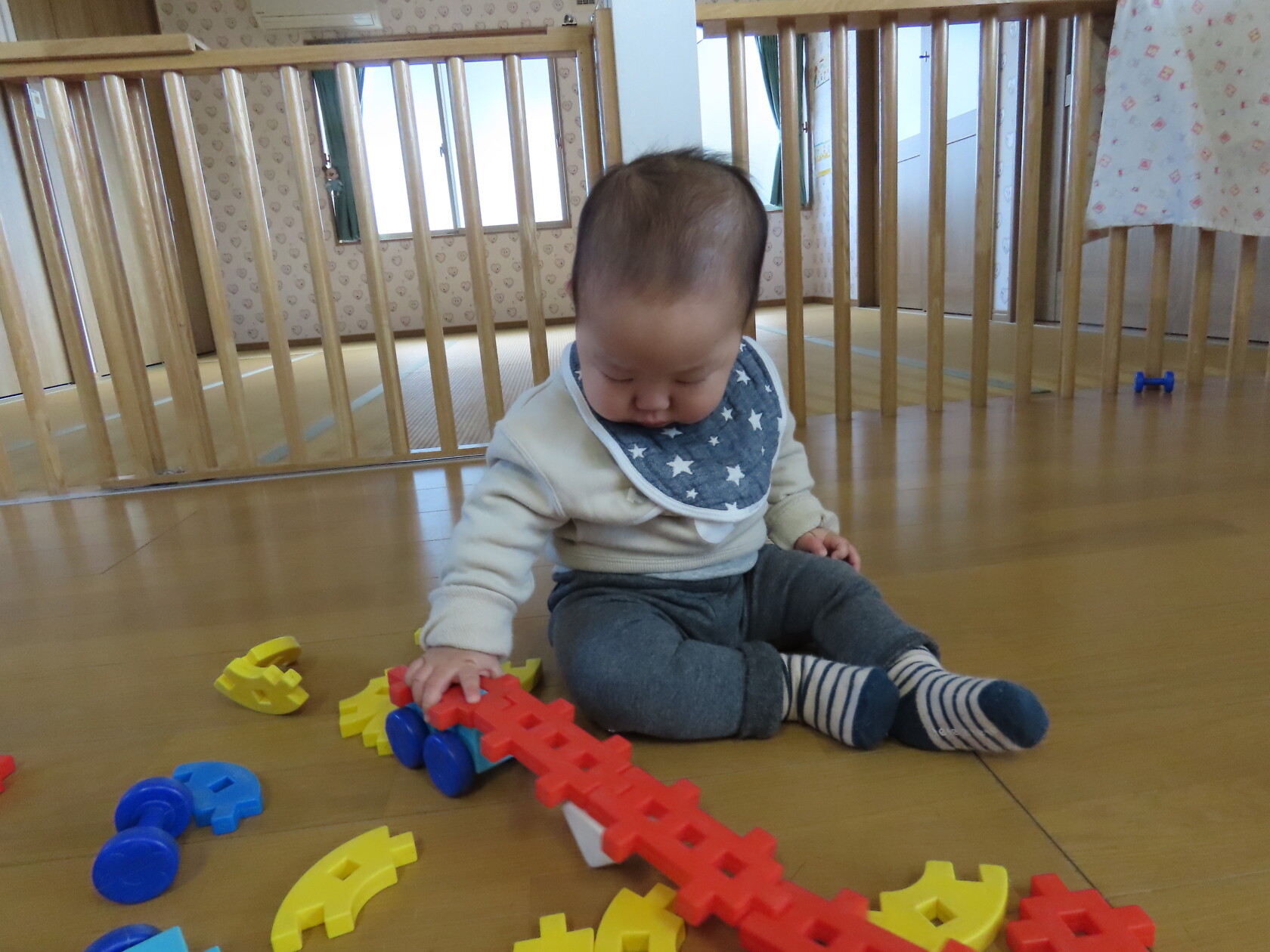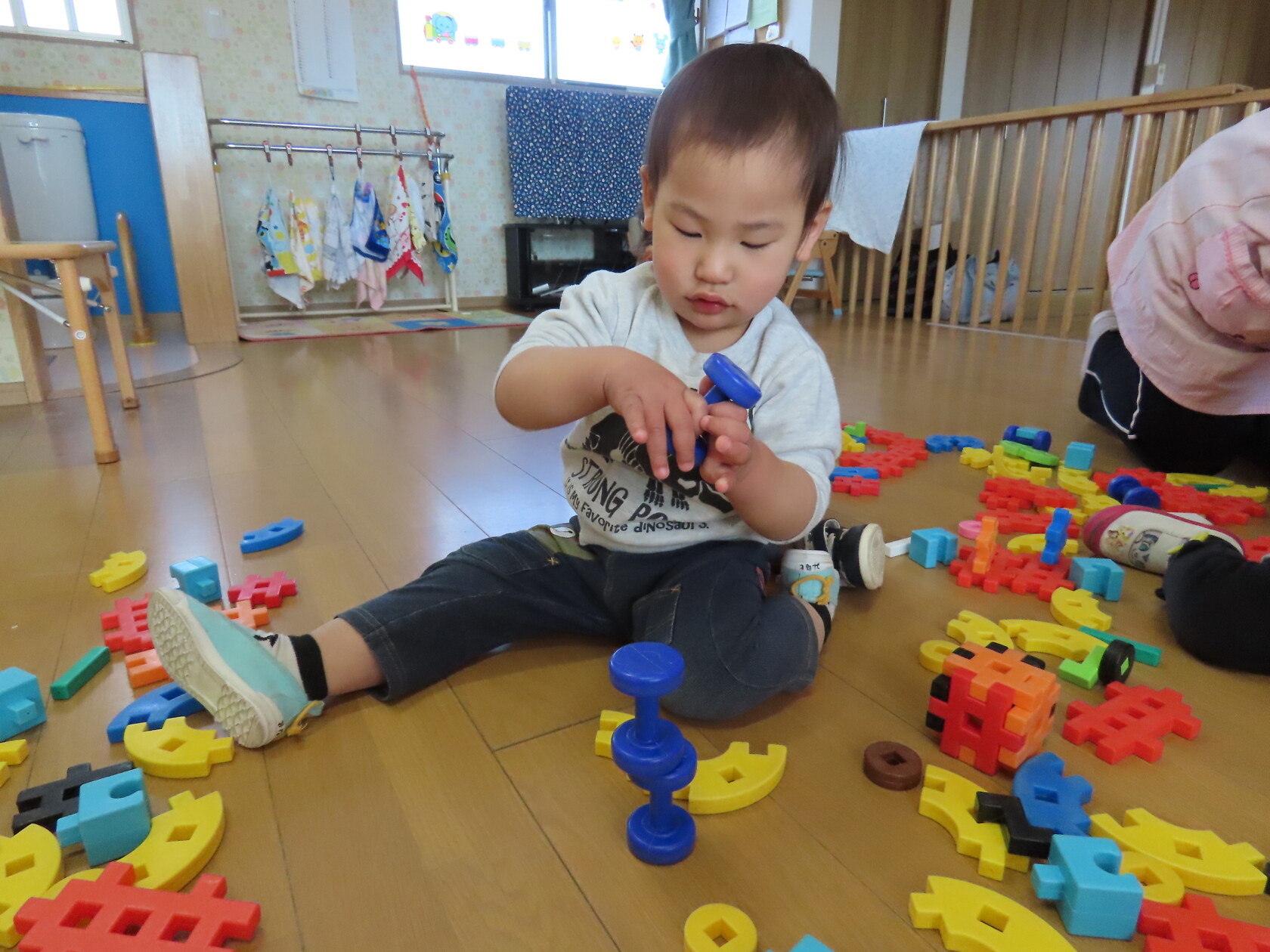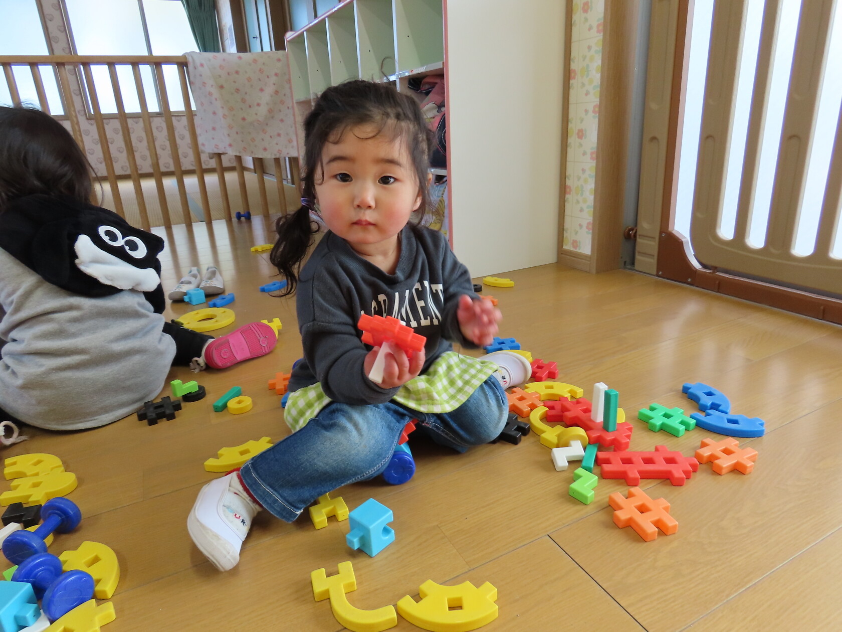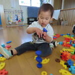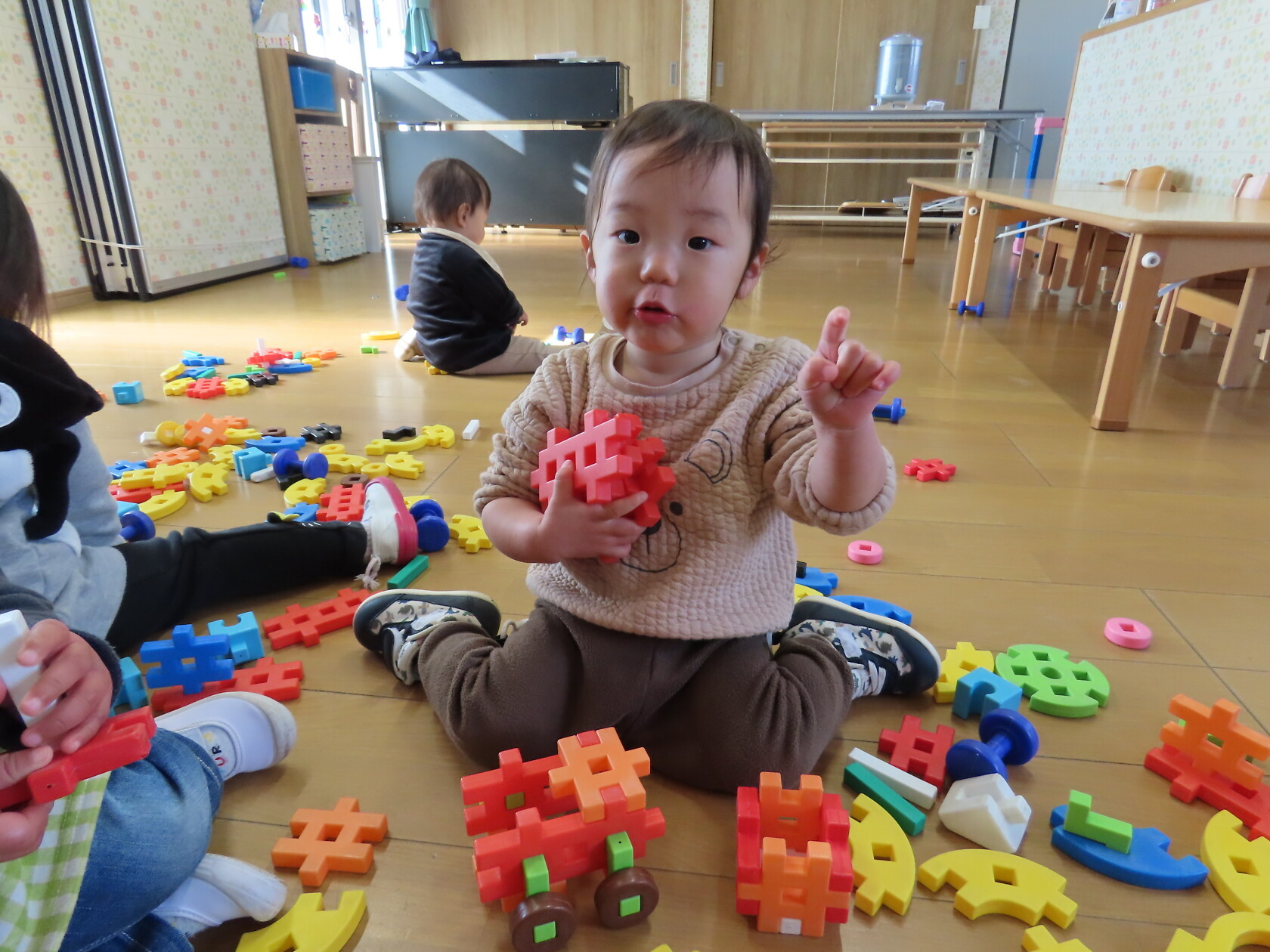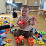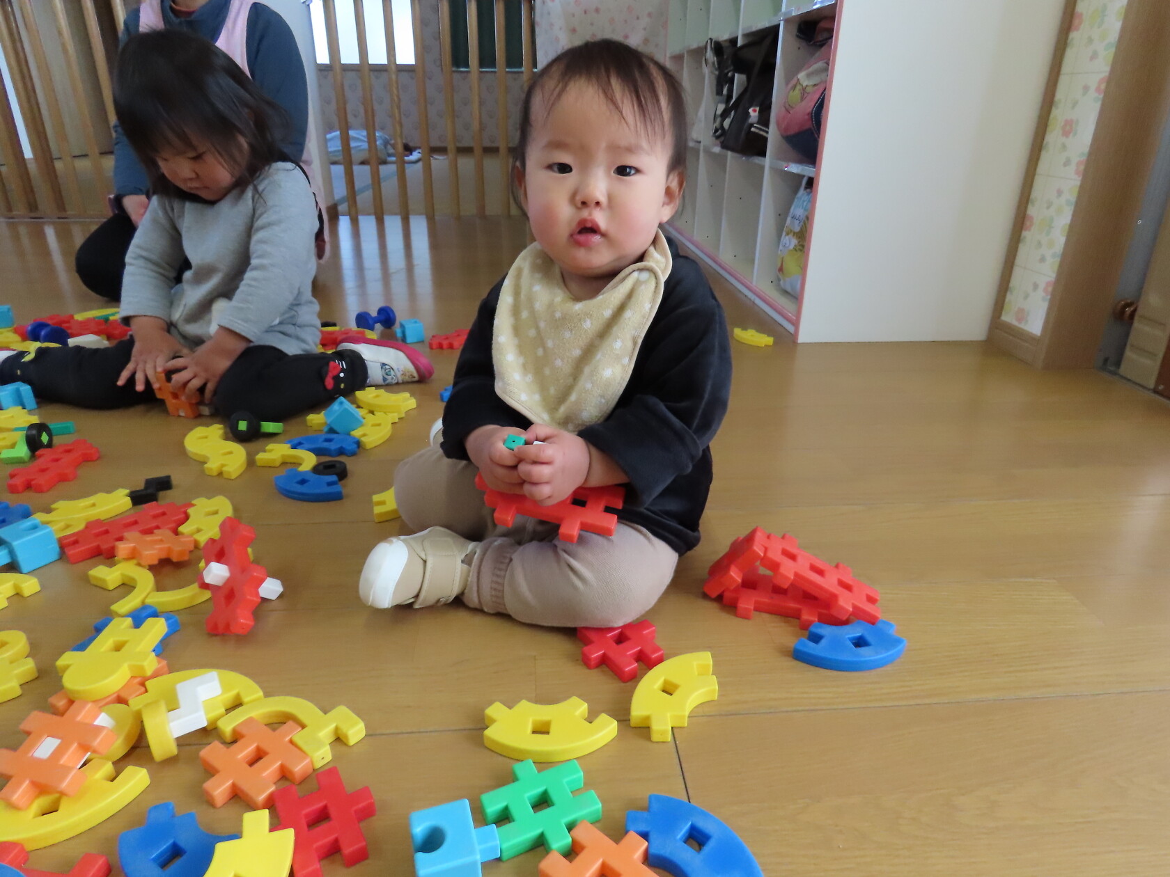 0歳児のお友達もブロックに興味を示し、遊べるようになってきました🎵