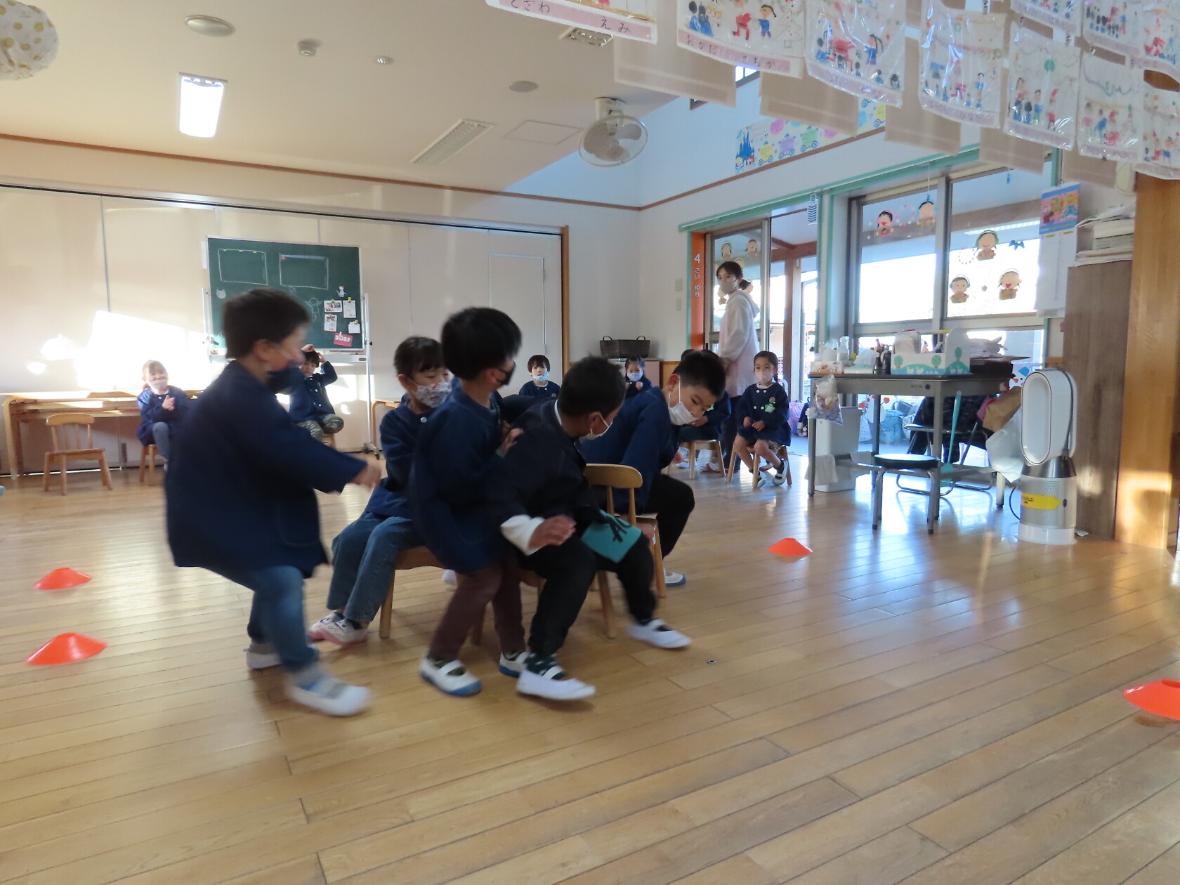 今日のできごと(ゆり) 公開済み: 2023年1月12日更新: 2023年1月12日 新年が始まり、久しぶりの登園から一週間が経ちました! 徐々に生活リズムも戻り、今日は今年初めての体育指導があり、鉄棒やなわとび、ばくだんゲームを楽しみました😊 また、火曜日にはひまわり組と合同でイス取りゲームをしました。少しずつ残れる子が多くなり白熱し、悔し涙を流す子や喜んで飛び跳ねる子など 様々な感情表現の子がいました✨ また合同で楽しくやりましょうね💕