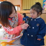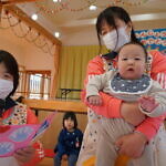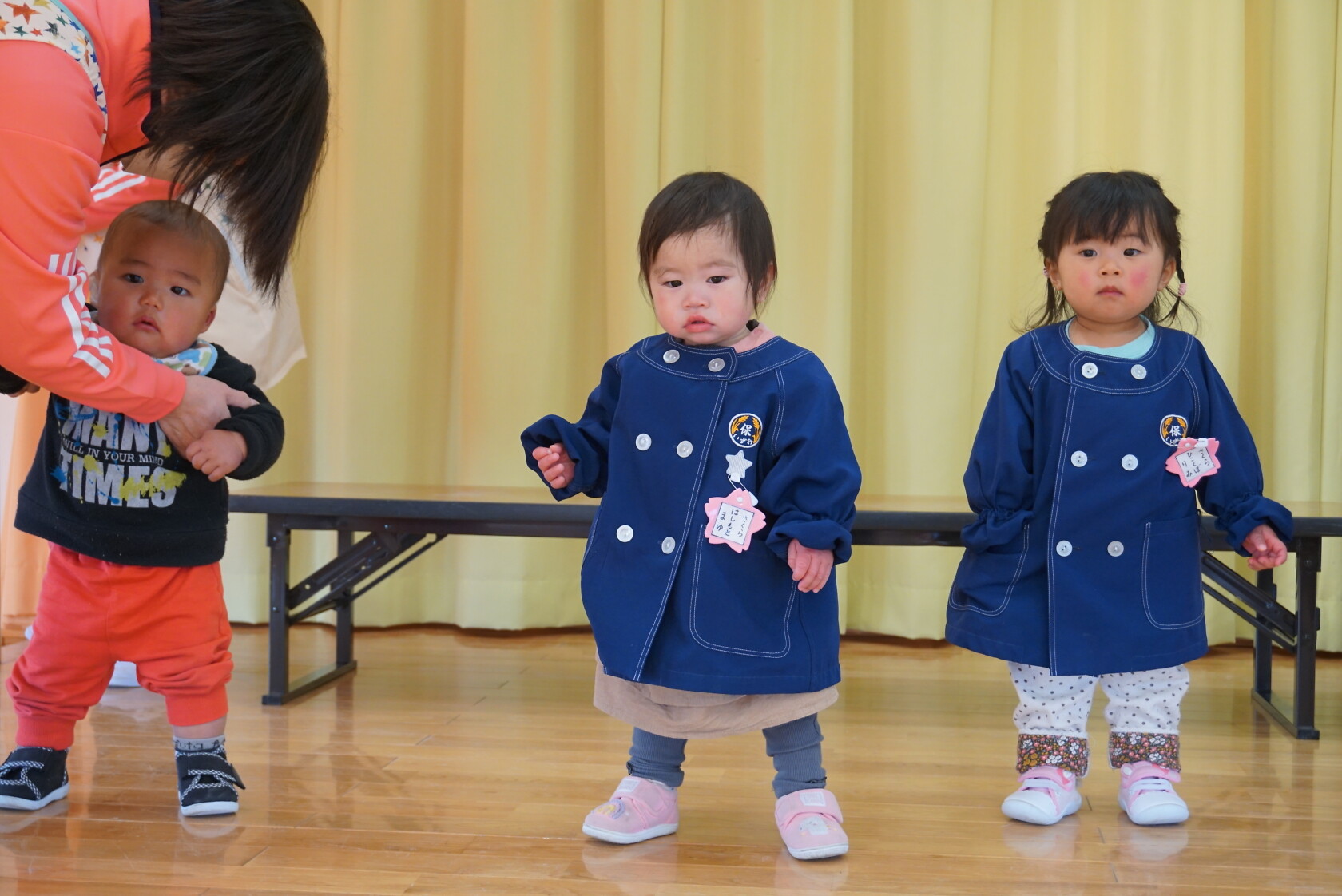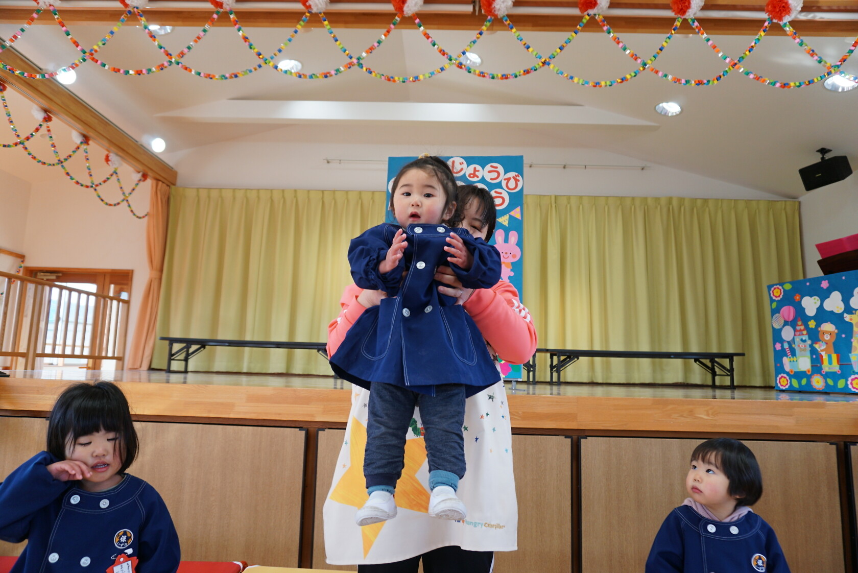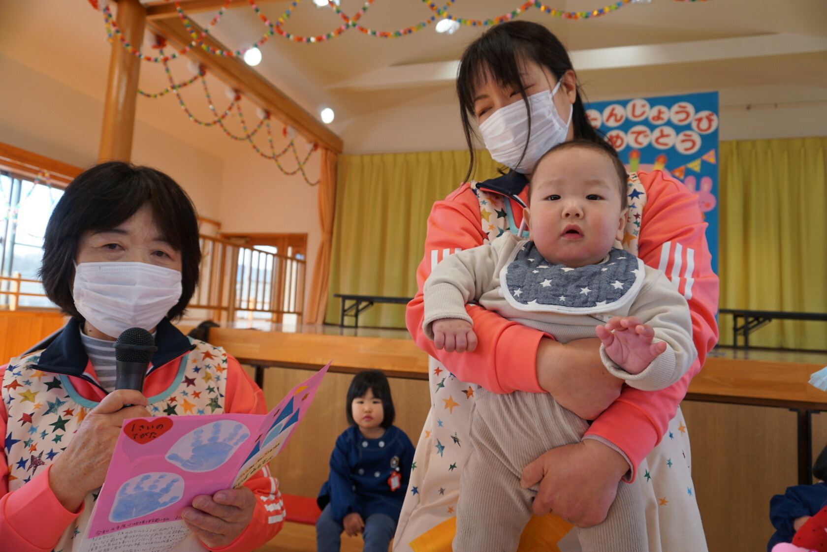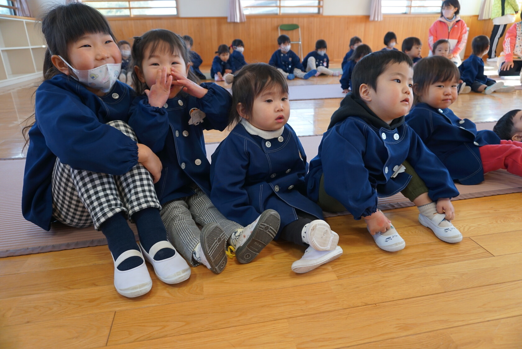 お誕生会(未満児) 公開済み: 2023年1月25日更新: 2023年1月25日 今日は、1月生まれのお友達のお誕生会がありました✨ 今月は、6名のお友達をお祝いしました😆お名前を呼ばれ恥ずかしそうに前へ出ますが、沢山のお友達に「おめでとう‼👏」とお祝いされ、とても嬉しそうでした😌 各クラスからの歌のプレゼントは、 小規模さくら「豆まき」、「雪だるまのチャチャチャ」 さくら「豆まき」、「ゆきのこぼうず」 ちゅうりっぷ、小規模ちゅうりっぷ「雪」、「げんきなうんちたいそう」を歌いました🎵 どのクラスも大きな声で歌い、堂々と踊りながら、とっても可愛らしい発表でした✨ 1月生まれのお友達、お誕生日おめでとうございます❣❣