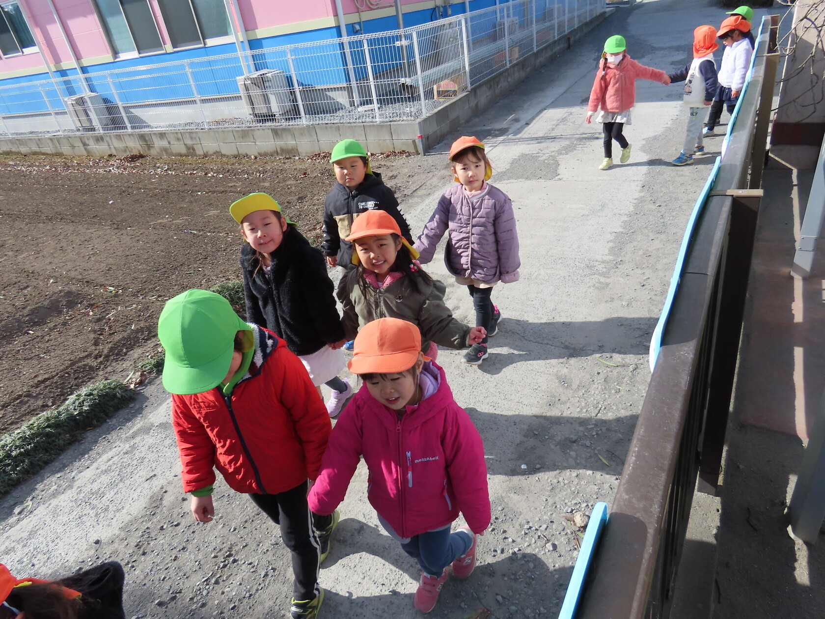 今日のできごと(ひまわり・ゆり) 公開済み: 2023年1月25日更新: 2023年1月25日 今日はお誕生会の後で園外散歩に行きました 「散歩に行きます!」の掛け声に「やったーーー!!」の大歓声 さて今回はどのコースだったでしょうか・・・・・? 是非ご家庭で聞いてみて下さい