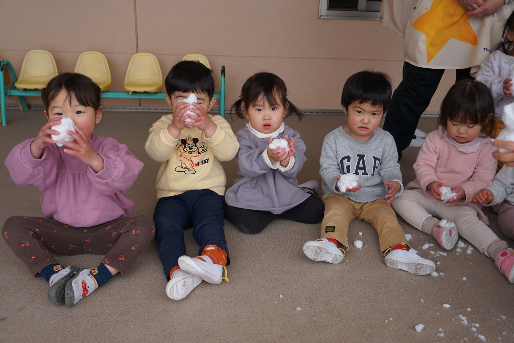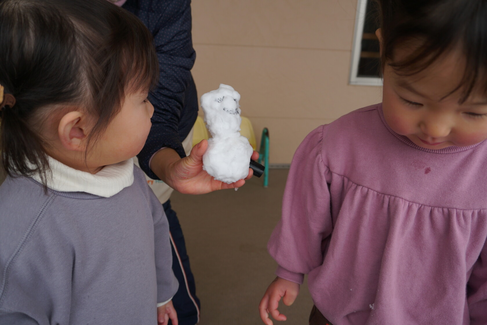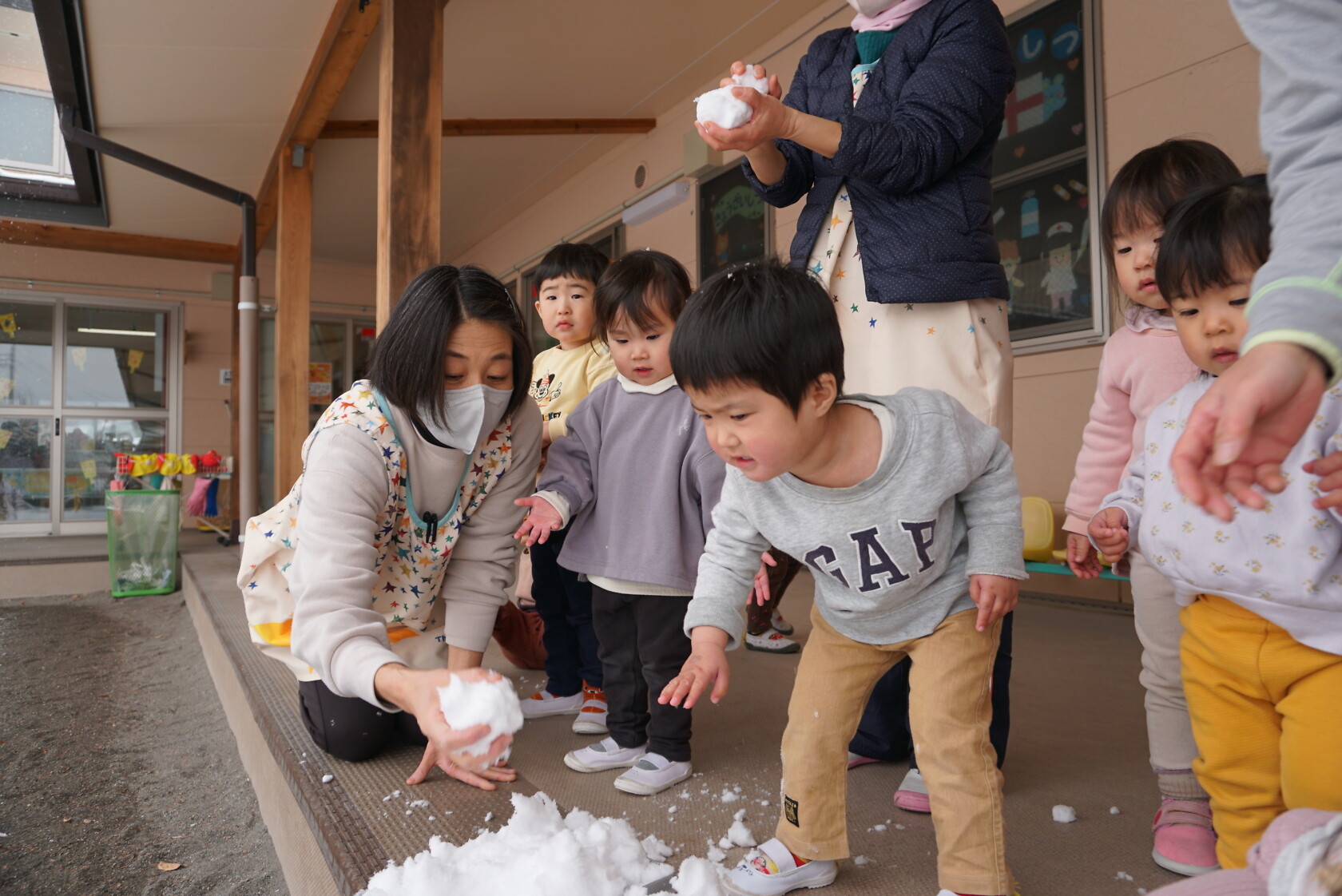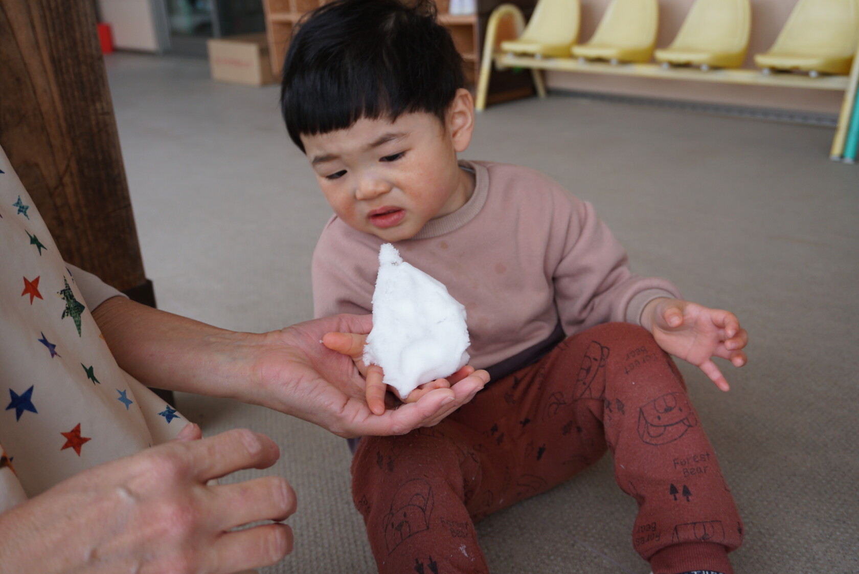 今日のできごと(さくら) 公開済み: 2023年2月10日更新: 2023年2月10日 今日は、朝から雪が降っています。 大人は心配ですが、子ども達は、外を嬉しそうに見つめていました。 お昼前には園庭も真っ白に❄✨ 外の様子を見に行こう!と誘うと「いくー!」と、元気いっぱいのお返事が返ってきました。外へは出られなかったので、先生が雪を集め持っていくと、 「わぁー!」「つめたーい!」と歓声があがりました😆 もっと遊びたいようでしたので、お家でも雪遊びを楽しんで下さいね😁❄