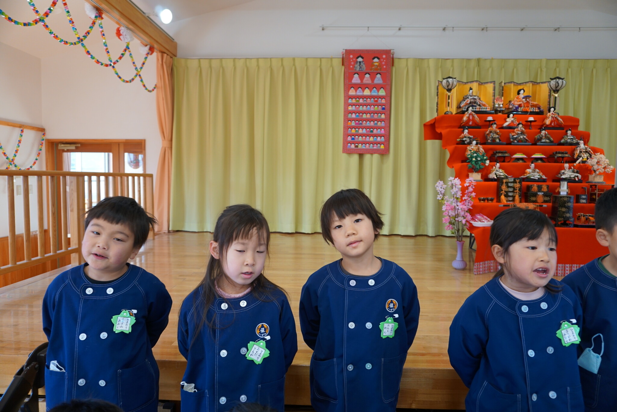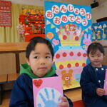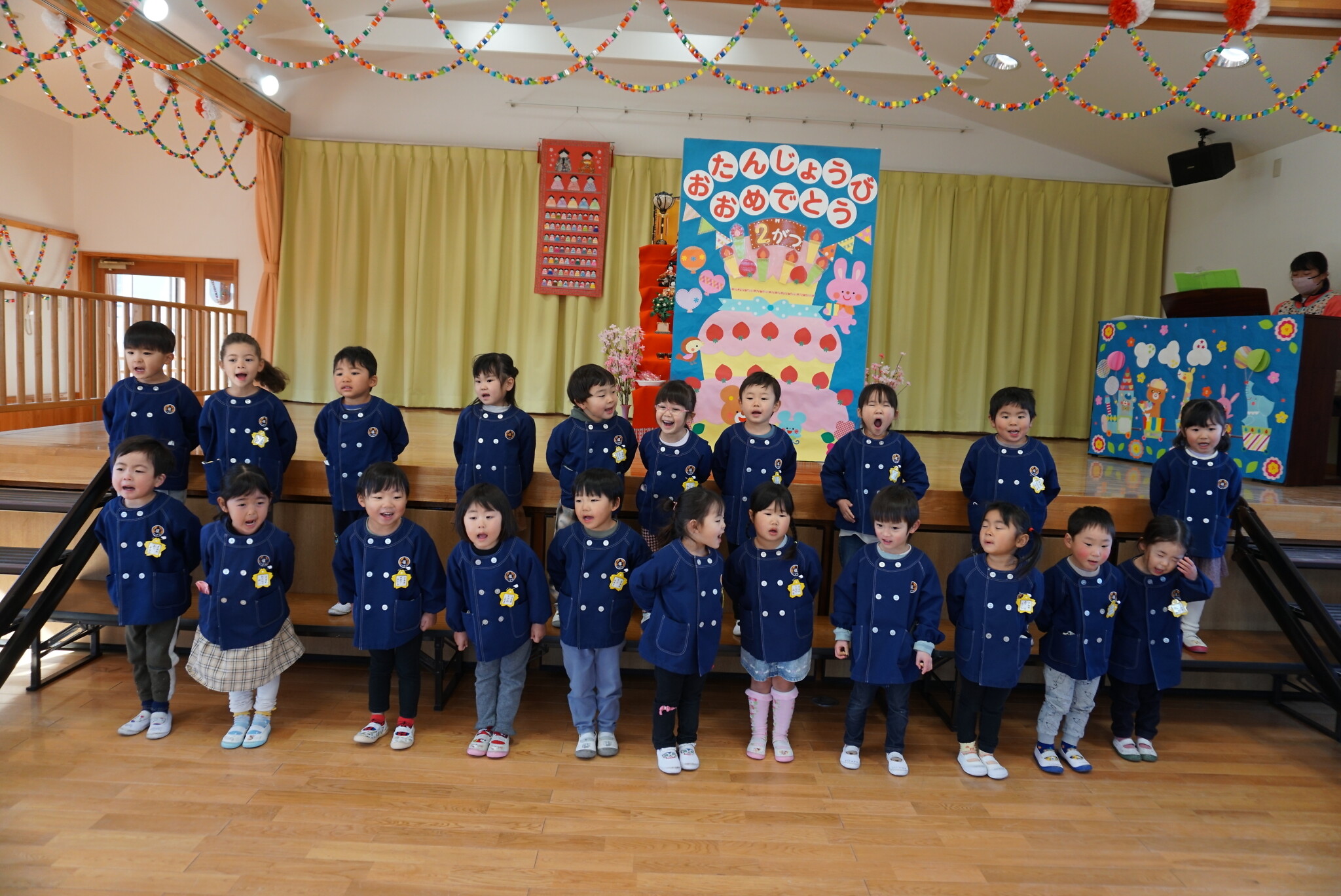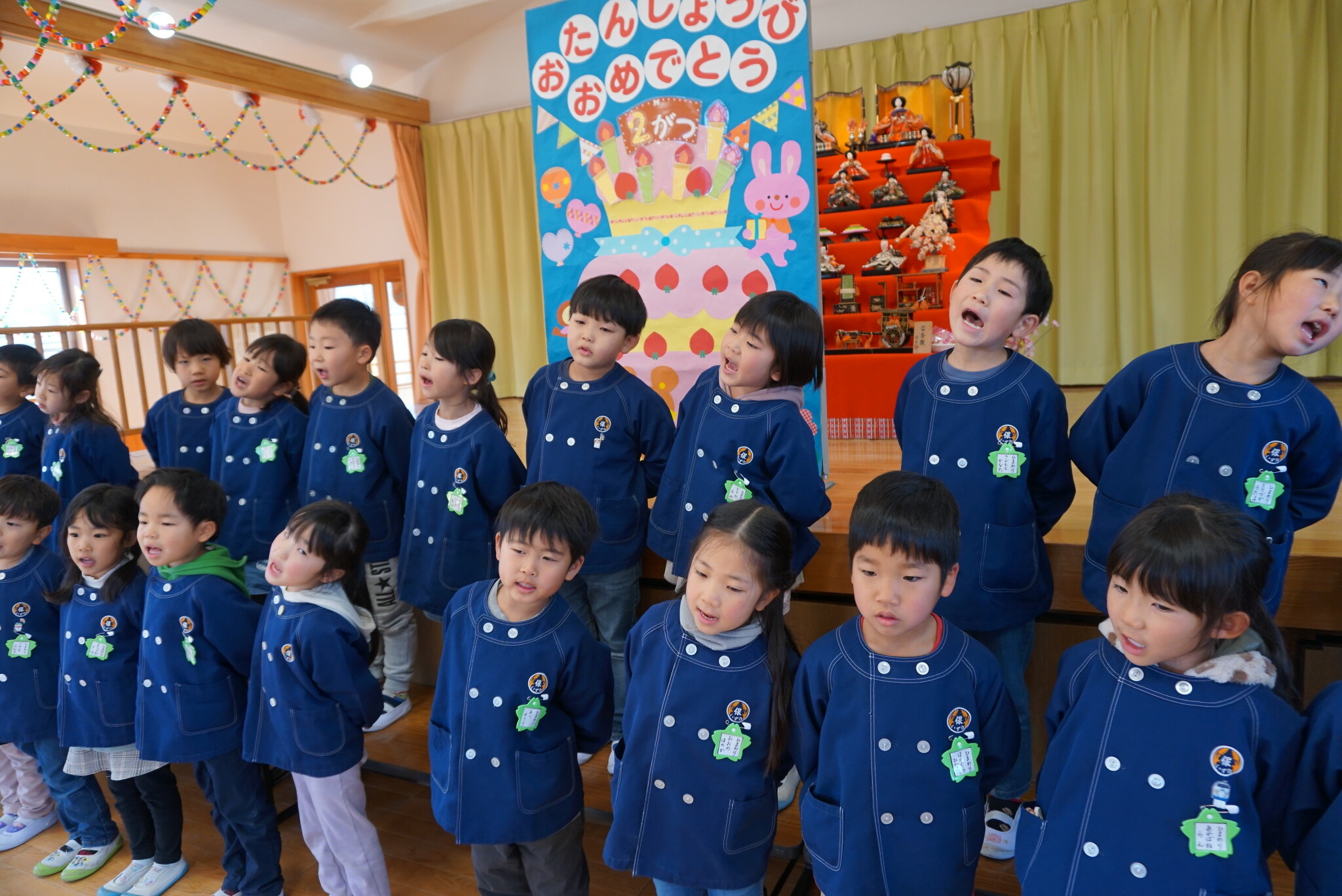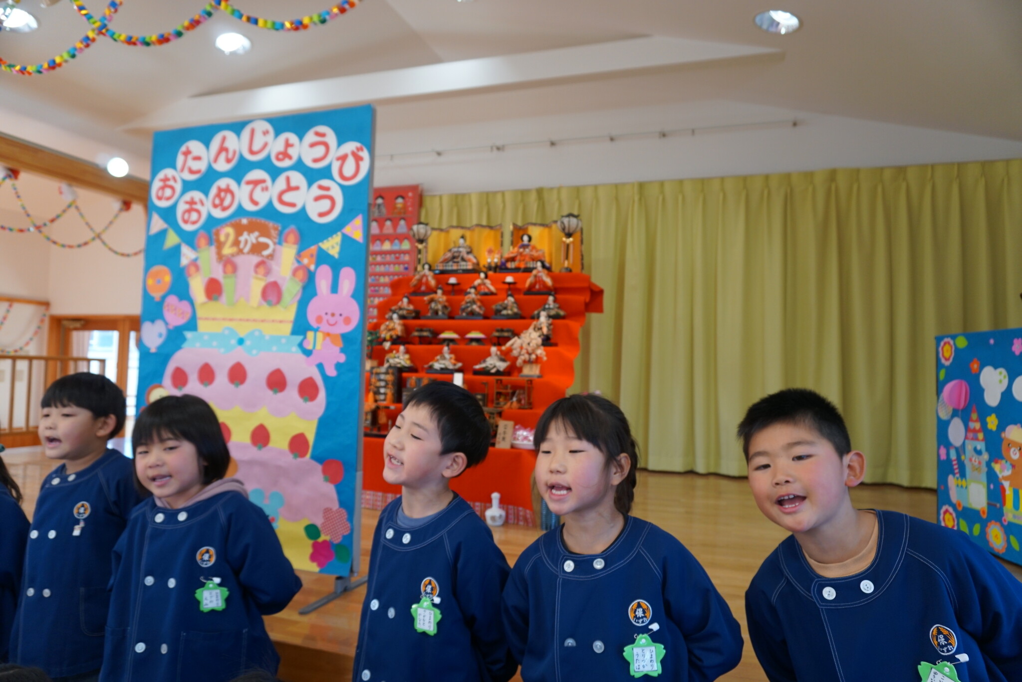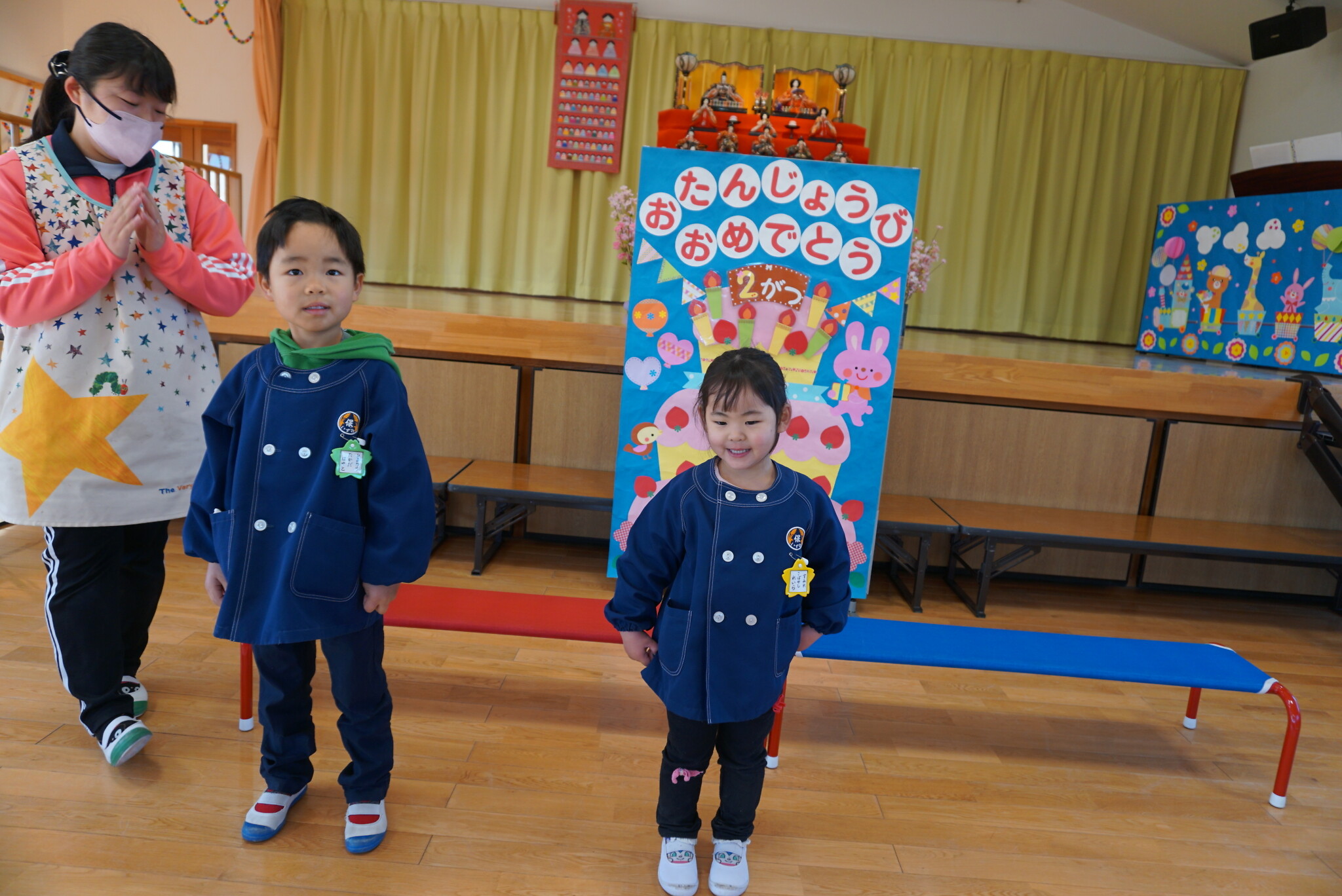 お誕生会(以上児) 公開済み: 2023年2月22日更新: 2023年2月22日 今日は2月生まれのお誕生会がありました! ひまわり組1人、すみれ組1人でした。2人は名前が呼ばれると大きな声で返事が出来ました😊 又、保育士からのお誕生カードのプレゼントはとても嬉しそうで、手元のカードの写真や手型を何度も見返していました😁 お歌のプレゼントでは、 すみれ組「ふしぎなポケット」「こねこのパンやさん」 ゆり組「雪祭」「地球の歌」 ひまわり組「みんなおおきくなった」「たいせつなたからもの」でした! 2月うまれのおともだちお誕生日おめでとうございます!!