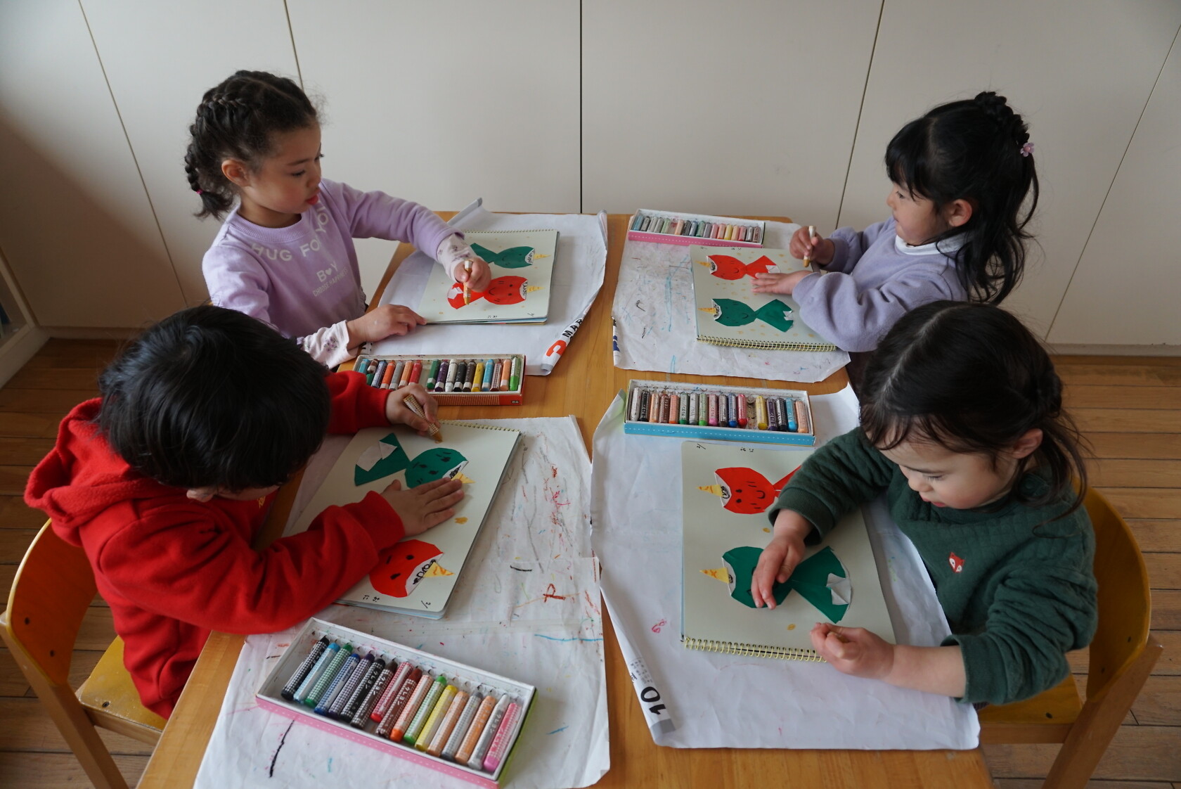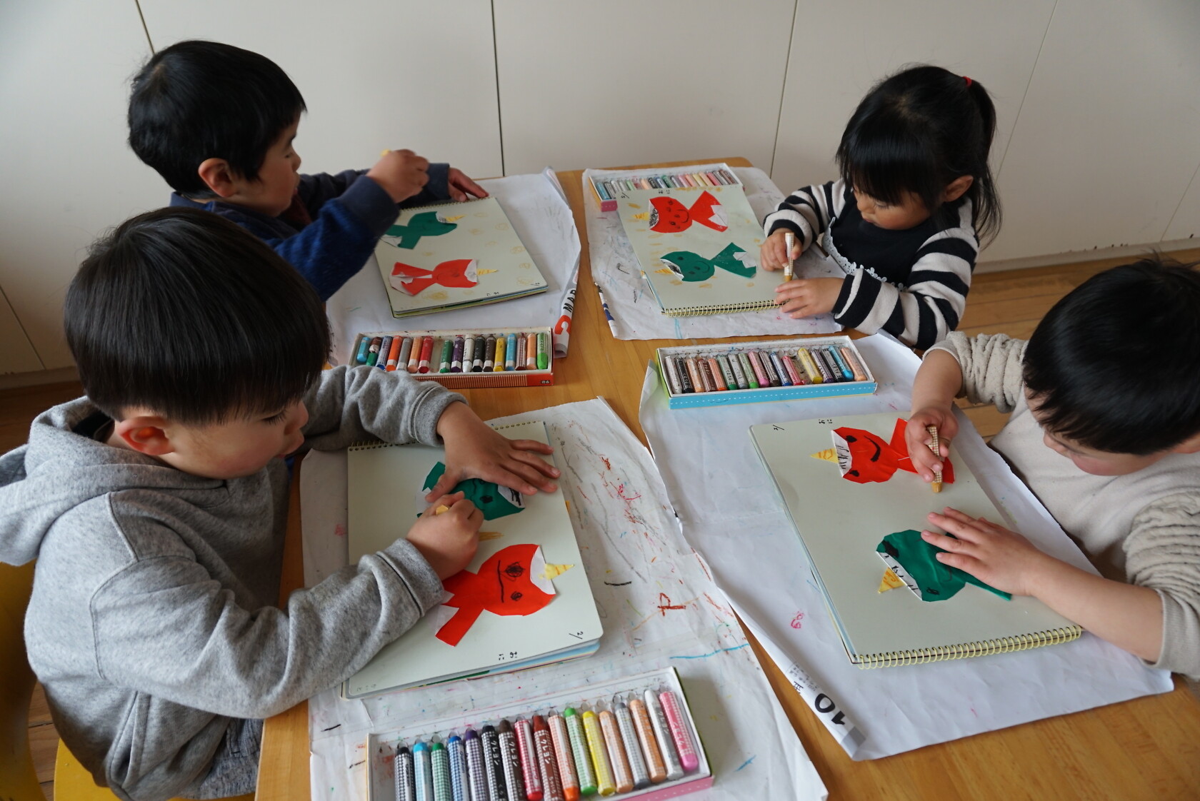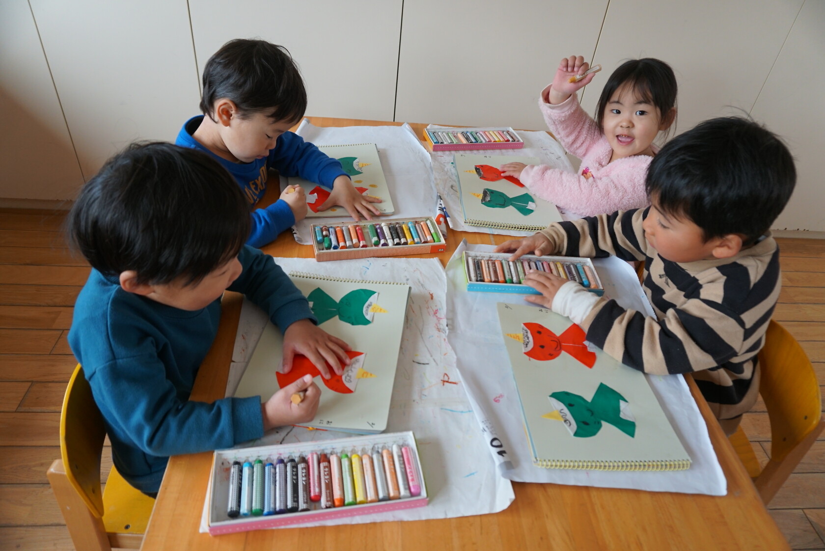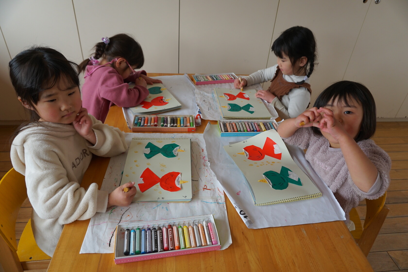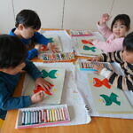 今日は製作帳(鬼)の続をしました😀折り紙を切ってから、体と顔を折り、みんなかわいい顔を描きました🖍 「僕んち、怖い鬼が来た‼」「私んち、かわいい鬼だったよ‼」と、節分の日の話を思い出しながら、楽しく製作ができました🎵