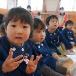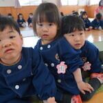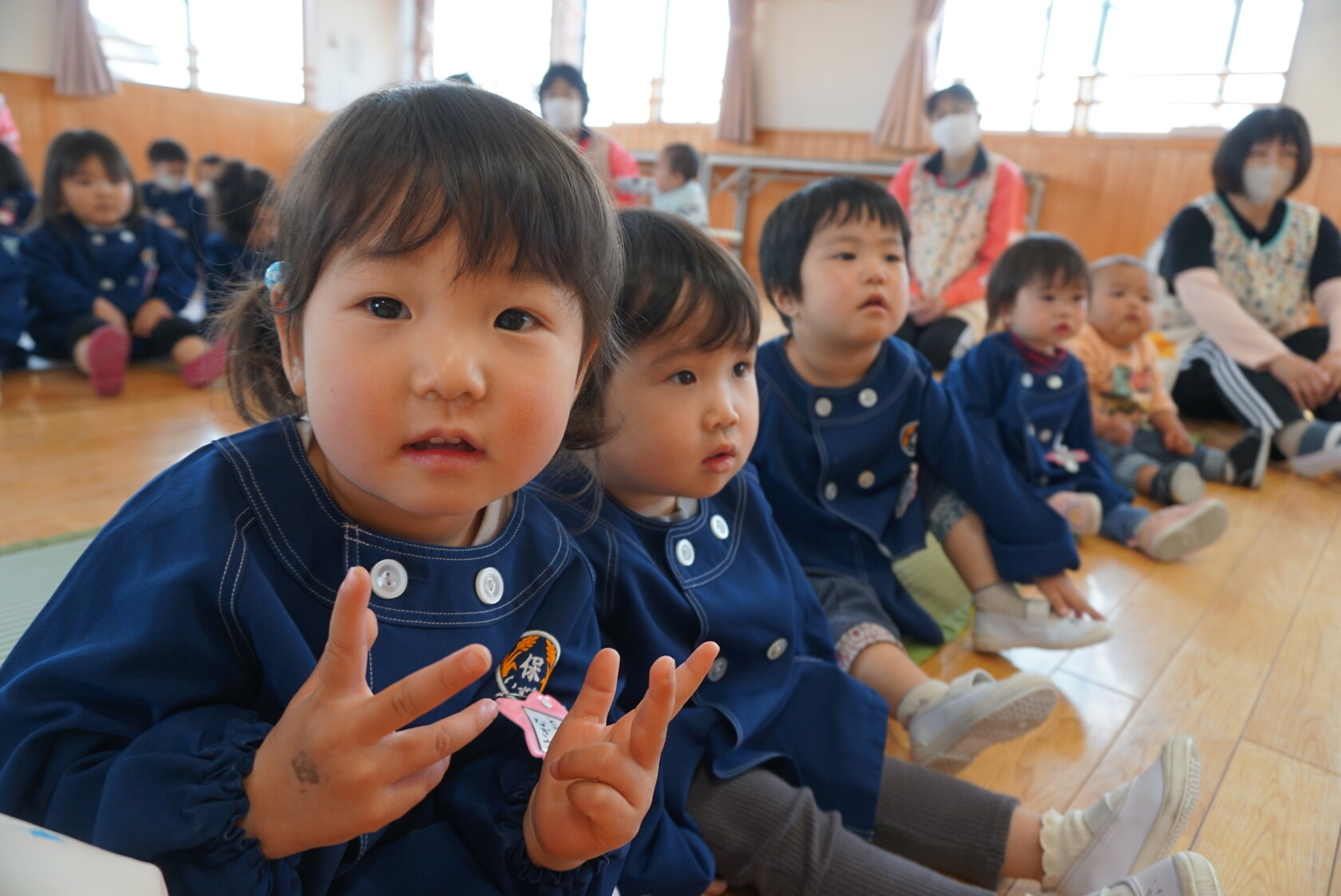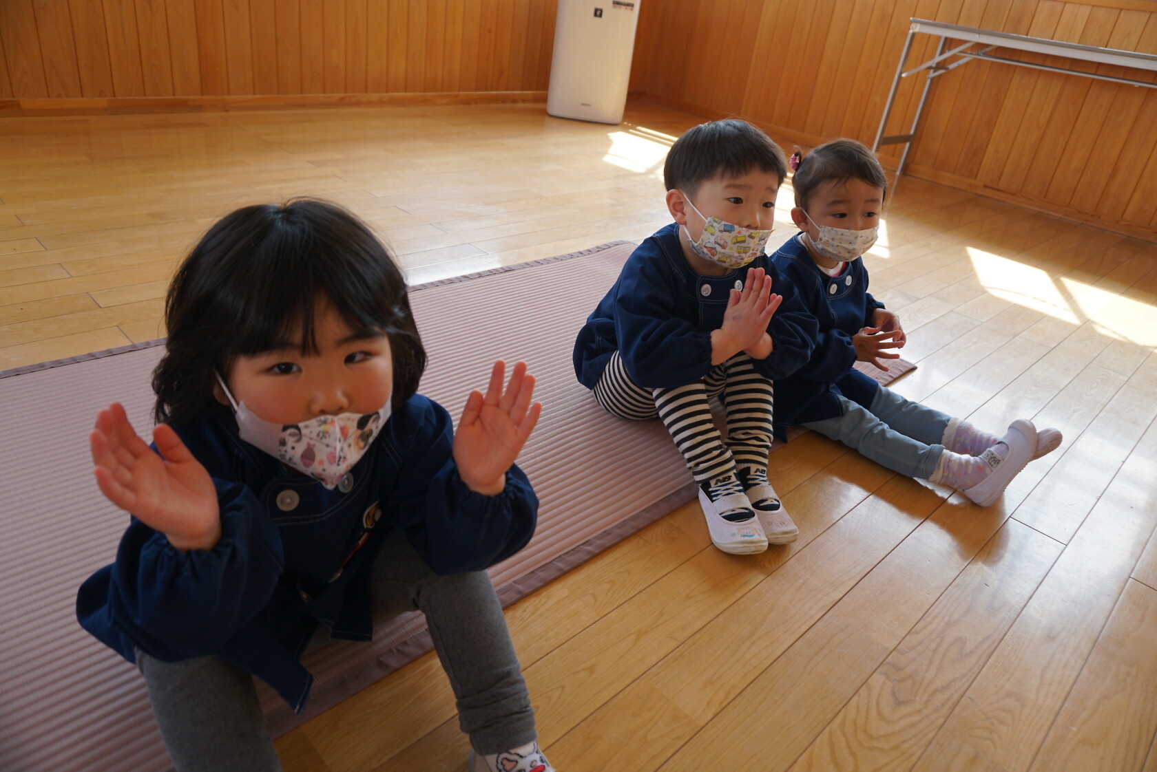 さくら組は、「春がきた」「つくしんぼ」ちゅうりっぷ組は「トントントンはいってますか」