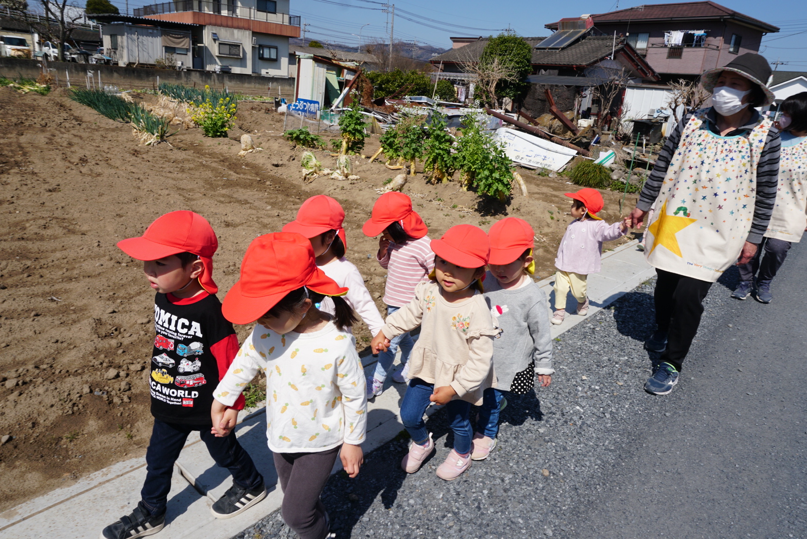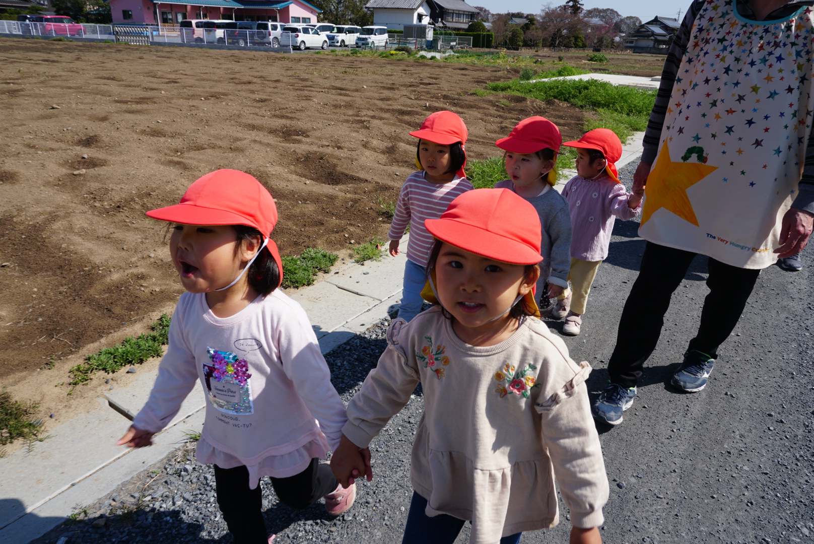 今日のできごと(ちゅうりっぷ・小規模ちゅうりっぷ) 公開済み: 2023年3月22日更新: 2023年3月22日 今日は、久しぶりにお散歩へ行ってきました♫ 「お散歩楽しいね!」「お花が綺麗だね!」等とお話したり、 道路や踏切の歩き方や渡り方の交通ルールやお約束を確認し、楽しく安全に行ってきました😊 途中、電車に手を振ったり、かわいい菜の花や満開のしだれ桜を見て嬉しそうな子ども達💕 今日お休みのお友達もいたので、また行けたらいいなぁと思います✨