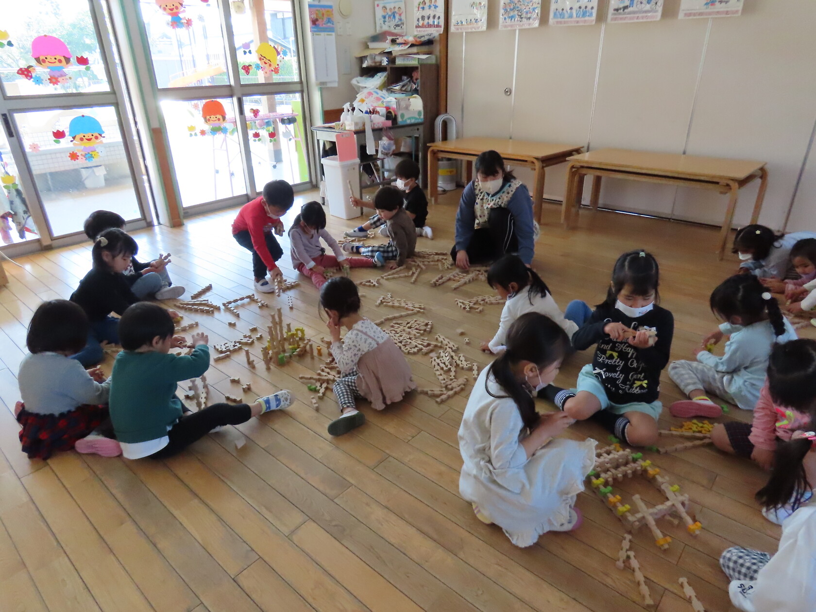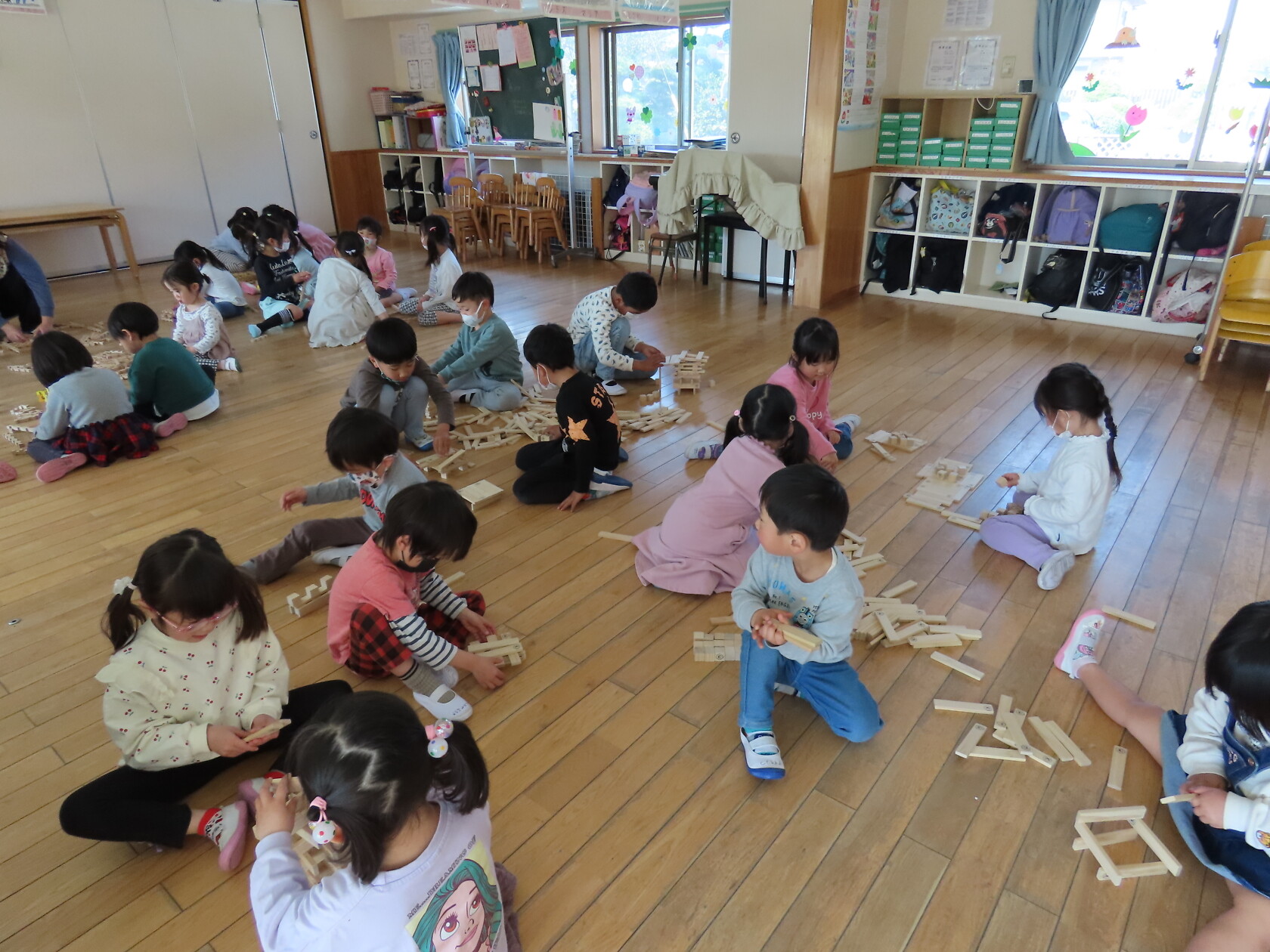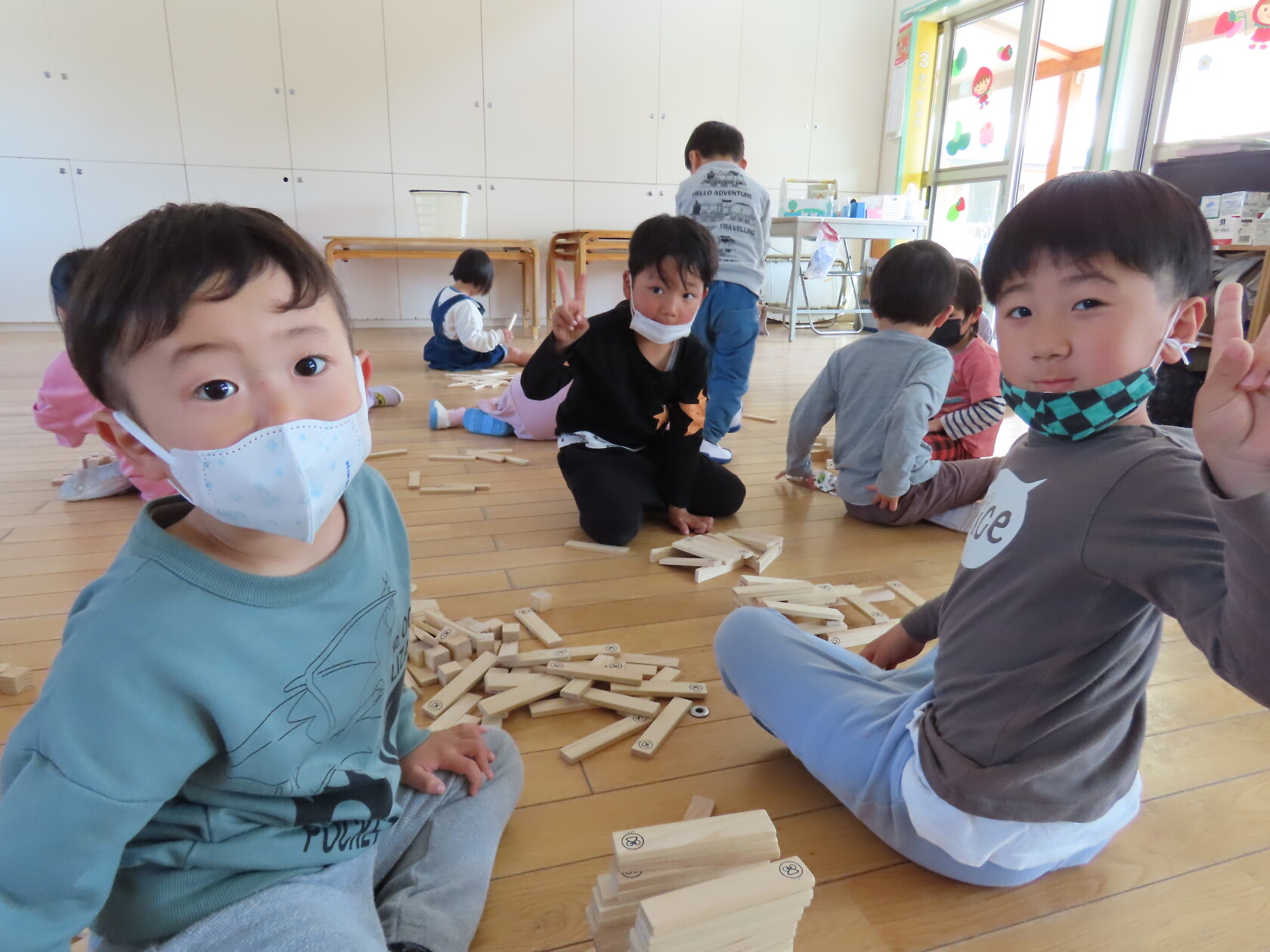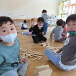 今日のできごと(ゆり・すみれ) 公開済み: 2023年3月22日更新: 2023年3月22日 今日はゆり組と合同になり、お部屋で、カプラとユークリッドブロックというおもちゃで遊びをしました😊 すみれ組は初めて使うおもちゃだったので、使い方を覚え、ゆり組と組み立てたり並べたりしながら、一緒に仲良く遊びました🎵 時々、「ちがうよ、ここだよ」と、声を掛け合いながら遊ぶ姿もあり、微笑ましい光景でした😊 たまには、ゆっくり遊べるこんな日もいいですね🎼