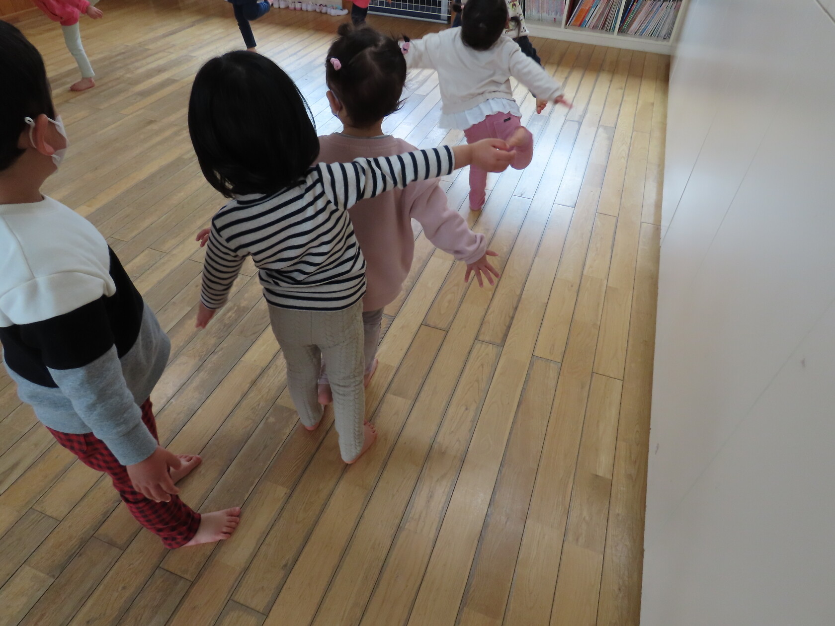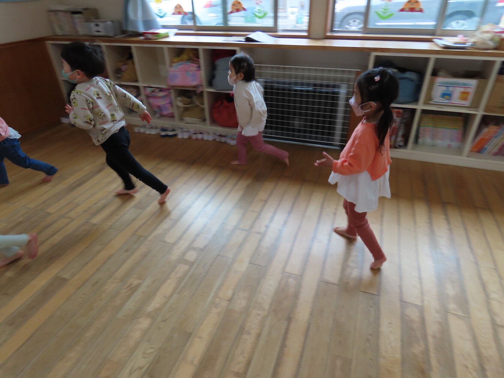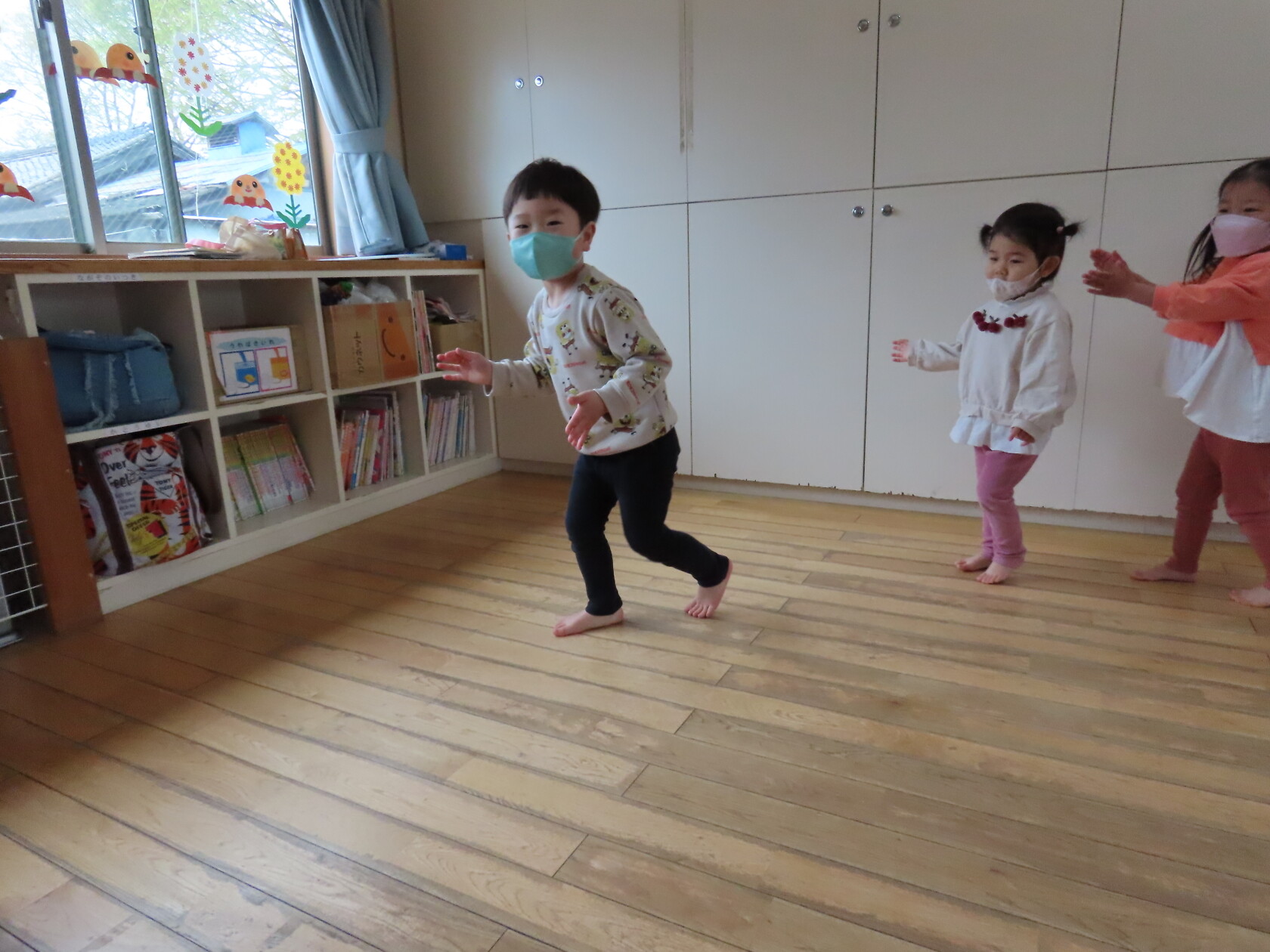 今日のできごと(ちゅうりっぷ) 公開済み: 2023年3月28日更新: 2023年3月28日 今日は、ちゅうりっぷ組のお部屋で、リトミックをしました🎼 自分で上履きと靴下を脱いで裸足になり「走ったり」「歩いたり」「ギャロップ」をしたり、色んな動きをピアノの音楽が聞こえると、自分から動き出すちゅうりっぷの子ども達は、とても上手になりました👏 一番大好きな音楽は「カメカメロック」です😁 お帰りの時に曲が流れると、楽しそうに踊っています😊 ちゅうりっぷさんも残すところ、あと2日になっってしまいましたが、楽しんでいきましょう🎵