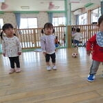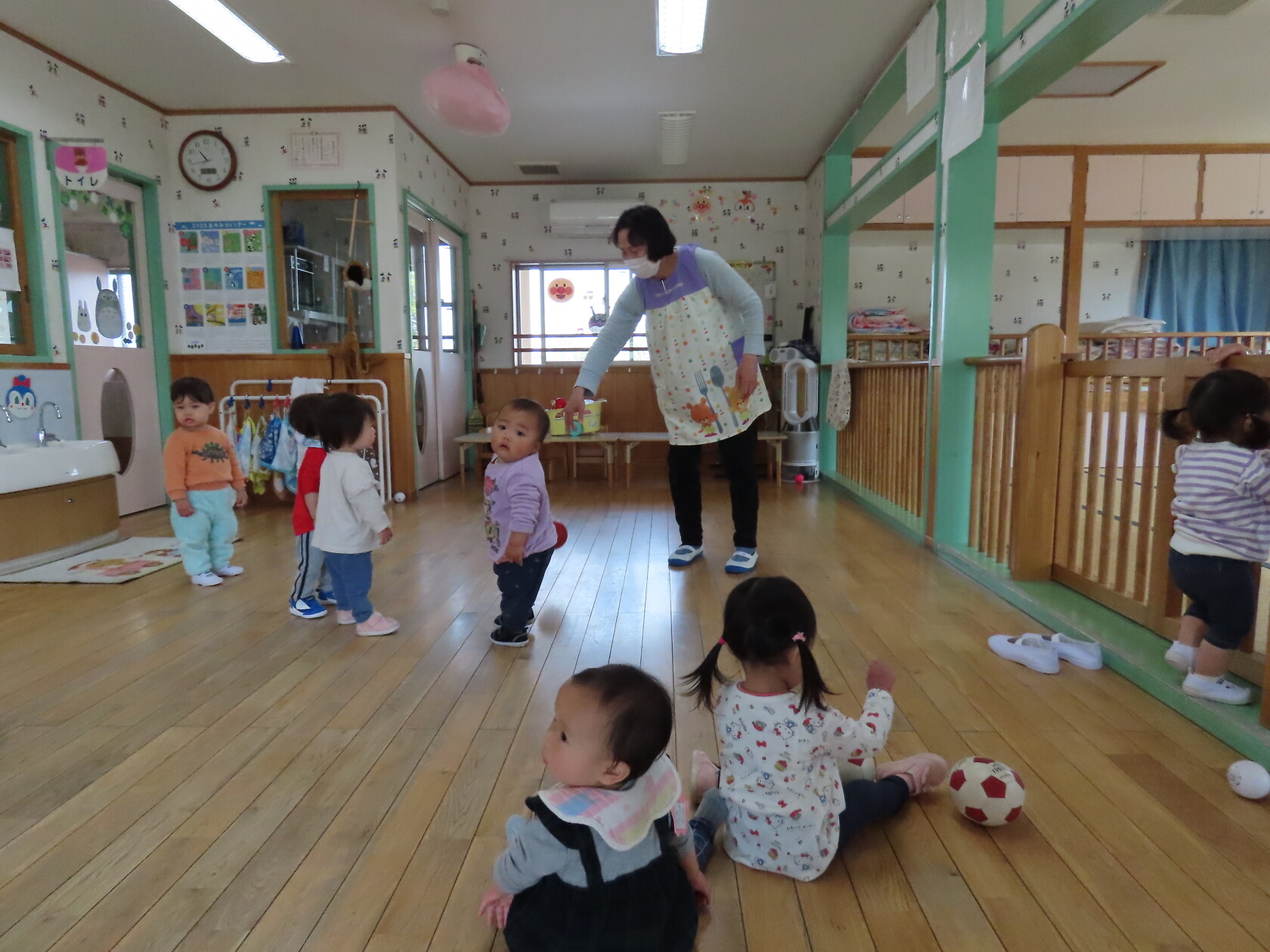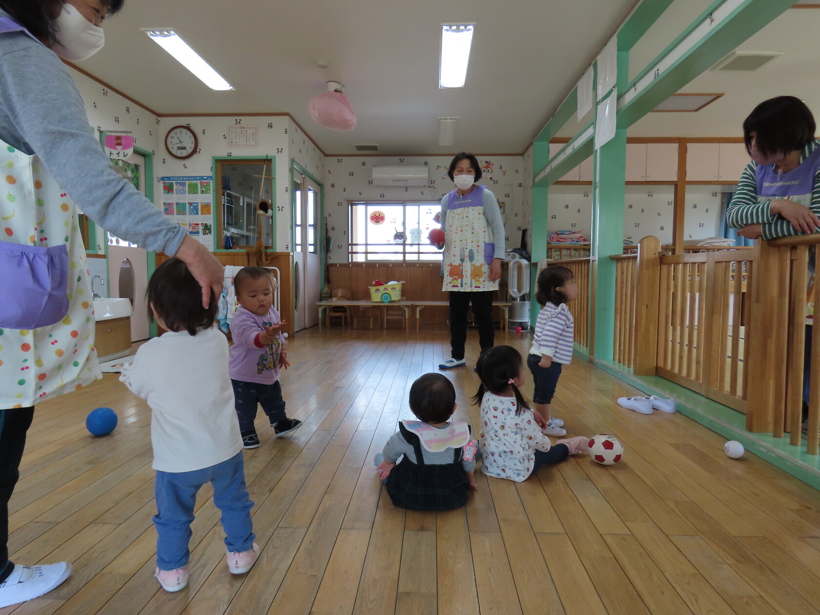 新しいお友だちは、泣いている時間が減って、笑顔を見せてくれることが増えてきました😊 今日は、お部屋で楽しい音楽をかけながら、みんなでボール遊びをしました🏀⚾ 投げたり、転がしたりして、楽しい時間を過ごしました🎵