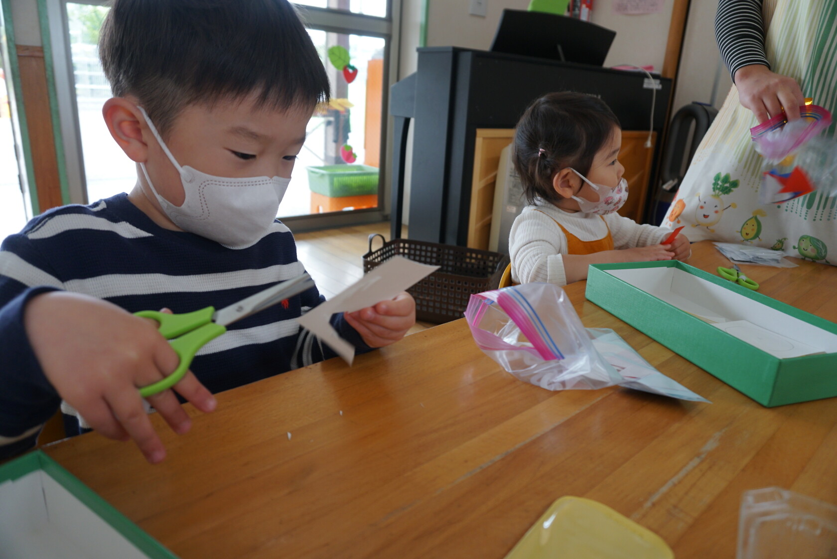 今日のできごと(すみれ) 公開済み: 2023年4月18日更新: 2023年4月18日 今日はこいのぼりの製作をしました🎵 ハサミを使って丸や鱗の三角形を切りました。 小さい丸や難しい形に少し苦戦することもありましたが、上手に切れると「先生、見てみて!」 と嬉しそうでした💕又、友だちが上手に切れたときに「上手だね」と素直に褒めることが出来るすみれ組さん、とても素敵ですね✨ 5月のこいのぼりの持ち帰りを楽しみにしていて下さいね❣