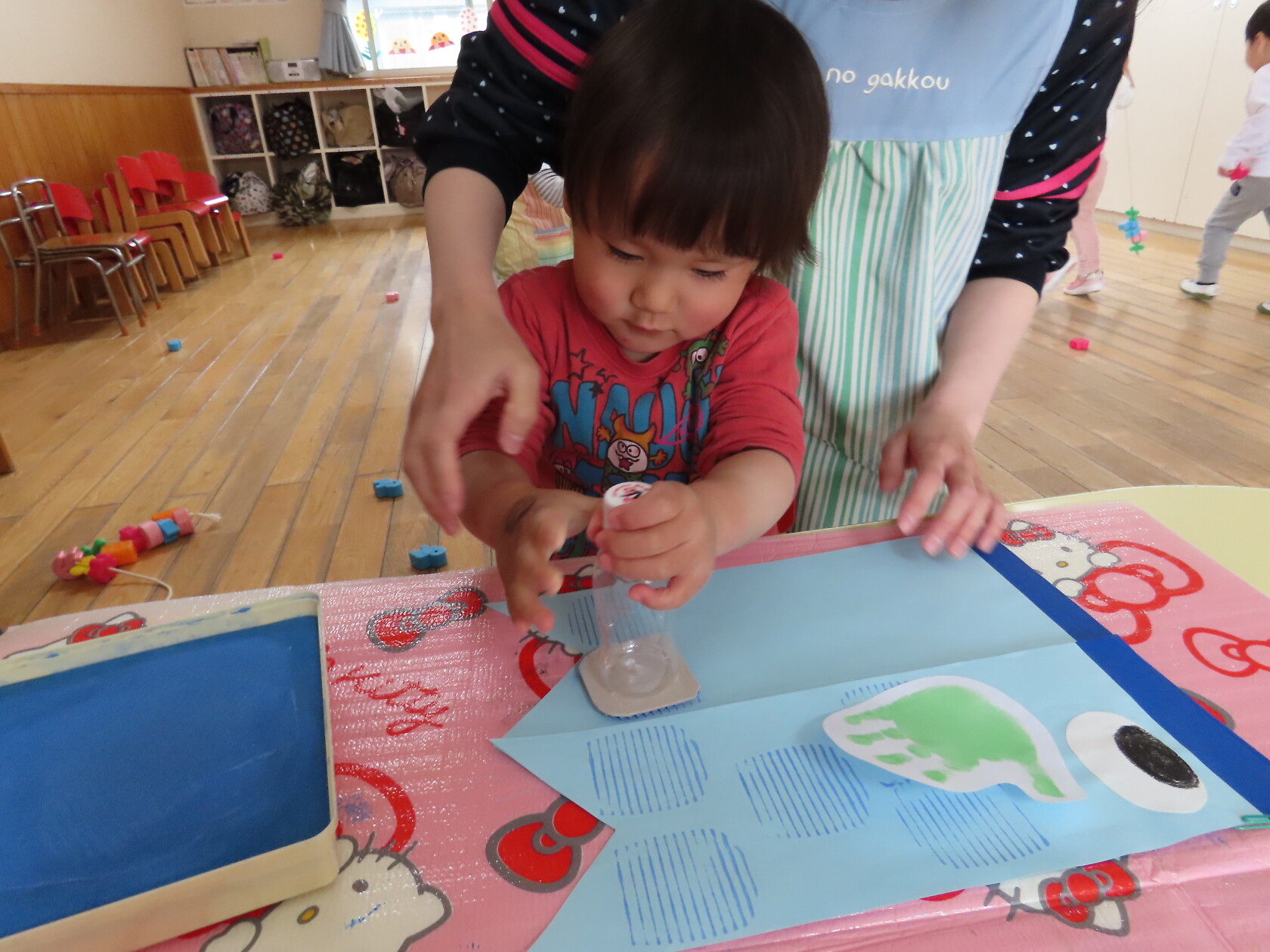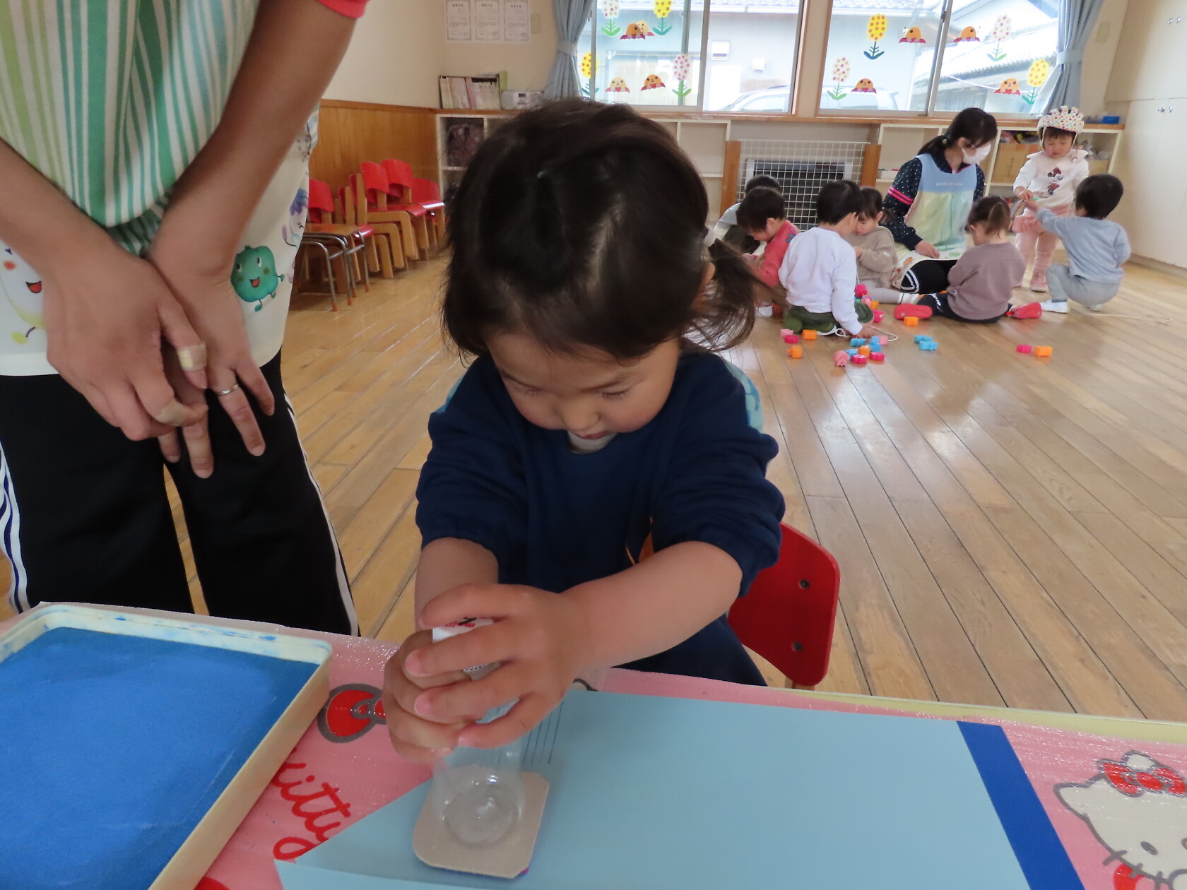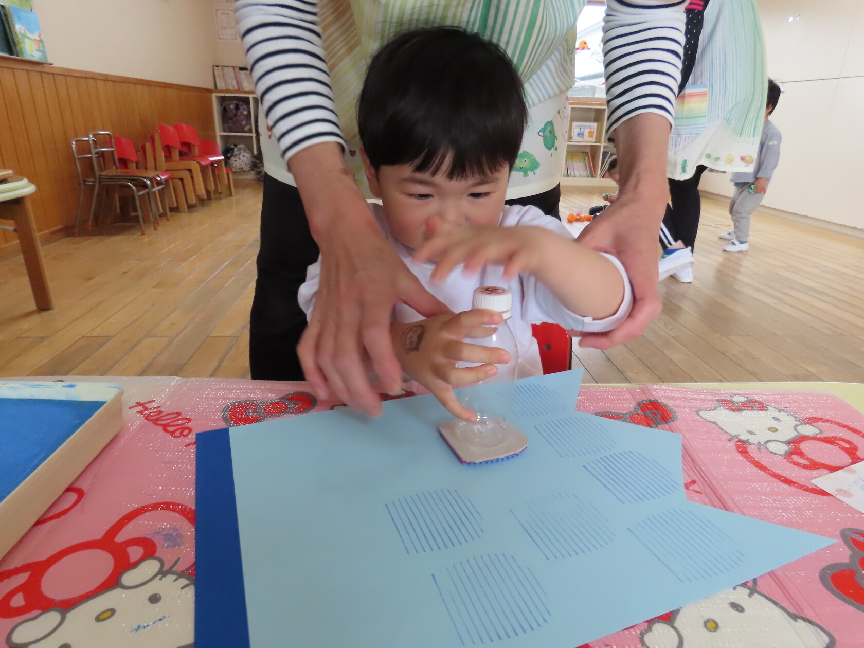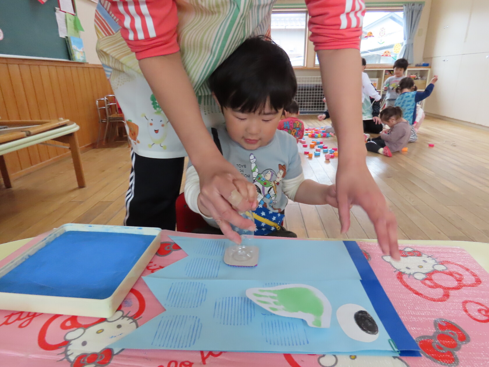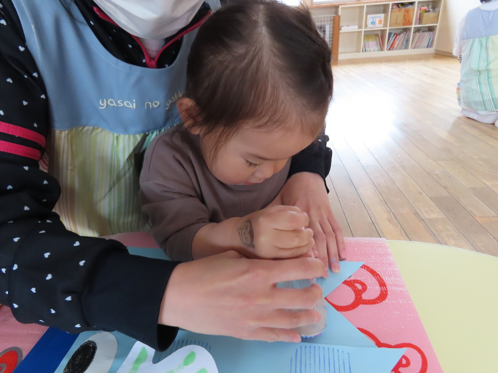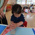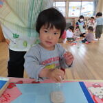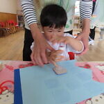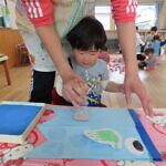 スタンプを押す時に「ギュー!ペッタン」と言いながら、真剣に押していました。