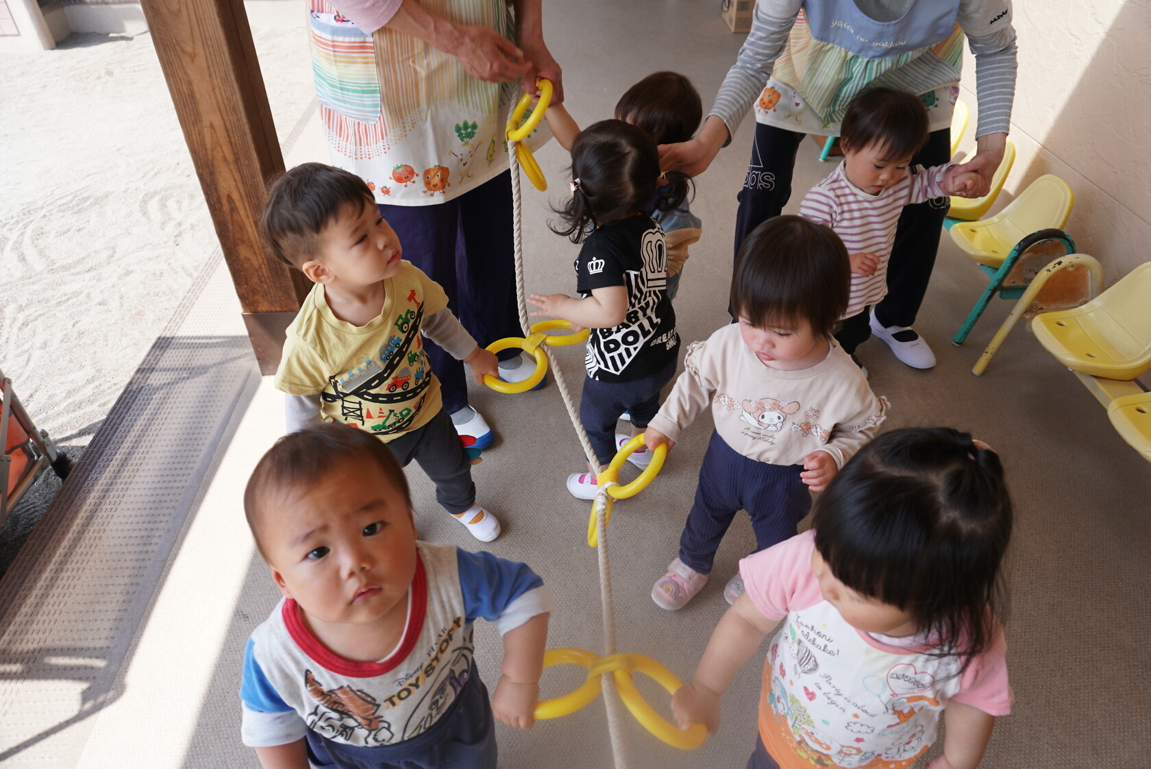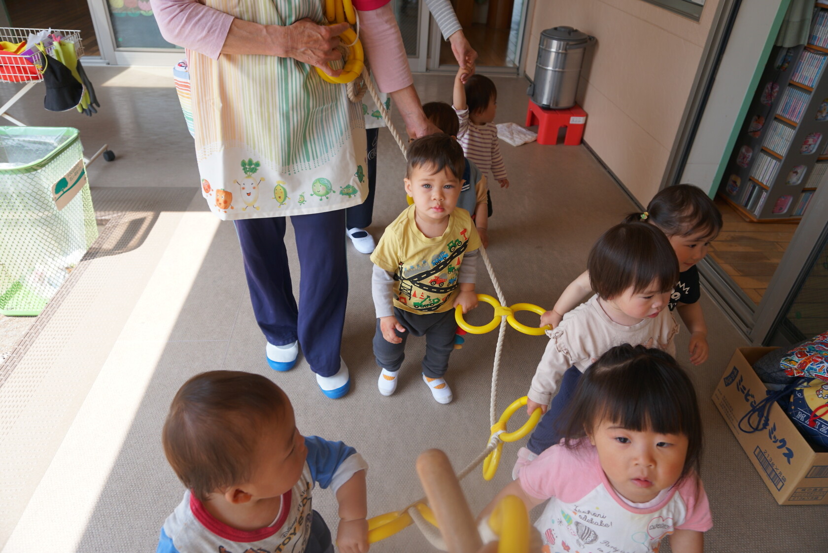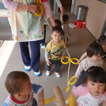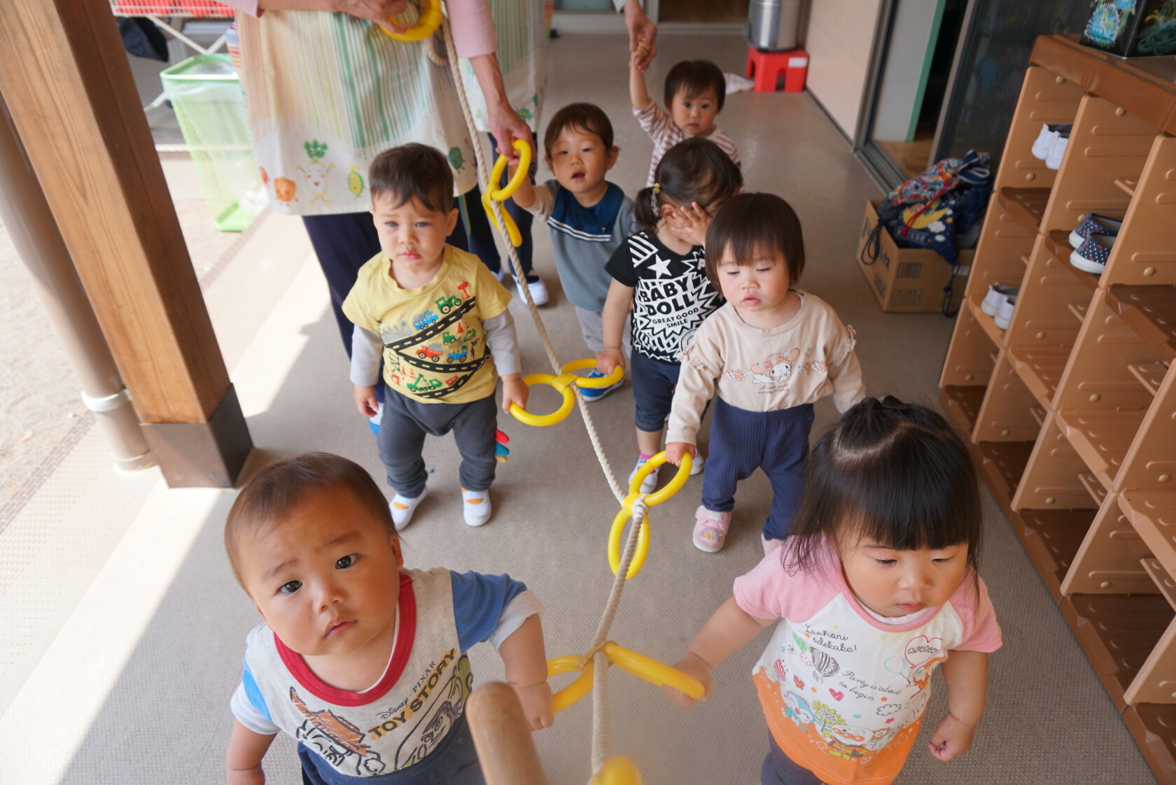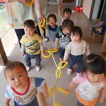 今日のできごと(さくら) 公開済み: 2023年4月20日更新: 2023年4月20日 今日は誘導ロープを使って、他のクラスまでお散歩に出掛けました💨💨 お兄ちゃん、お姉ちゃんがいる子が多いので、見つけると嬉しそうに手を振って声を掛けていました👋 その後は、みんなでボールや紐を引っ張るカタカタの人形などで、楽しく遊びました🎵