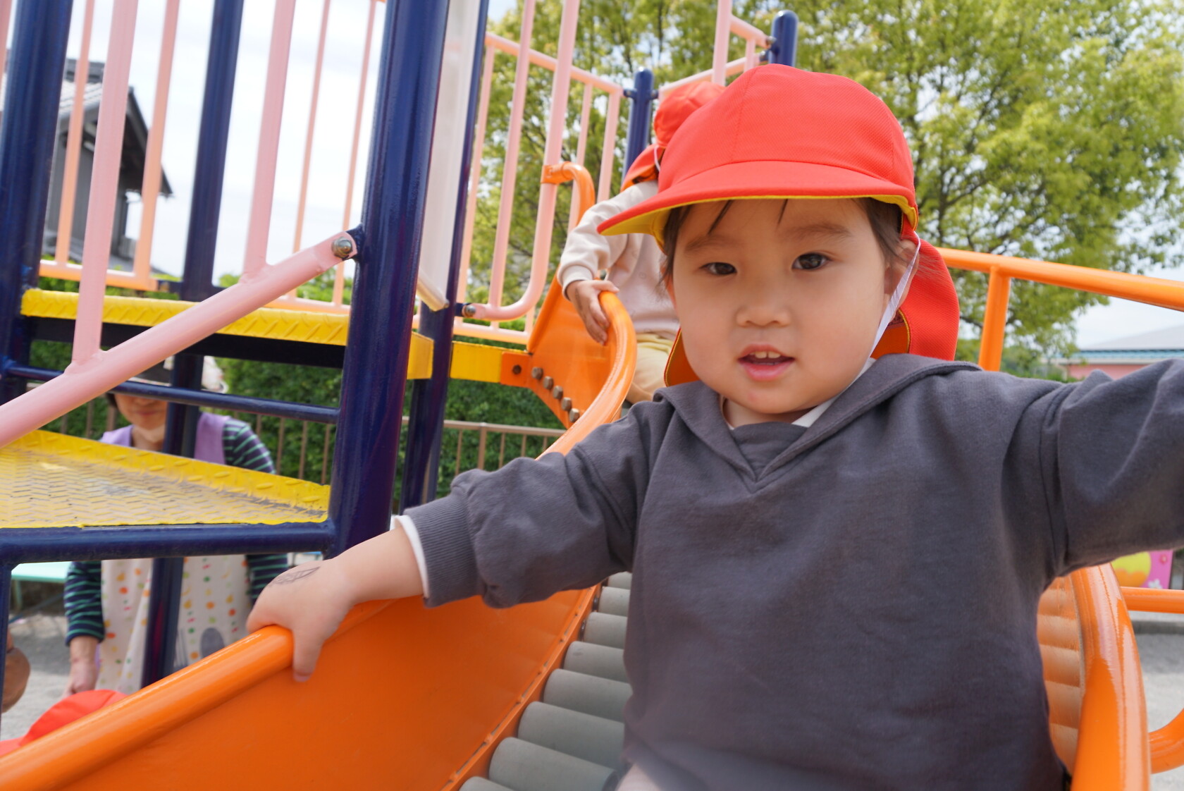 今日のできごと(ちゅうりっぷ) 公開済み: 2023年4月24日更新: 2023年4月24日 今日は、園庭で自由に遊ぶ前に、ローラーすべり台の使い方の約束をしました。 「階段でお友だちを押して良いかな?」など質問しながら、約束していきました👍 その後、実際にすべる時にはみんな約束を守って楽しくあそべました😆