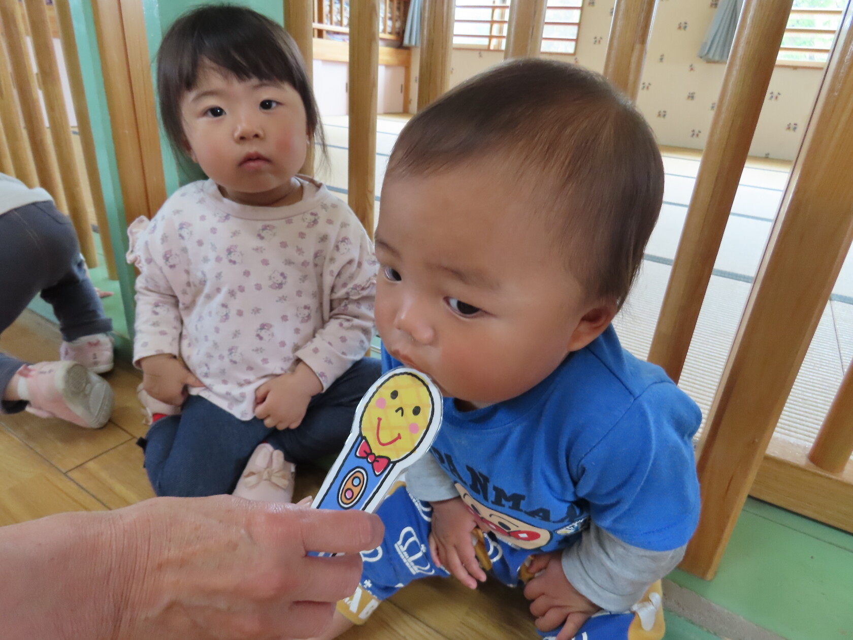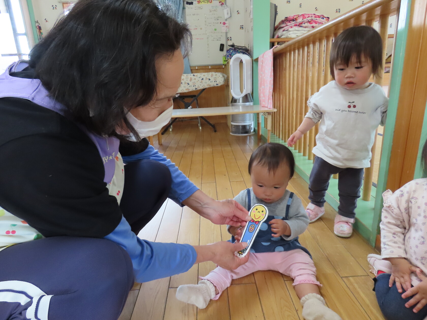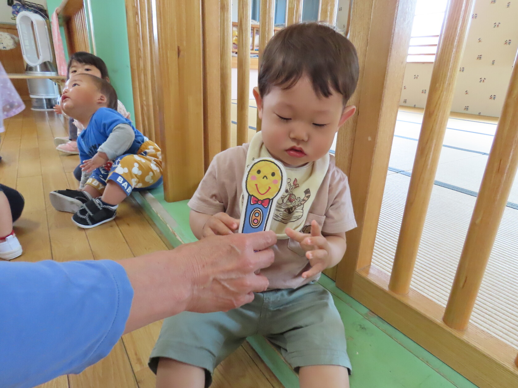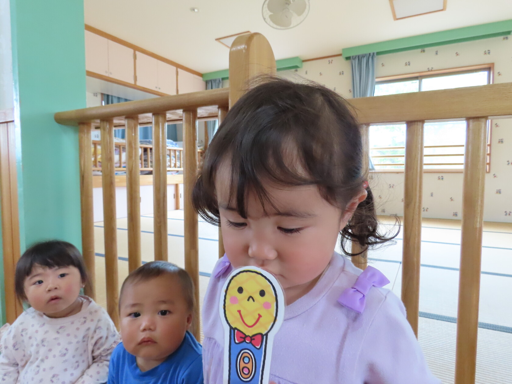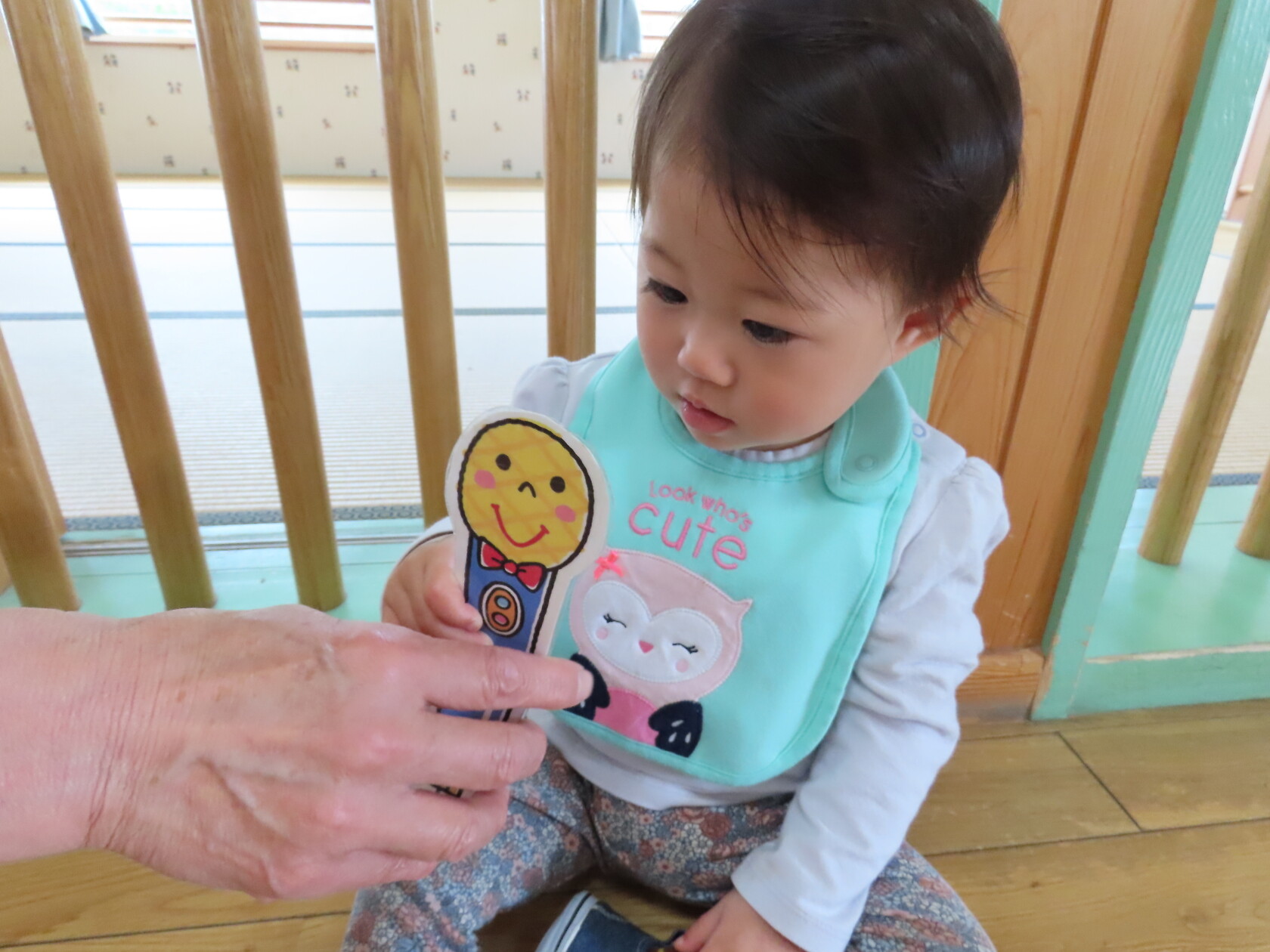 今日のできごと(さくら) 公開済み: 2023年5月1日更新: 2023年5月1日 「あ~なたのお名前は?あ~なたのお名前は?」と、歌って、紙マイクを近づけてお名前が言えるかな‼ の遊びをしました🎵 自分の名前を小さな声で言ったり、紙マイクをじ~っと見つめてしまったり、お口を開けて、ペロッとなめてしまったり、色んな表情を見ることができました😊