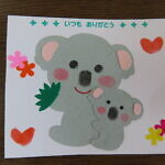 子ども達の小さな手の指スタンプで、可愛らしいコアラの親子を描きました❤