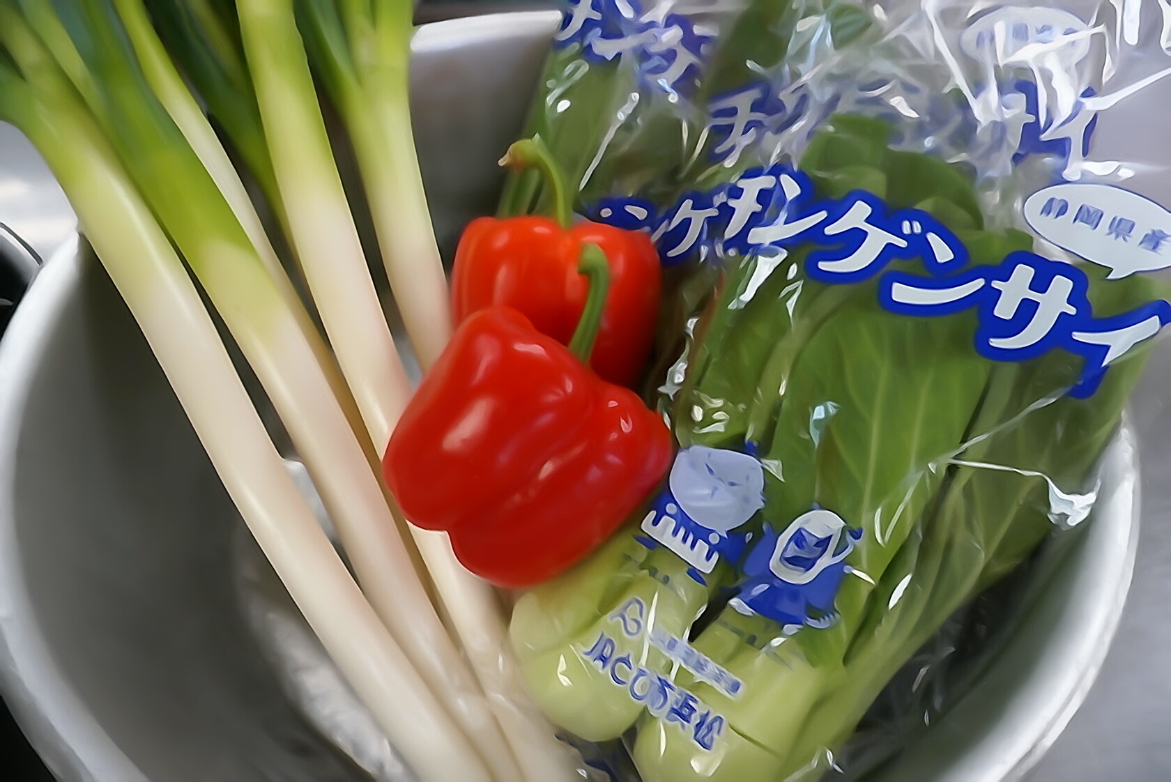 青梗菜やパプリカにはたくさんのビタミンがはいっています!