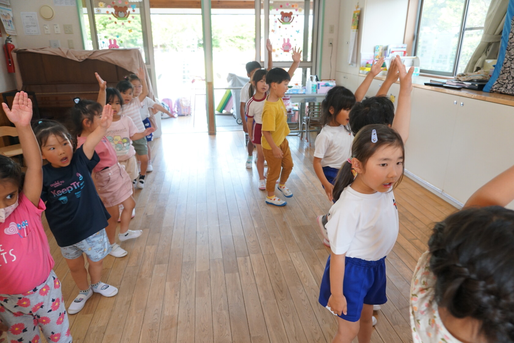 今週の出来事(ひまわり) 公開済み: 2023年5月19日更新: 2023年5月19日 鼓笛に向けて練習が少しずつはじまっています。 手首を使いタマゴマラカスの練習をしたり、右手、左手、右足、左足を意識しながらウォーミングアップの練習をしています。 「お箸を持つ方が右手だよね?」とお友達と確認しながら頑張って右左を覚えています。お家でもご協力頂けたらと思います。 いよいよ北條まつりが近づいてきました。今日は練習をしました。みんな楽しみにしています!!