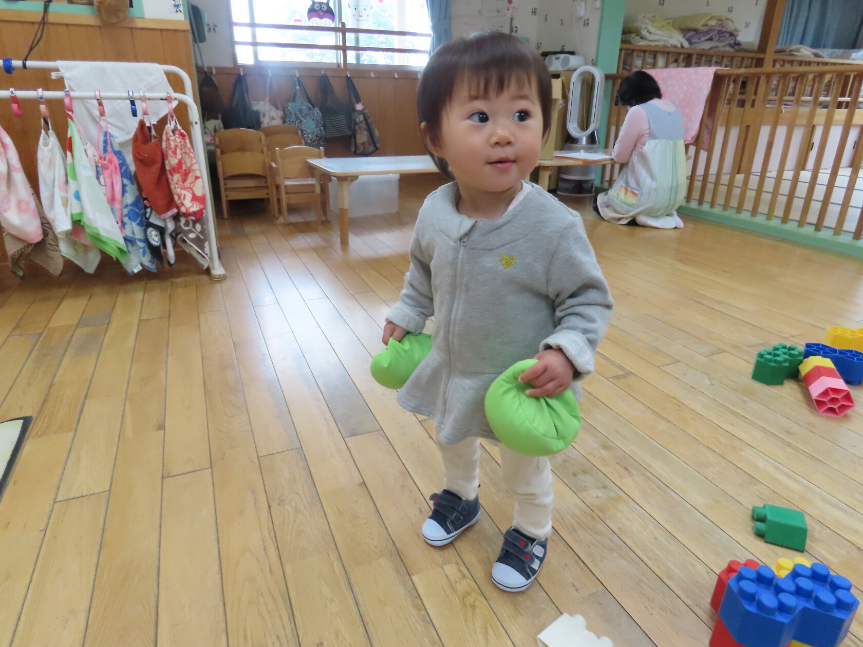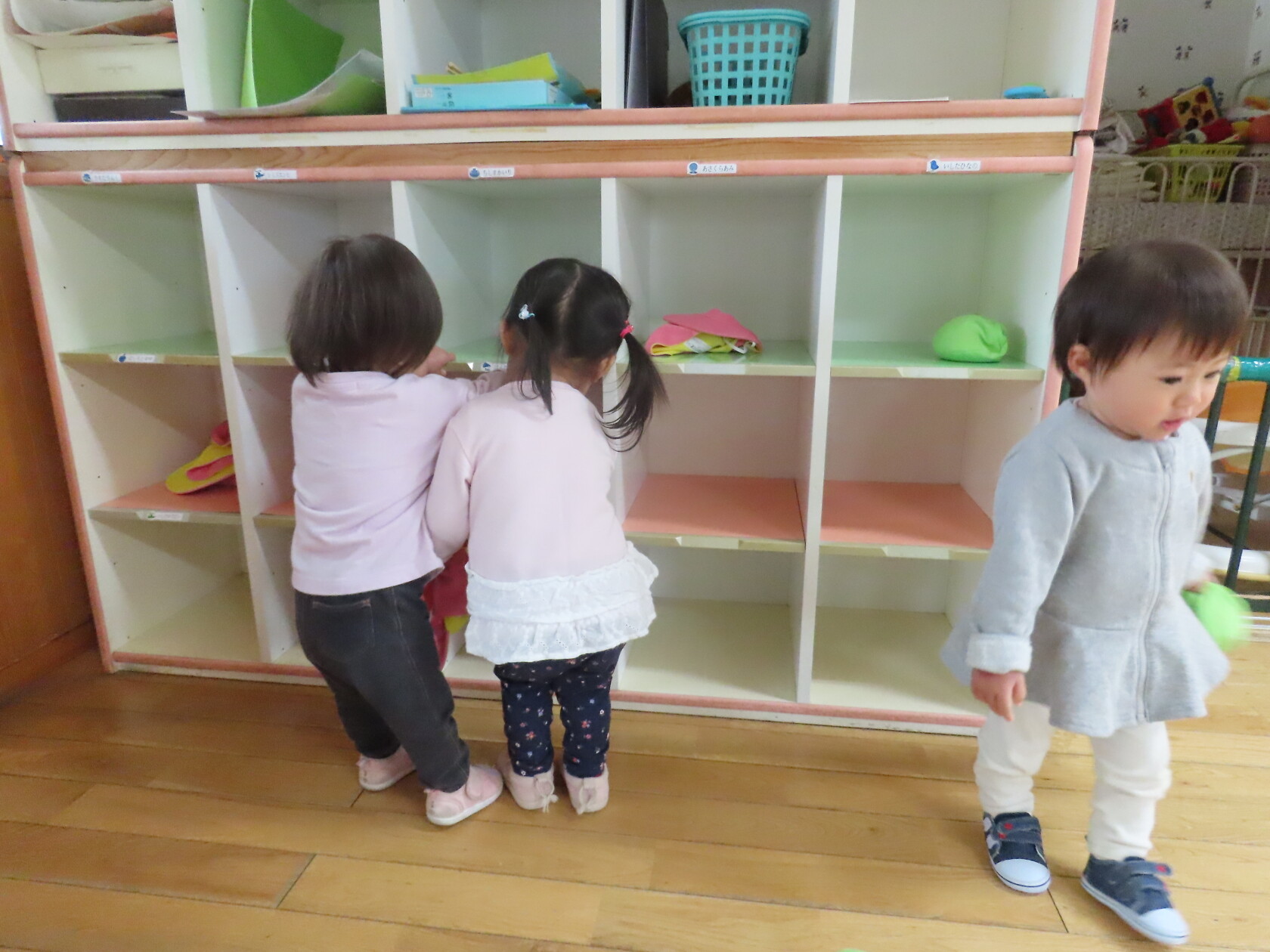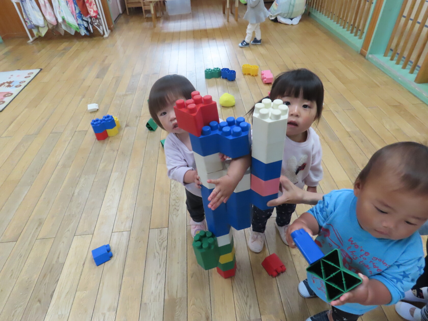 今日はお部屋での様子をパシャリッ📸広いお部屋で水道やロッカーへ行く子、まだおもちゃの貸し借り難しいですが、友達と一緒に遊ぶ子も出てきました!!又、お友達の名前を少しずつ覚えて呼んでみたりする子もいます。