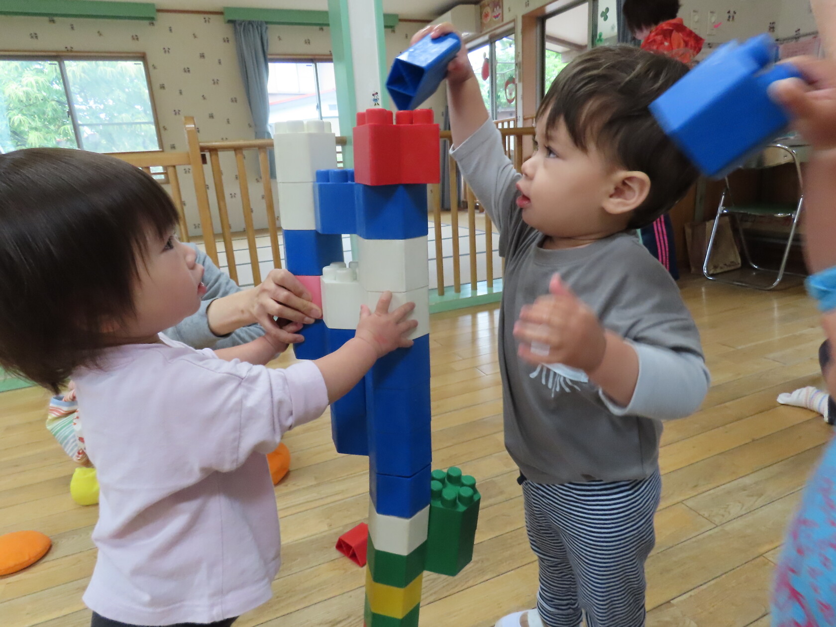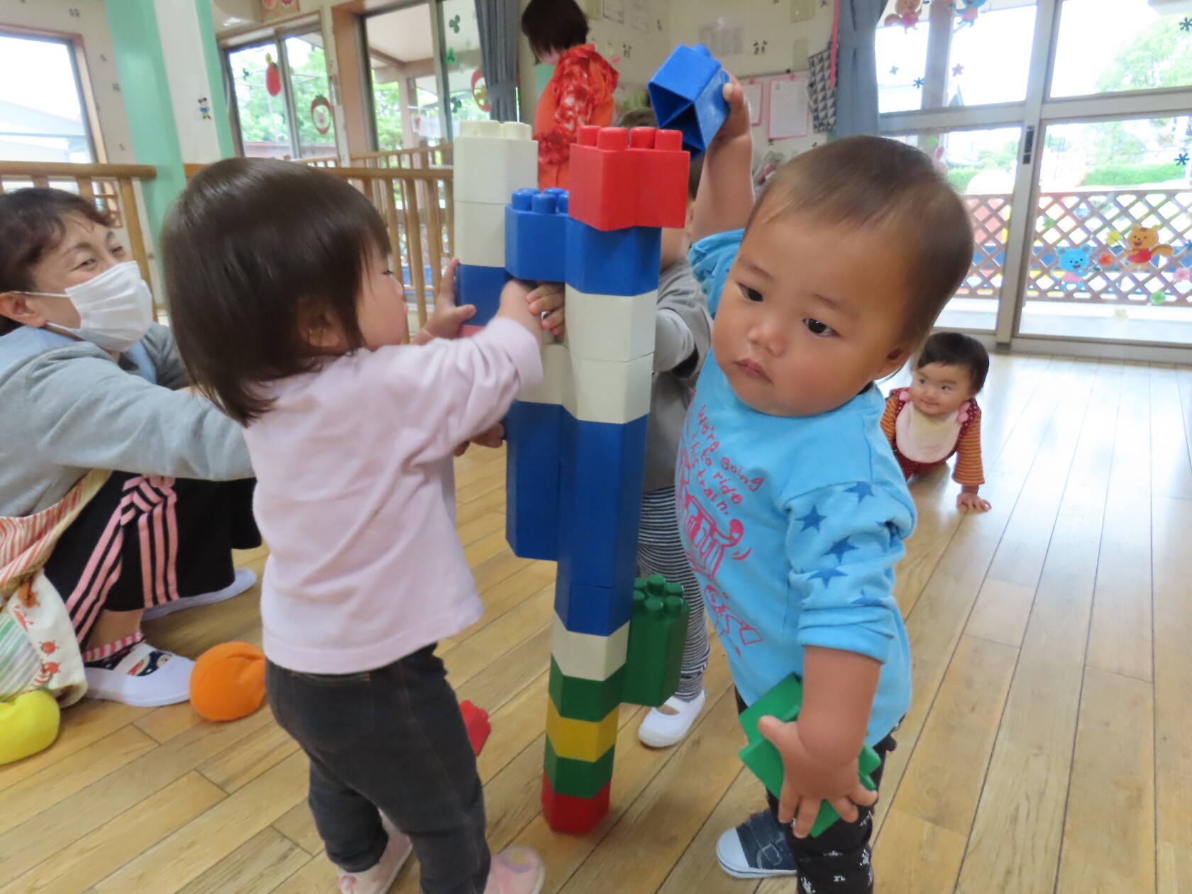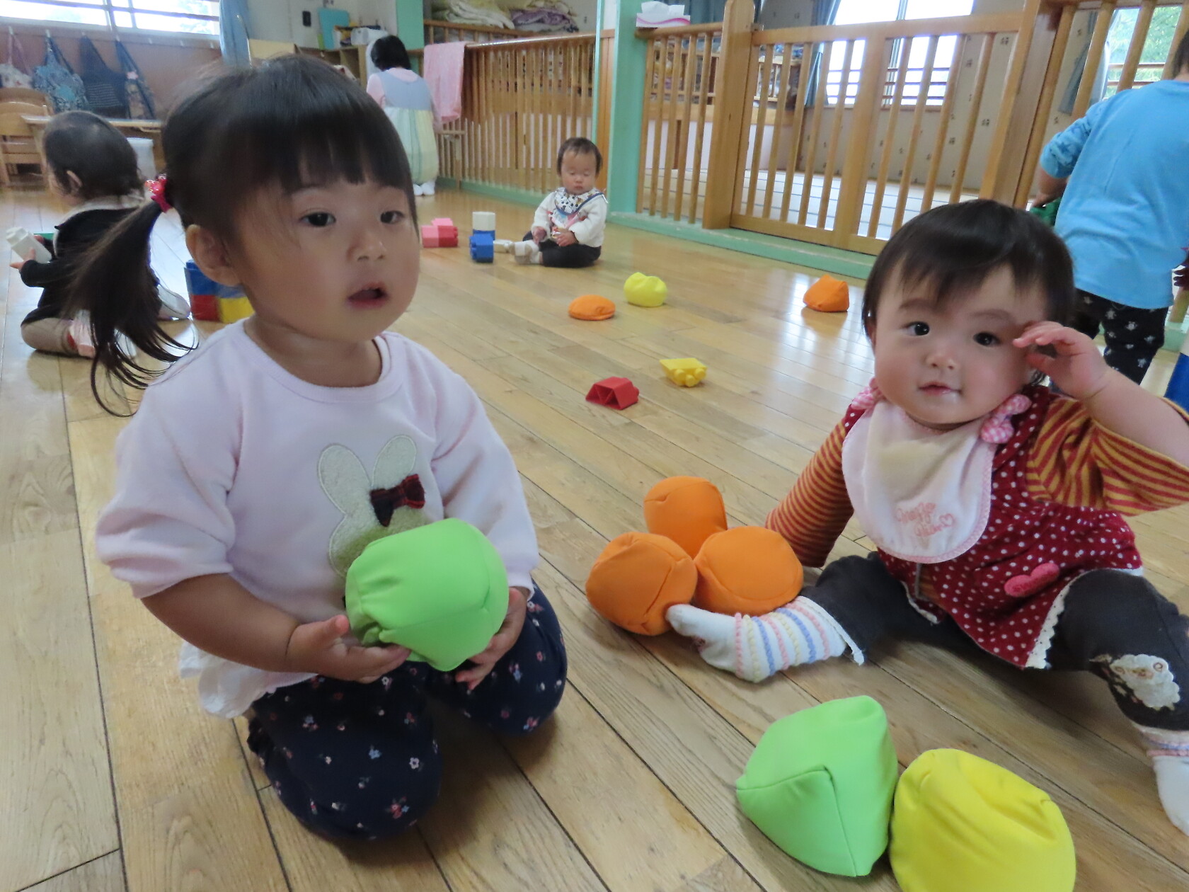 今日はお部屋での様子をパシャリッ📸広いお部屋で水道やロッカーへ行く子、まだおもちゃの貸し借り難しいですが、友達と一緒に遊ぶ子も出てきました!!又、お友達の名前を少しずつ覚えて呼んでみたりする子もいます。