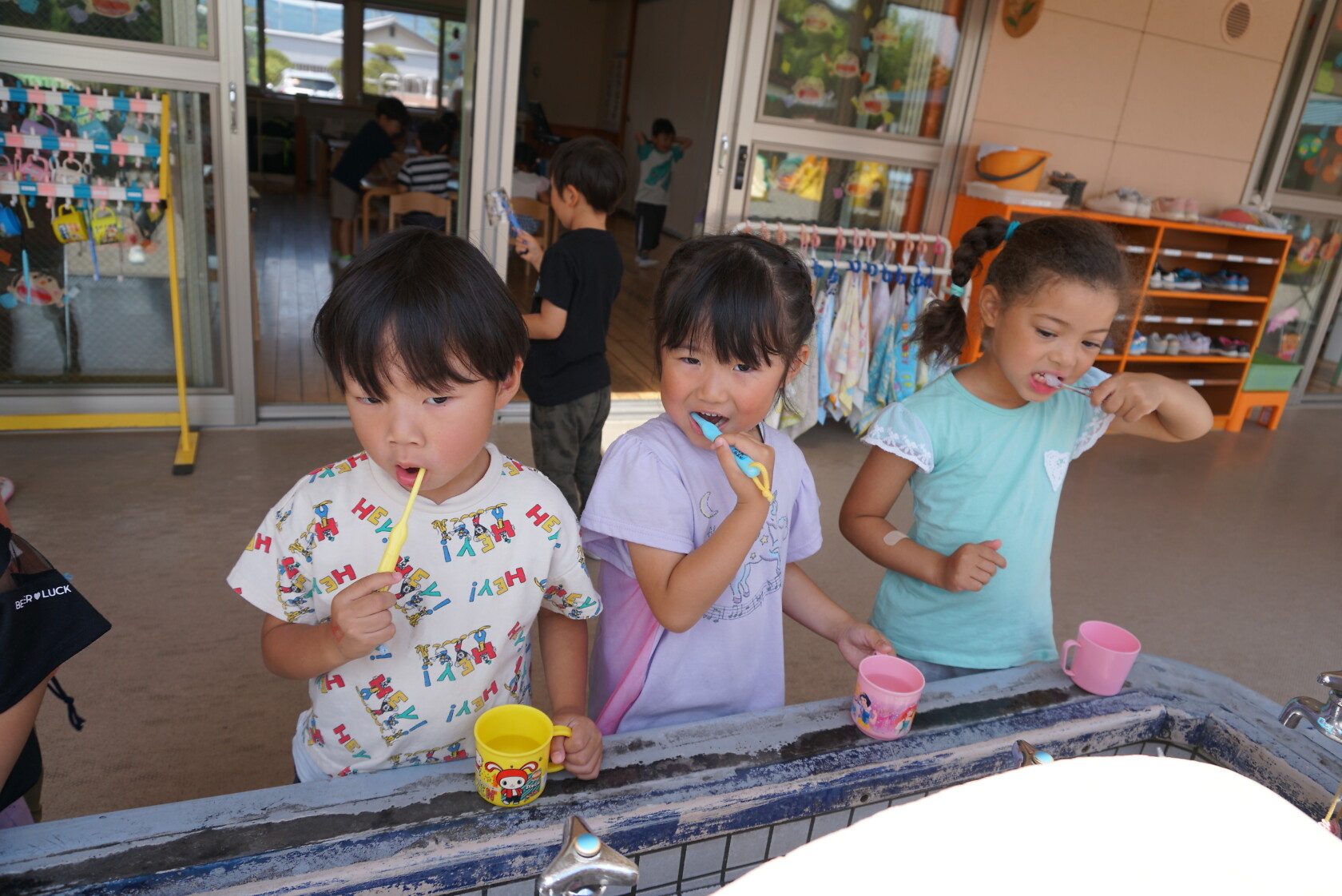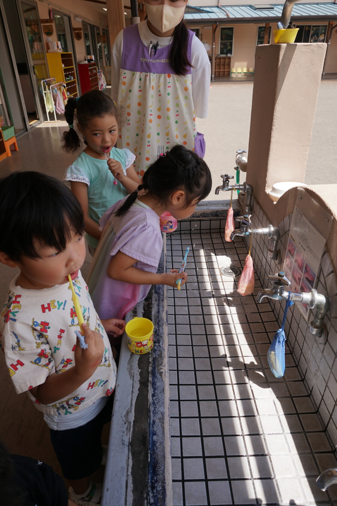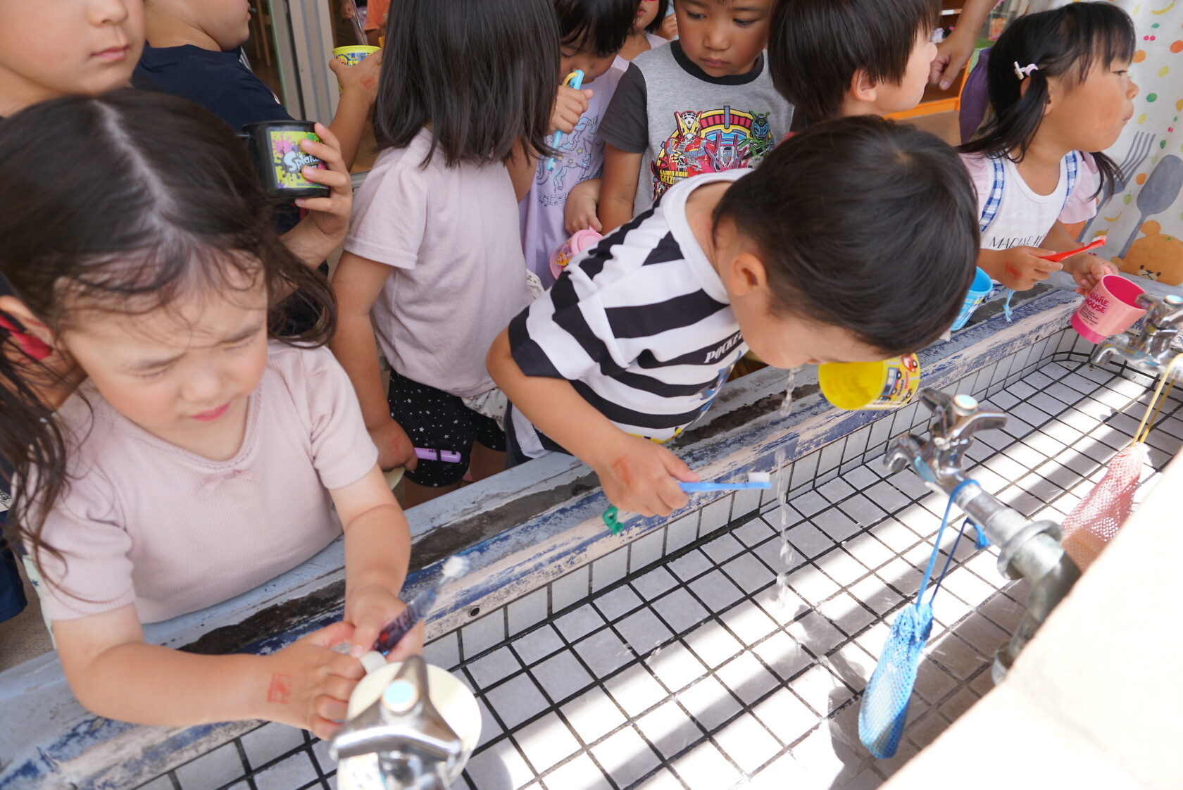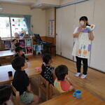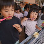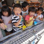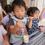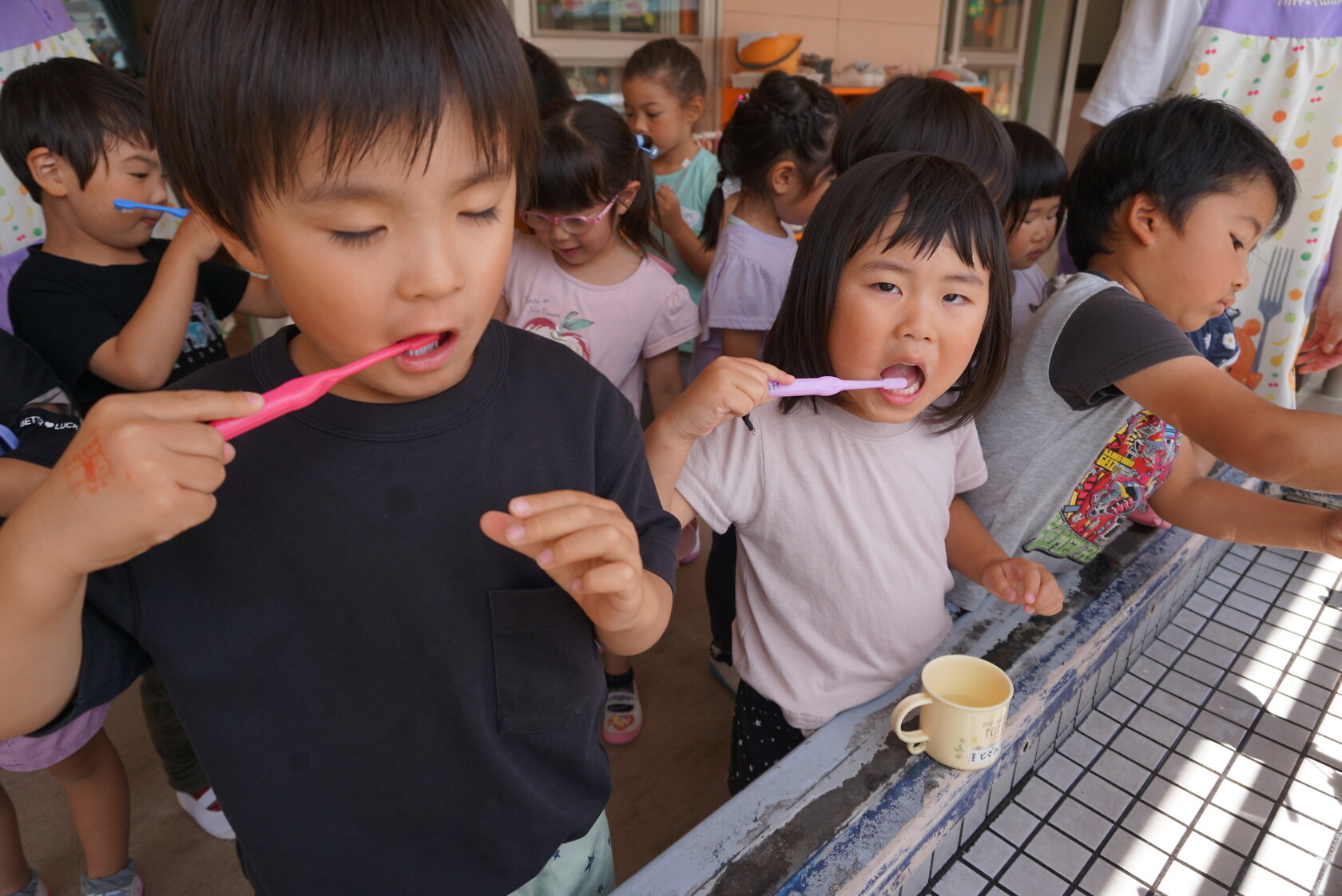 今日のできごと(ひまわり・ゆり) 公開済み: 2023年6月5日更新: 2023年6月5日 今日から食後の歯磨きが始まりました😁 歯ブラシの持ち方や磨き方など、歯のパッペットを使って教えてもらいました😀 みんな真剣に話を聞き、お気に入りのコップと歯ブラシを持って嬉しそうに取り組めました😆 ひまわりぐみさんは、今までの歯磨きをもう一度見直す機会になりましたね😊 しっかりと歯磨きをして、虫歯ゼロを目指しましょう✨