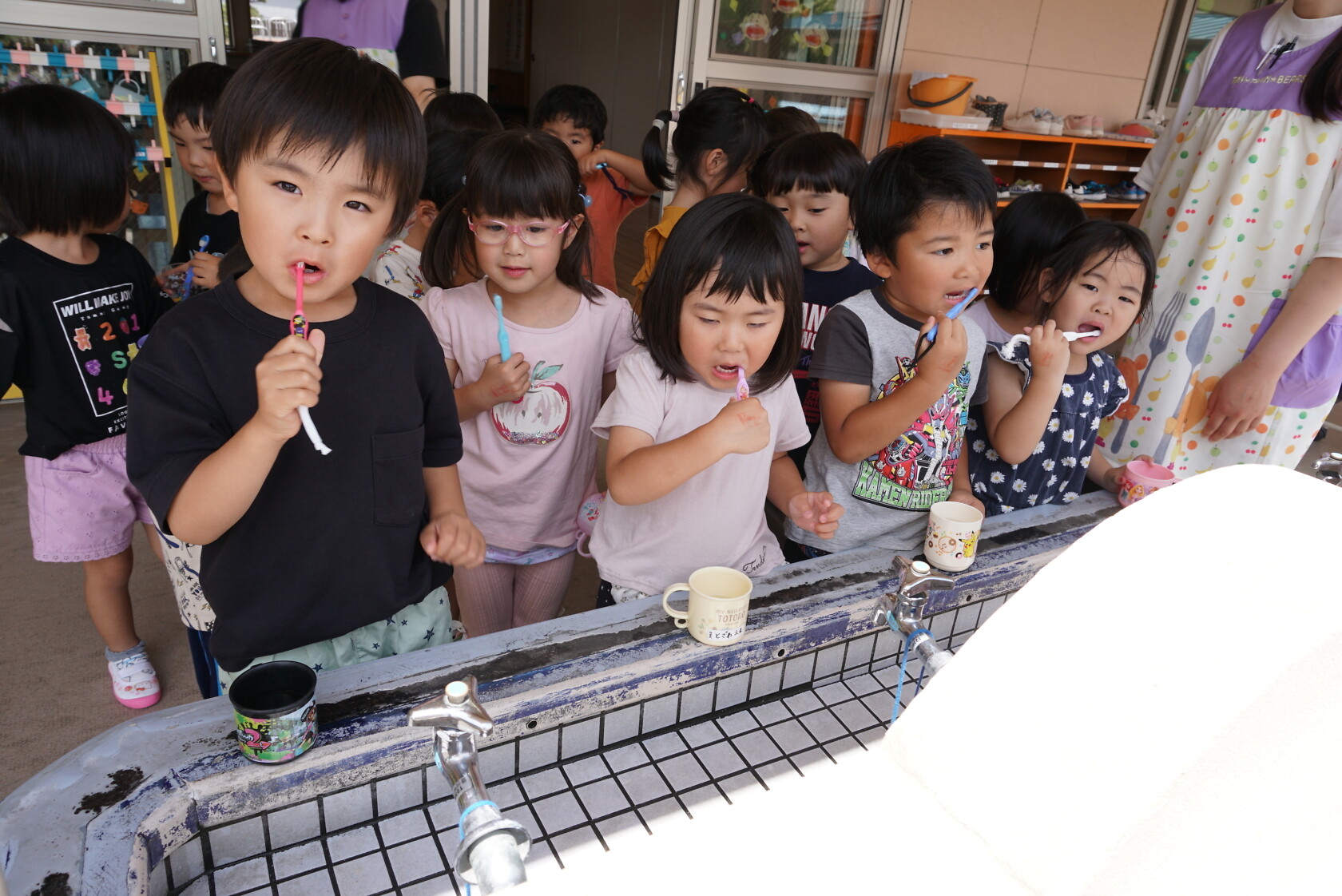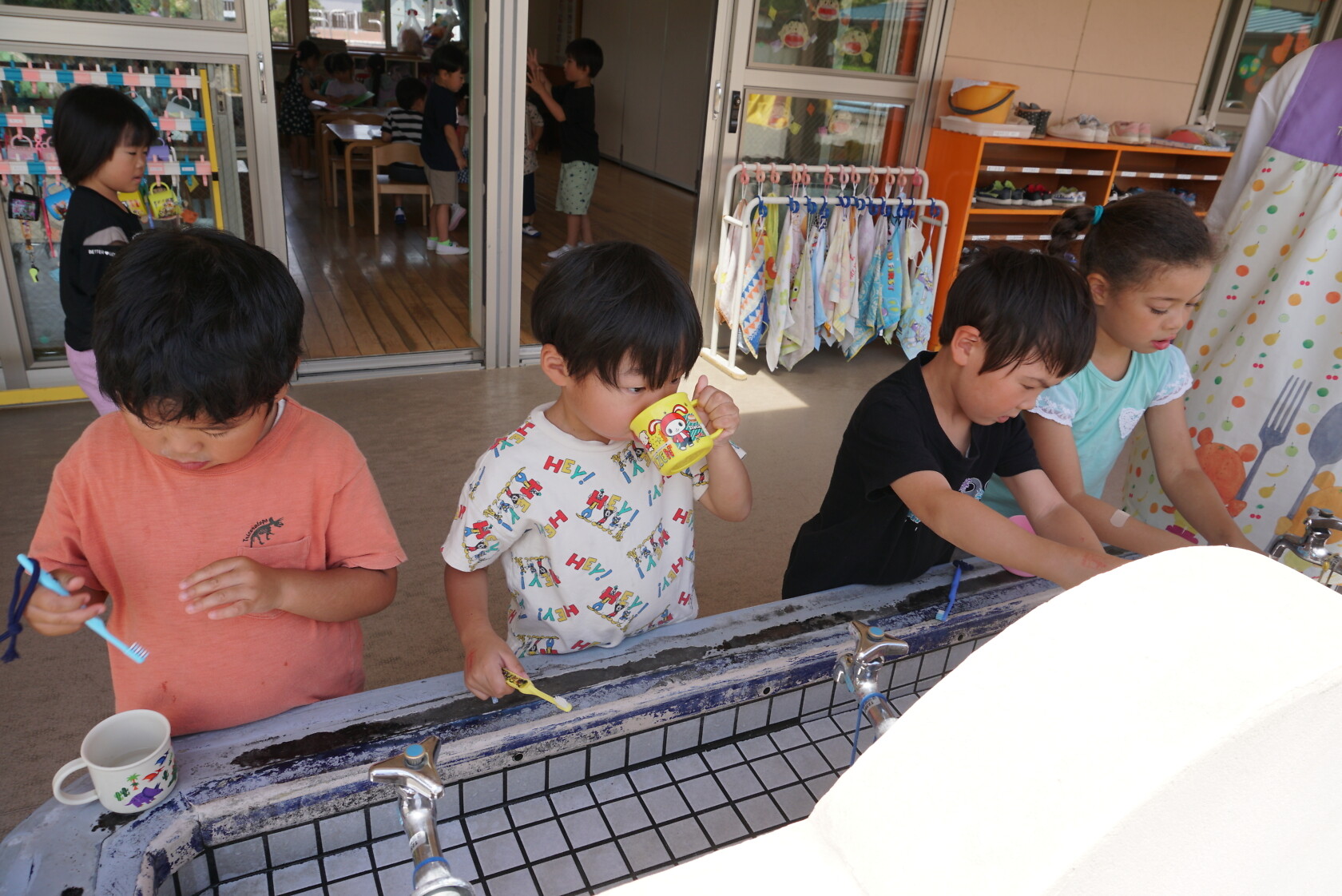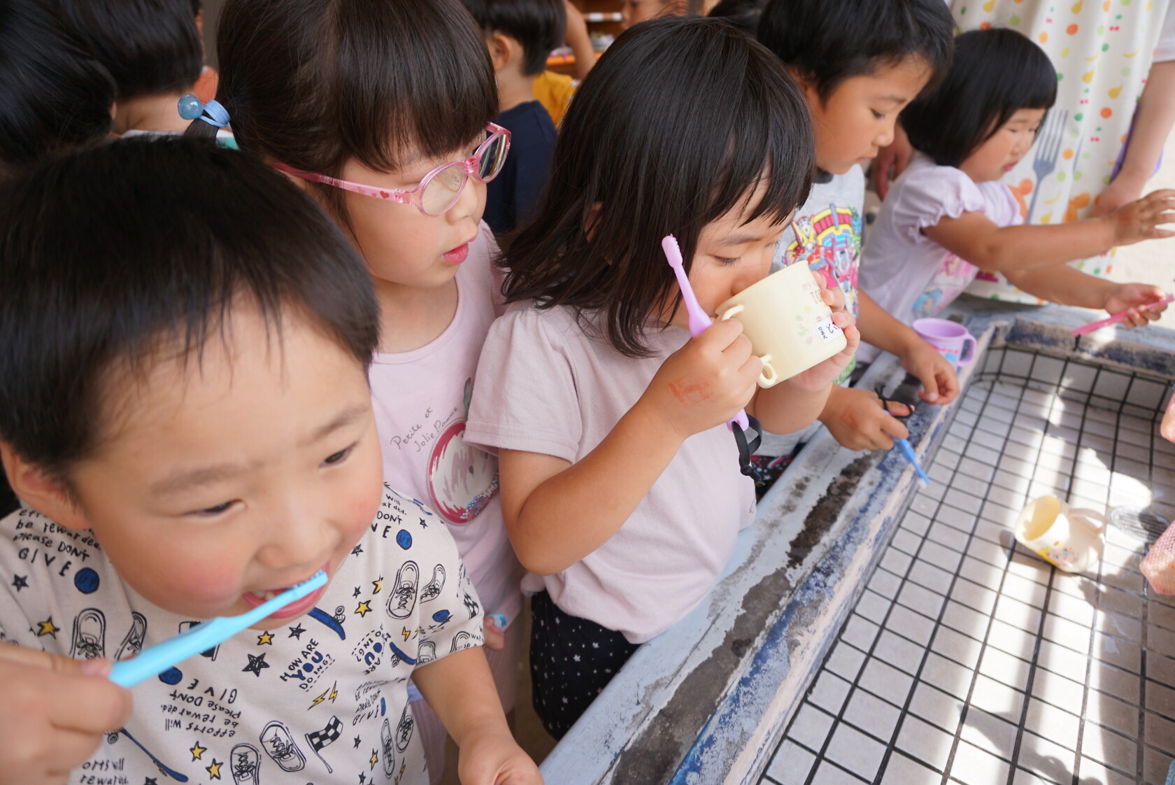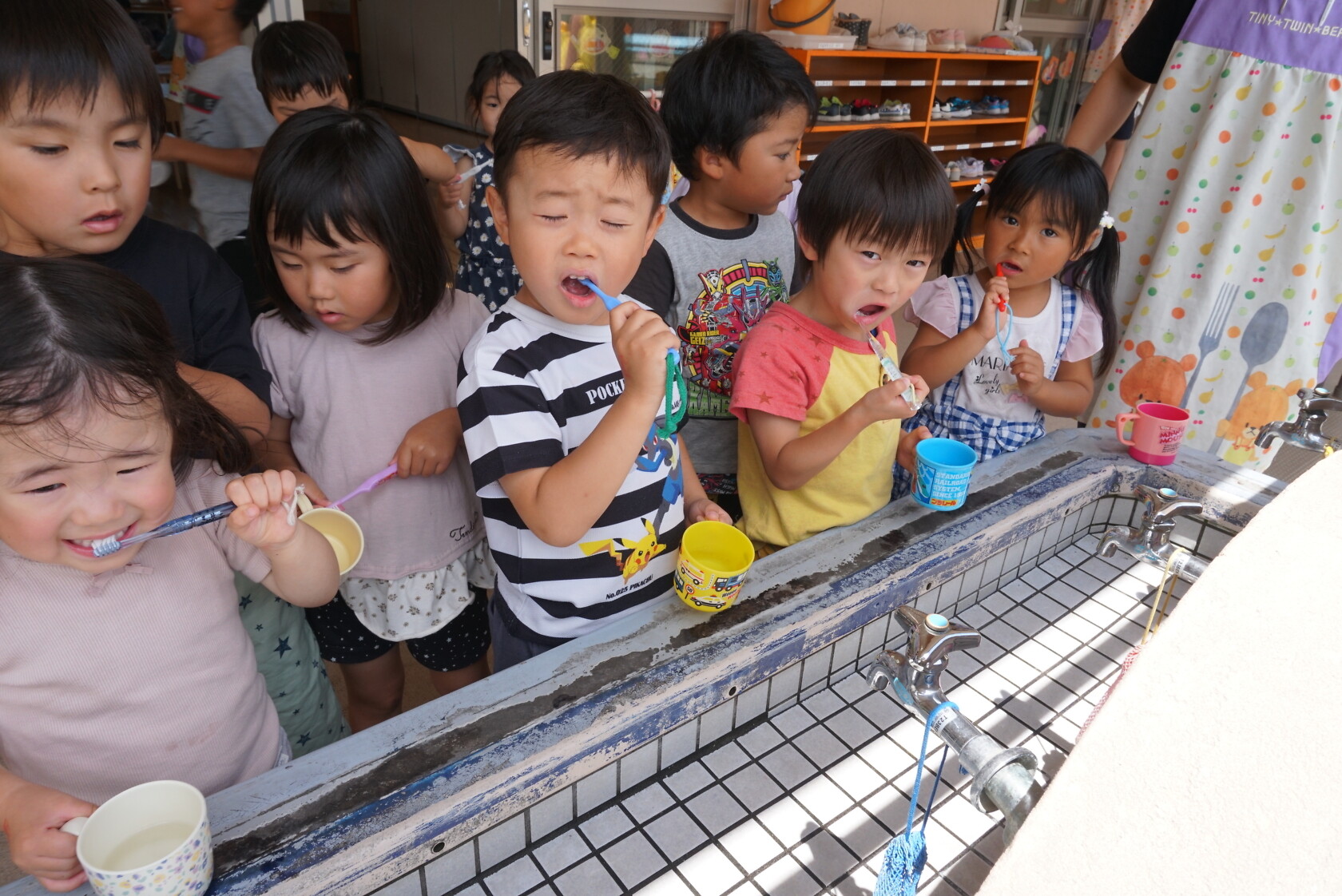 今日のできごと(ひまわり・ゆり) 公開済み: 2023年6月5日更新: 2023年6月5日 今日から食後の歯磨きが始まりました😁 歯ブラシの持ち方や磨き方など、歯のパッペットを使って教えてもらいました😀 みんな真剣に話を聞き、お気に入りのコップと歯ブラシを持って嬉しそうに取り組めました😆 ひまわりぐみさんは、今までの歯磨きをもう一度見直す機会になりましたね😊 しっかりと歯磨きをして、虫歯ゼロを目指しましょう✨