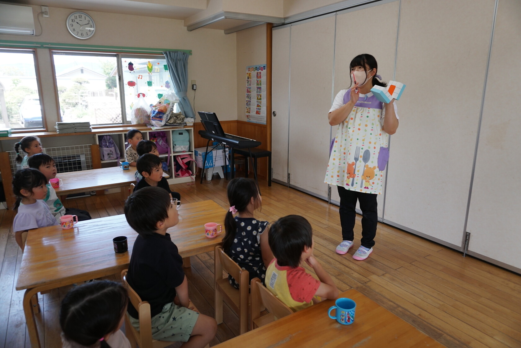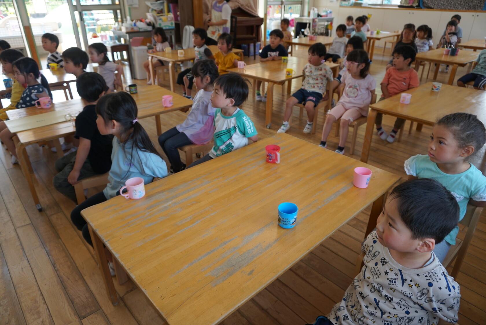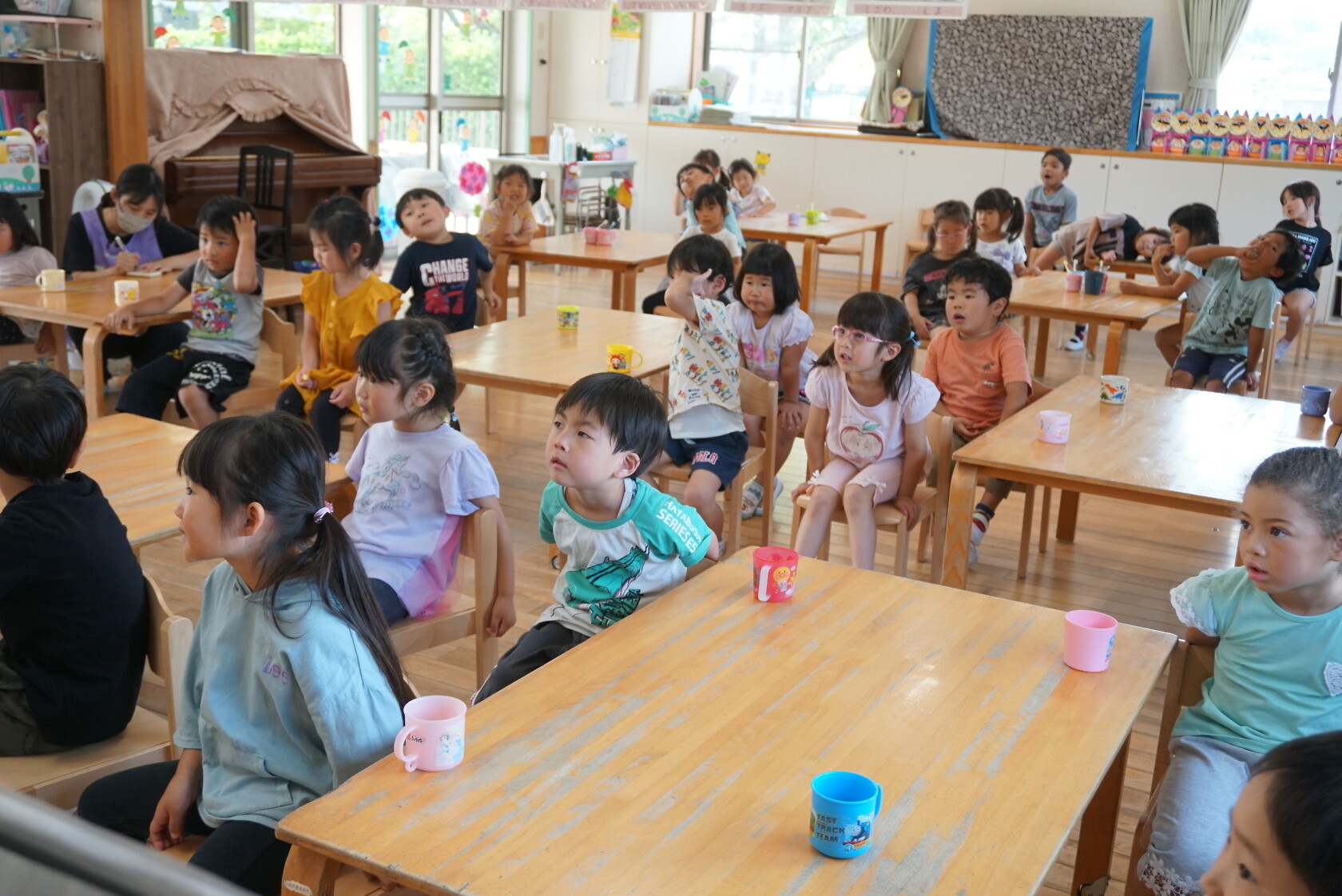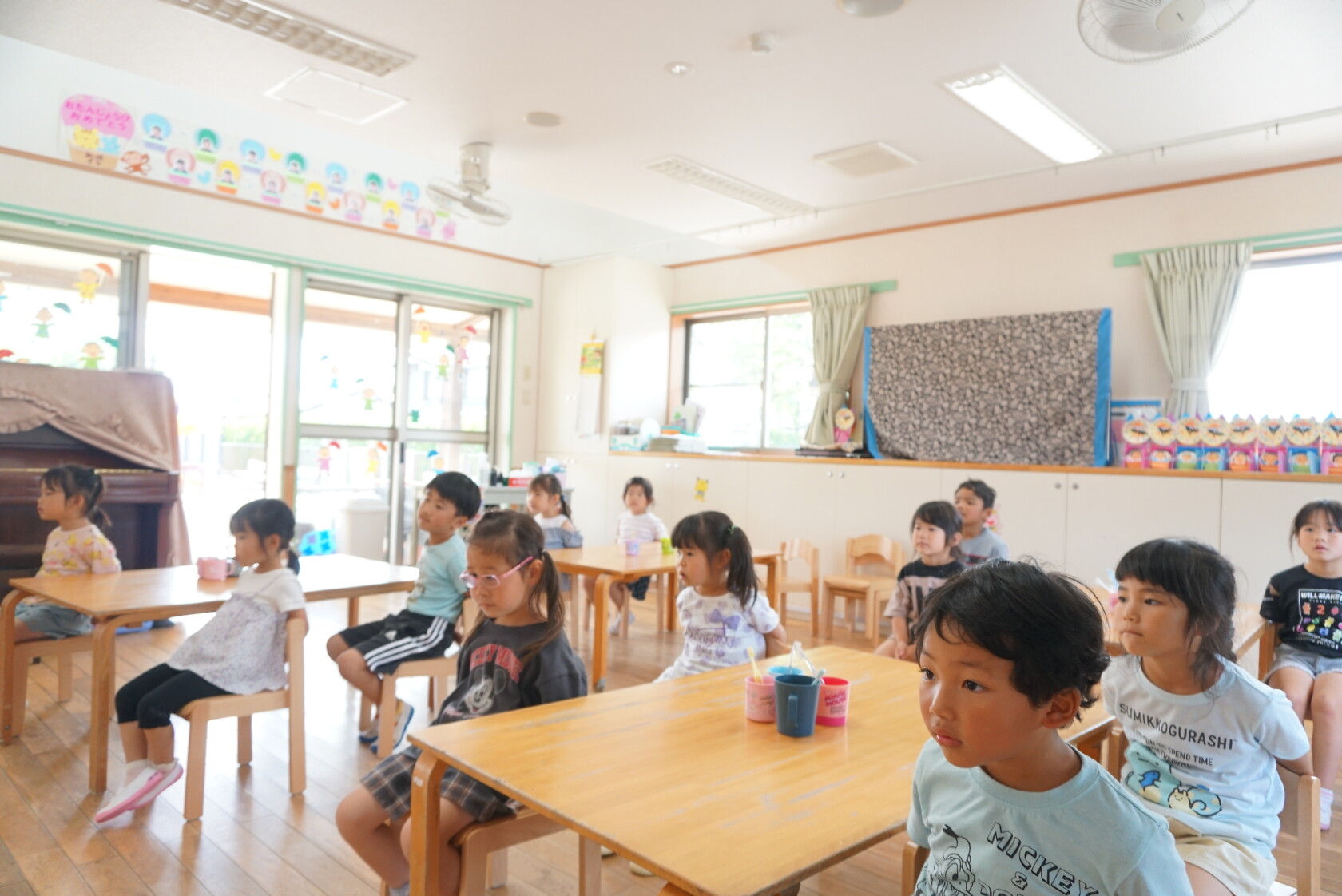 今日のできごと(ひまわり・ゆり) 公開済み: 2023年6月5日更新: 2023年6月5日 今日から食後の歯磨きが始まりました😁 歯ブラシの持ち方や磨き方など、歯のパッペットを使って教えてもらいました😀 みんな真剣に話を聞き、お気に入りのコップと歯ブラシを持って嬉しそうに取り組めました😆 ひまわりぐみさんは、今までの歯磨きをもう一度見直す機会になりましたね😊 しっかりと歯磨きをして、虫歯ゼロを目指しましょう✨