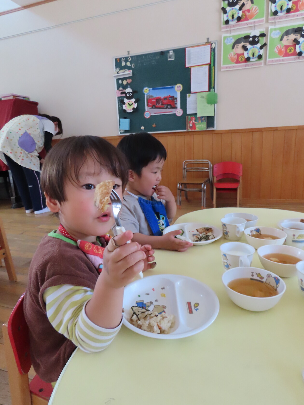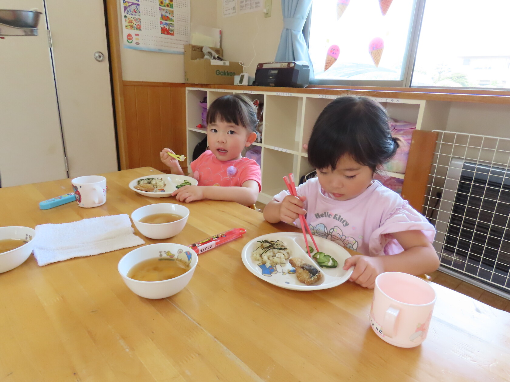今日のできごと(給食) 公開済み: 2023年6月5日更新: 2023年6月5日 今日は暑くなりましたね🌞 暑さに負けない身体をつくるためにはよく食べ、動いてよく寝ることが大切です!! 保育園の給食は夏に向けたメニューもたくさんはいっています!! 今日はさばの竜田揚げや五目ご飯でした😁 保育園だけでなくお家でもたくさん食べてね!!