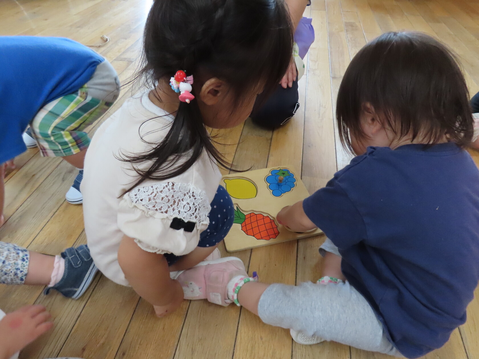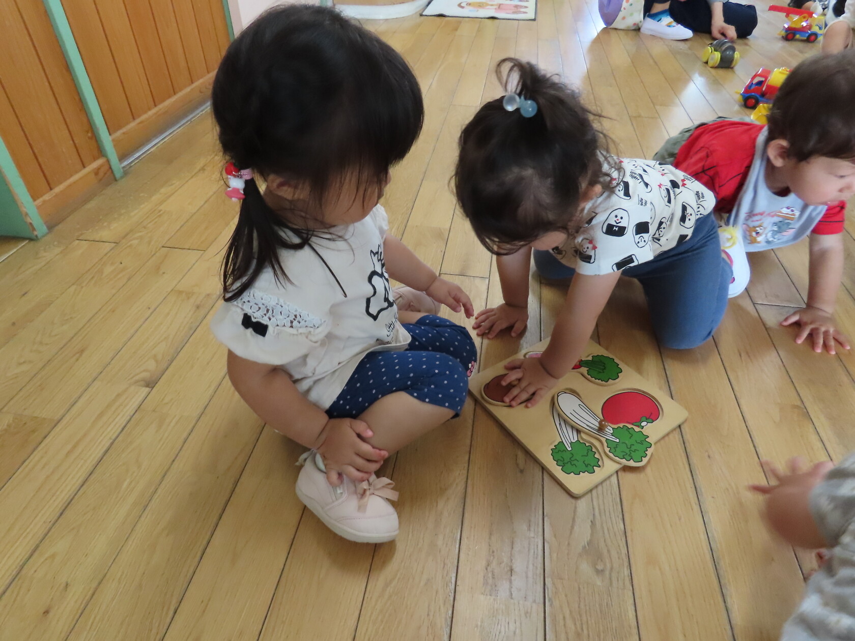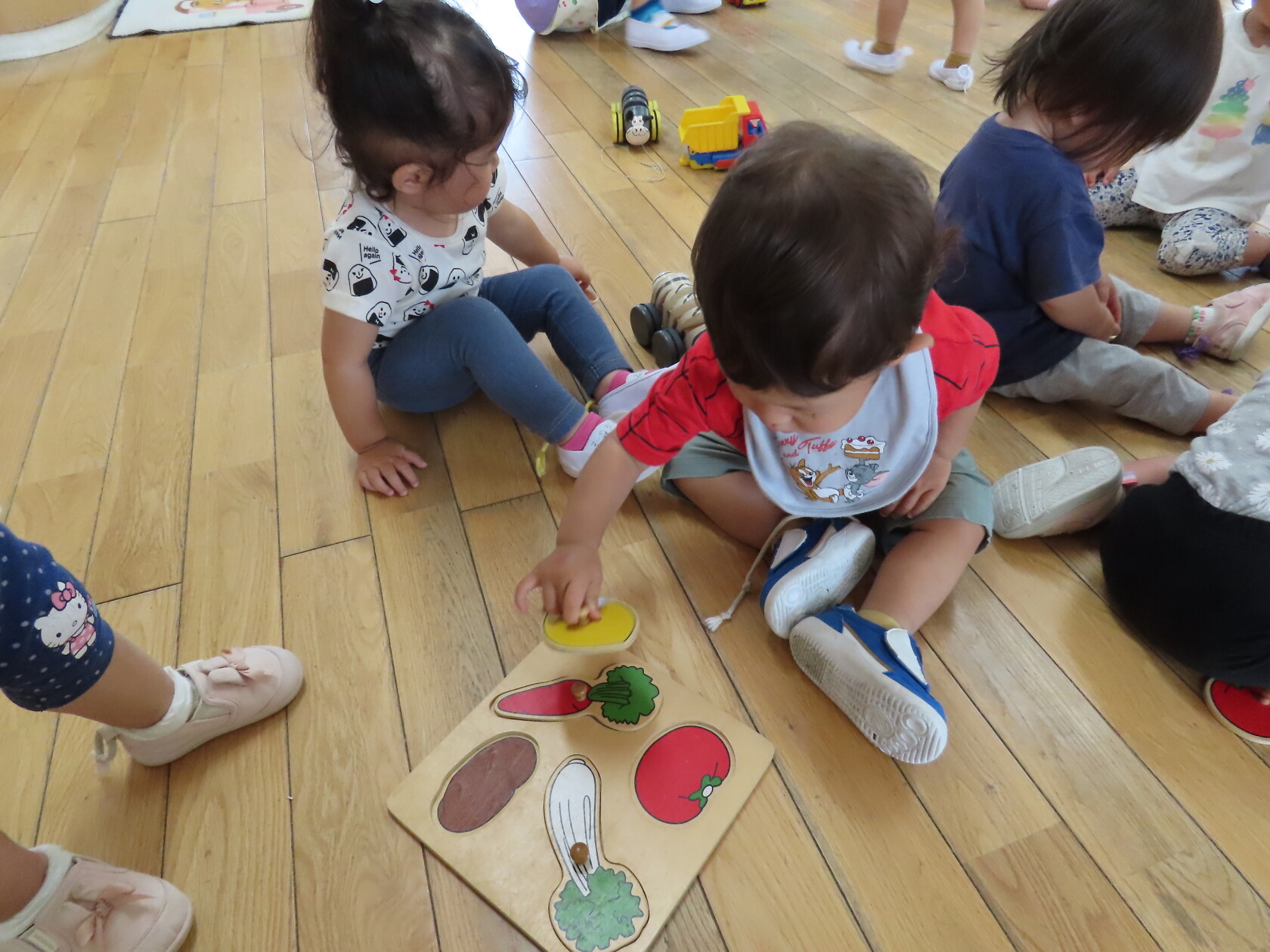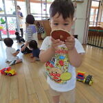 今日のできごと(さくら) 公開済み: 2023年6月19日更新: 2023年6月19日 今日は、お部屋で自動車や型はめなどをして遊びました 初めての型はめでは、同じ色・形を見ながら選ぶのですが、うまくはめる事が出来ず、苦戦していました でも、手をとり、一緒に遊んで楽しむことができました 時々、取り合ったりもありますが、小さいながらに譲ったりすることもあります そんなかわいい、さくら組さんです