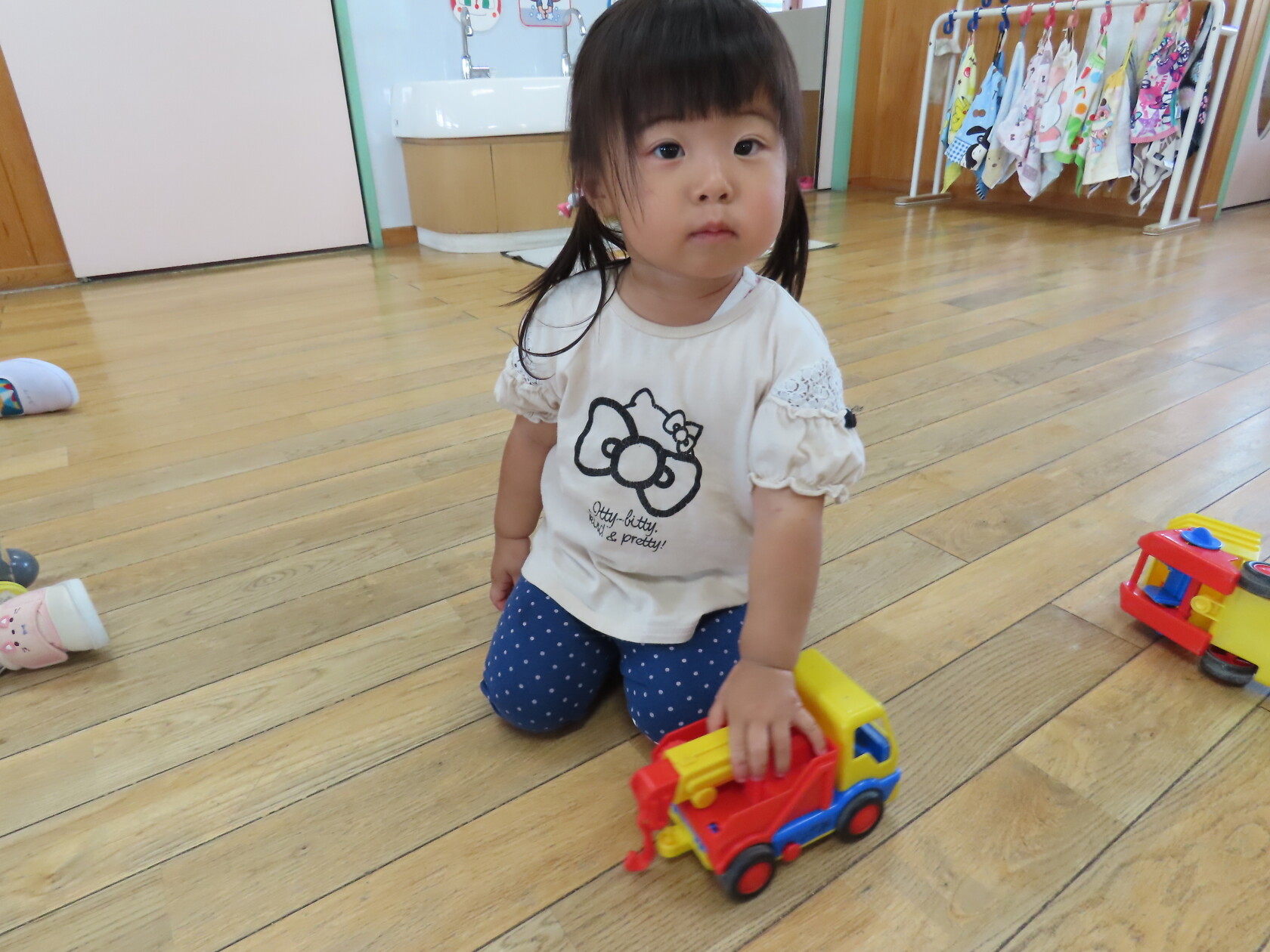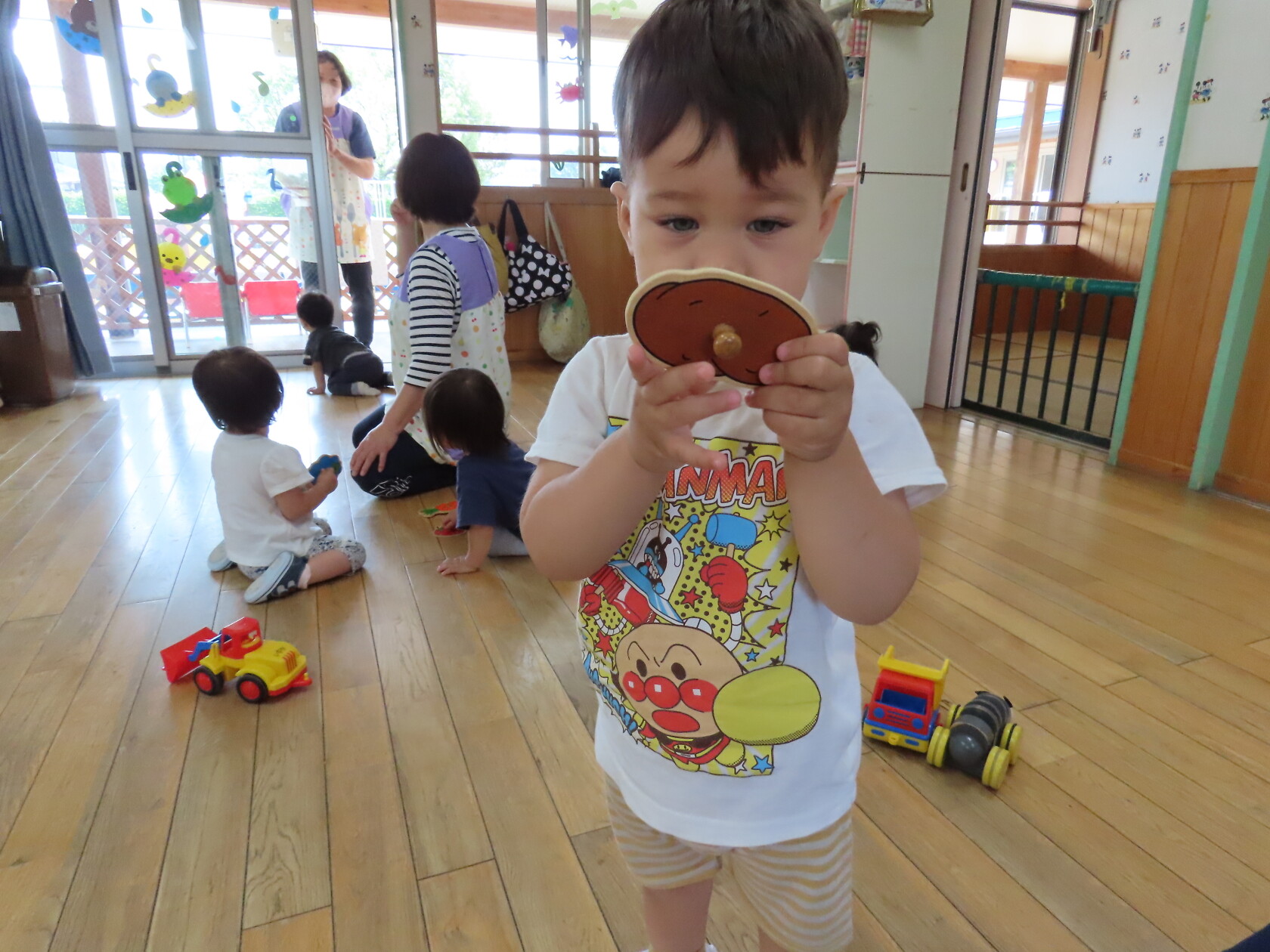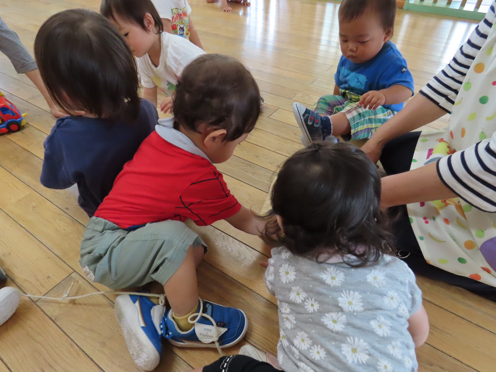 今日のできごと(さくら) 公開済み: 2023年6月19日更新: 2023年6月19日 今日は、お部屋で自動車や型はめなどをして遊びました 初めての型はめでは、同じ色・形を見ながら選ぶのですが、うまくはめる事が出来ず、苦戦していました でも、手をとり、一緒に遊んで楽しむことができました 時々、取り合ったりもありますが、小さいながらに譲ったりすることもあります そんなかわいい、さくら組さんです