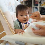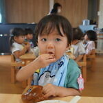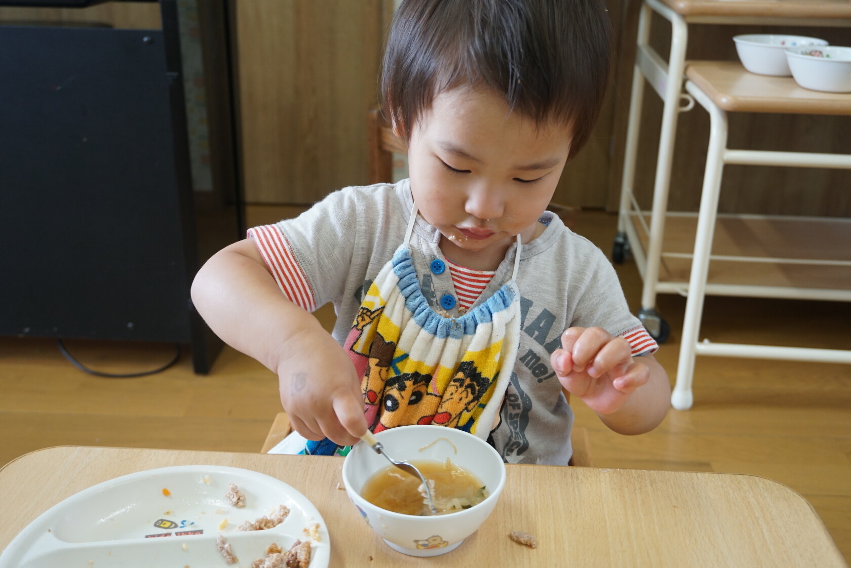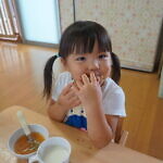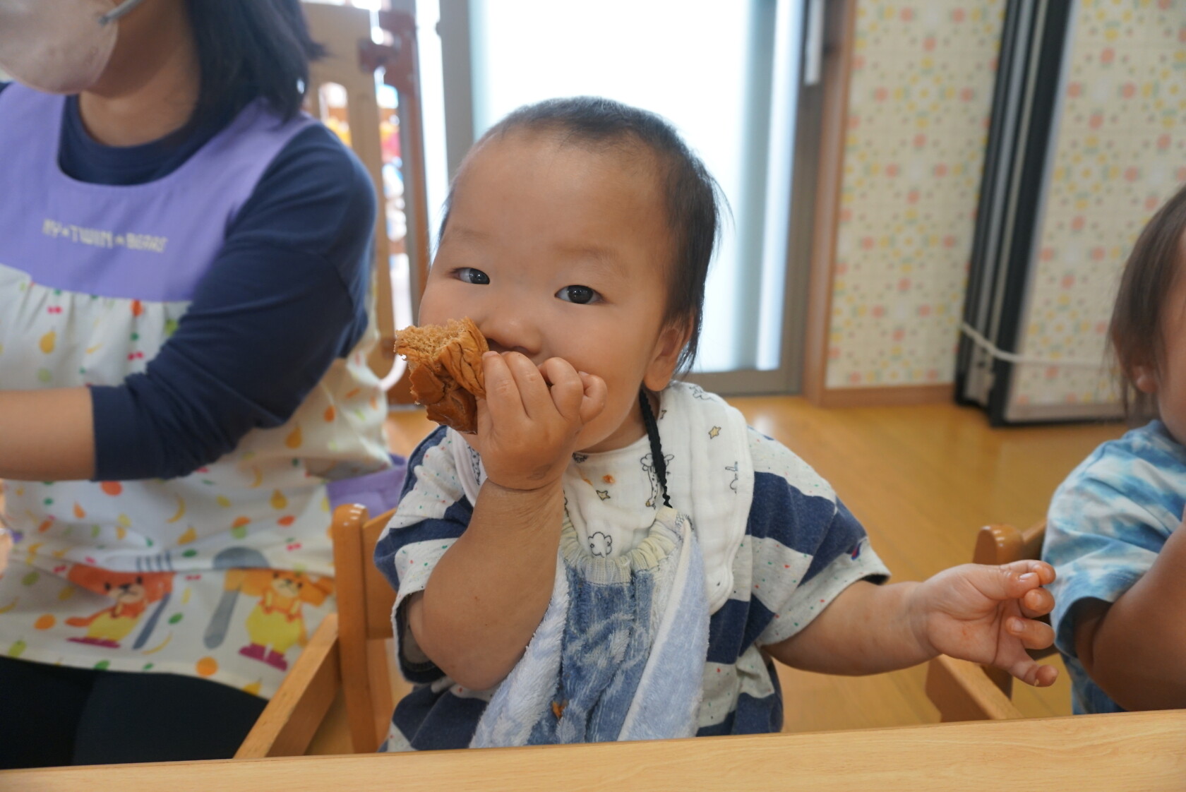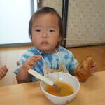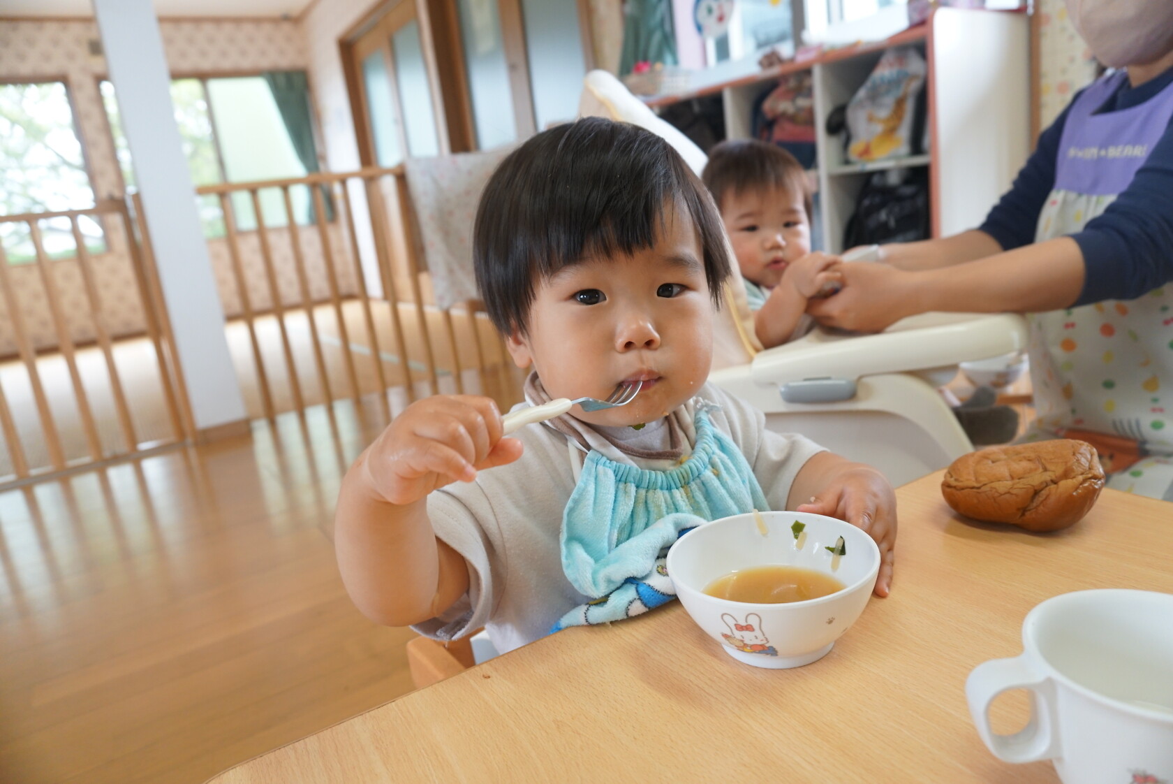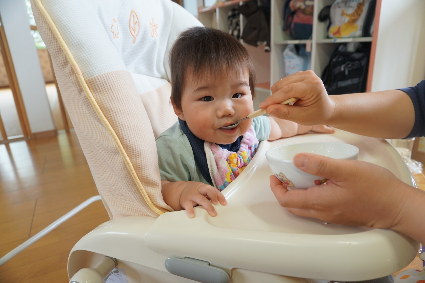0歳児さんは、離乳食をよく食べ、「おいしい」と言わんばかりににっこり笑顔を見せてくれました😊