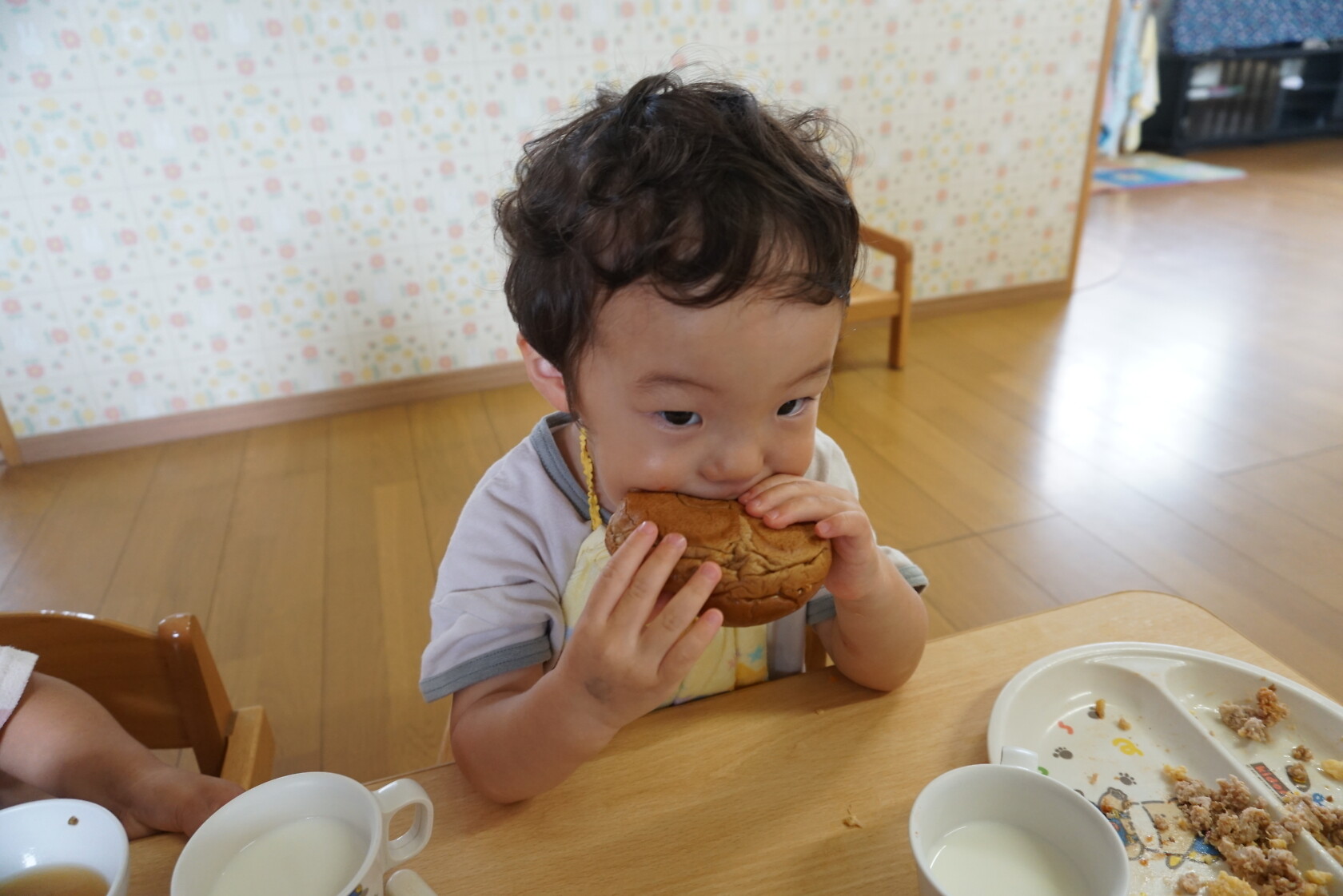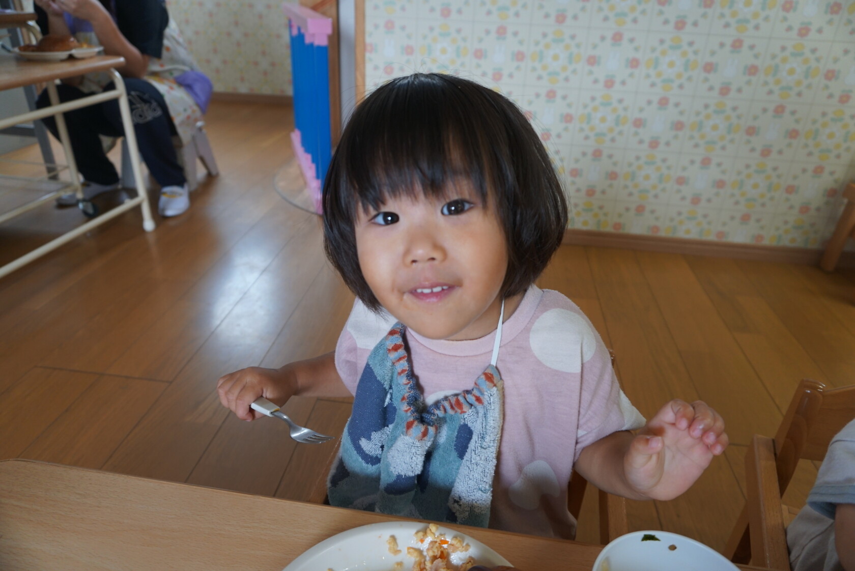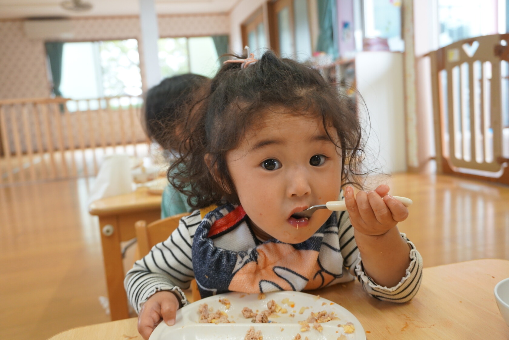 1歳児さんは、手掴みやフォークを使って意欲的に食べ、お腹いっぱい食べました😆