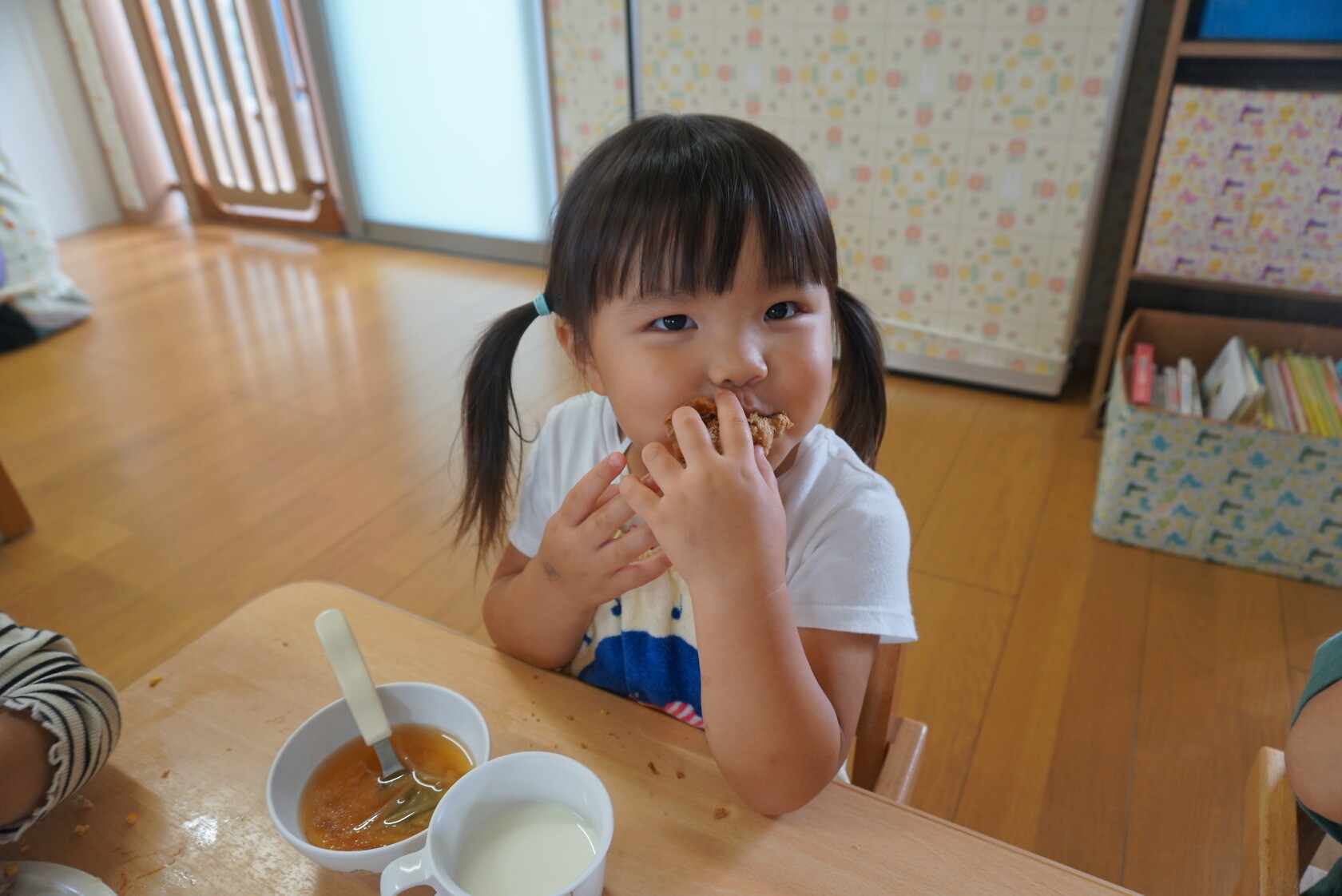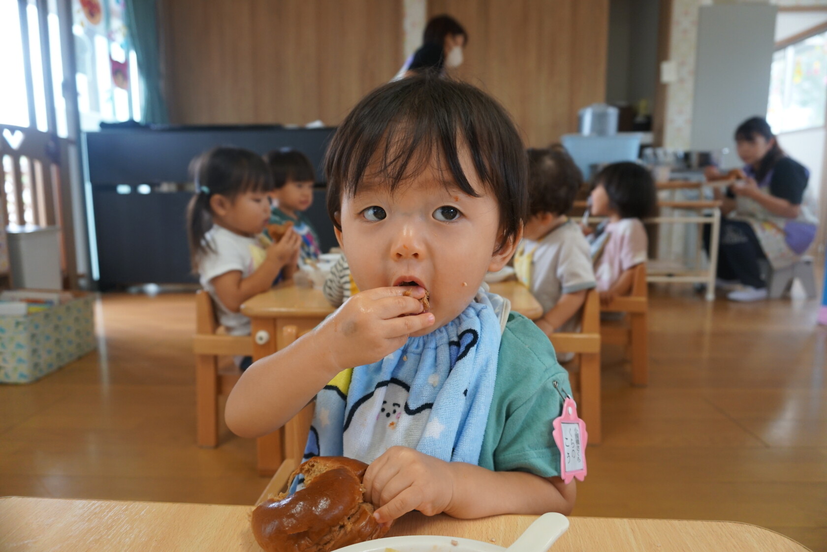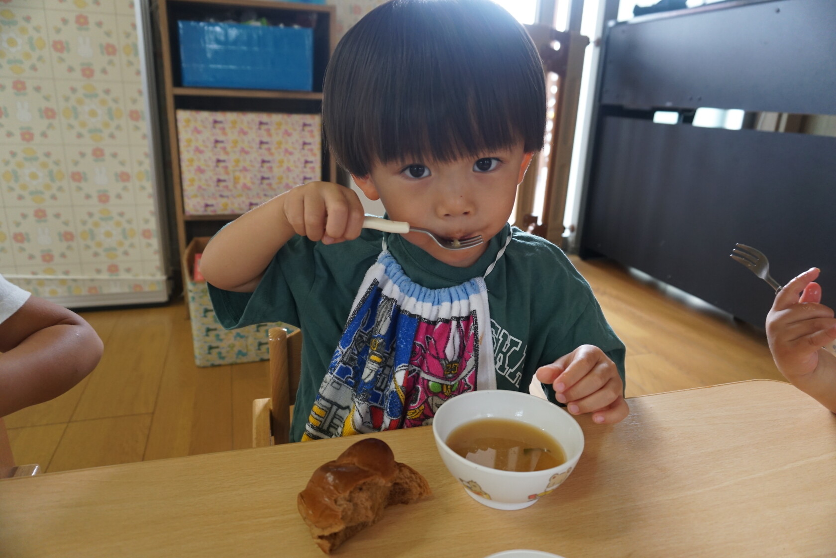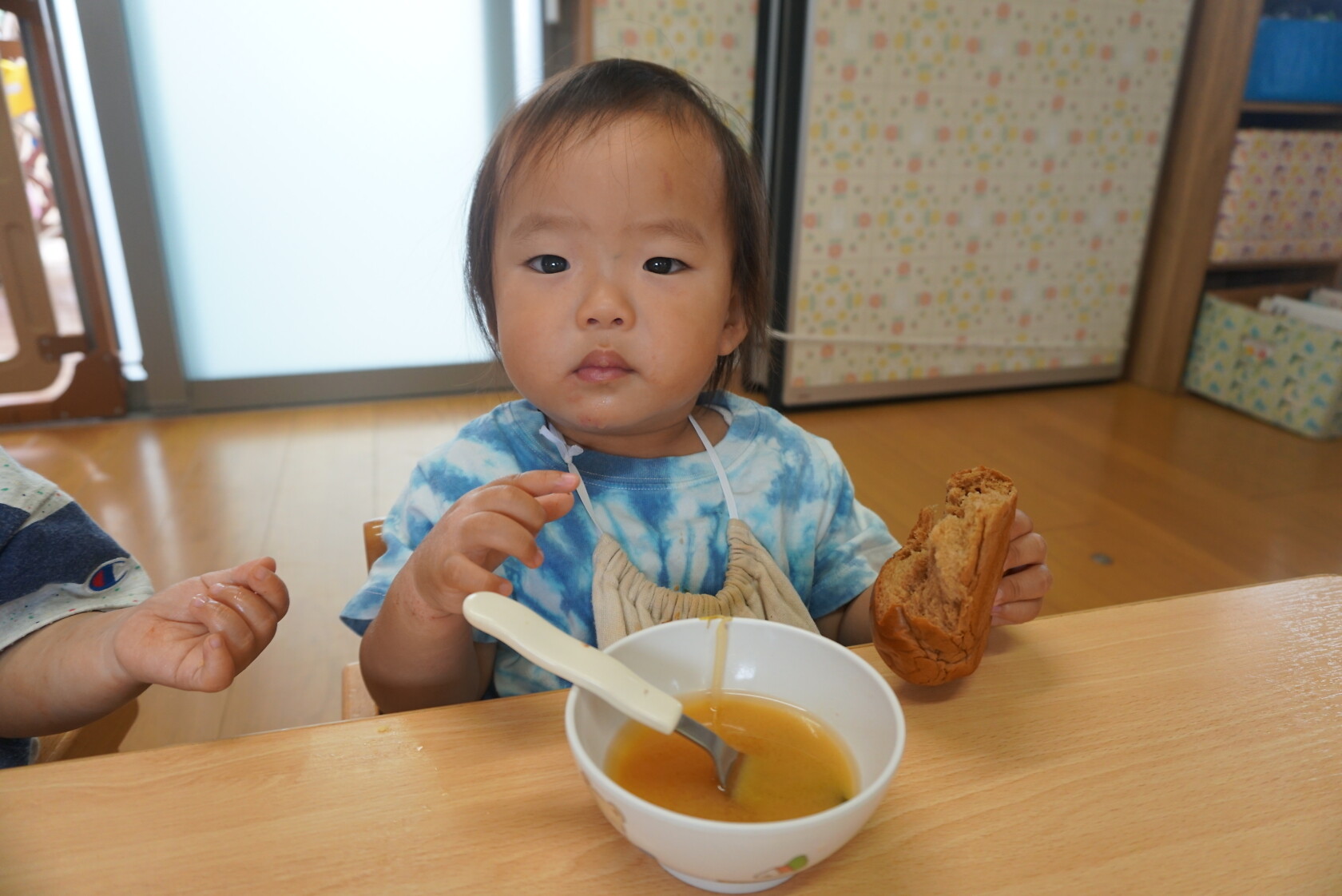 1歳児さんは、手掴みやフォークを使って意欲的に食べ、お腹いっぱい食べました😆
