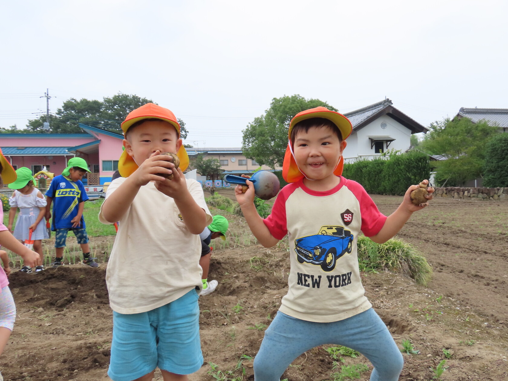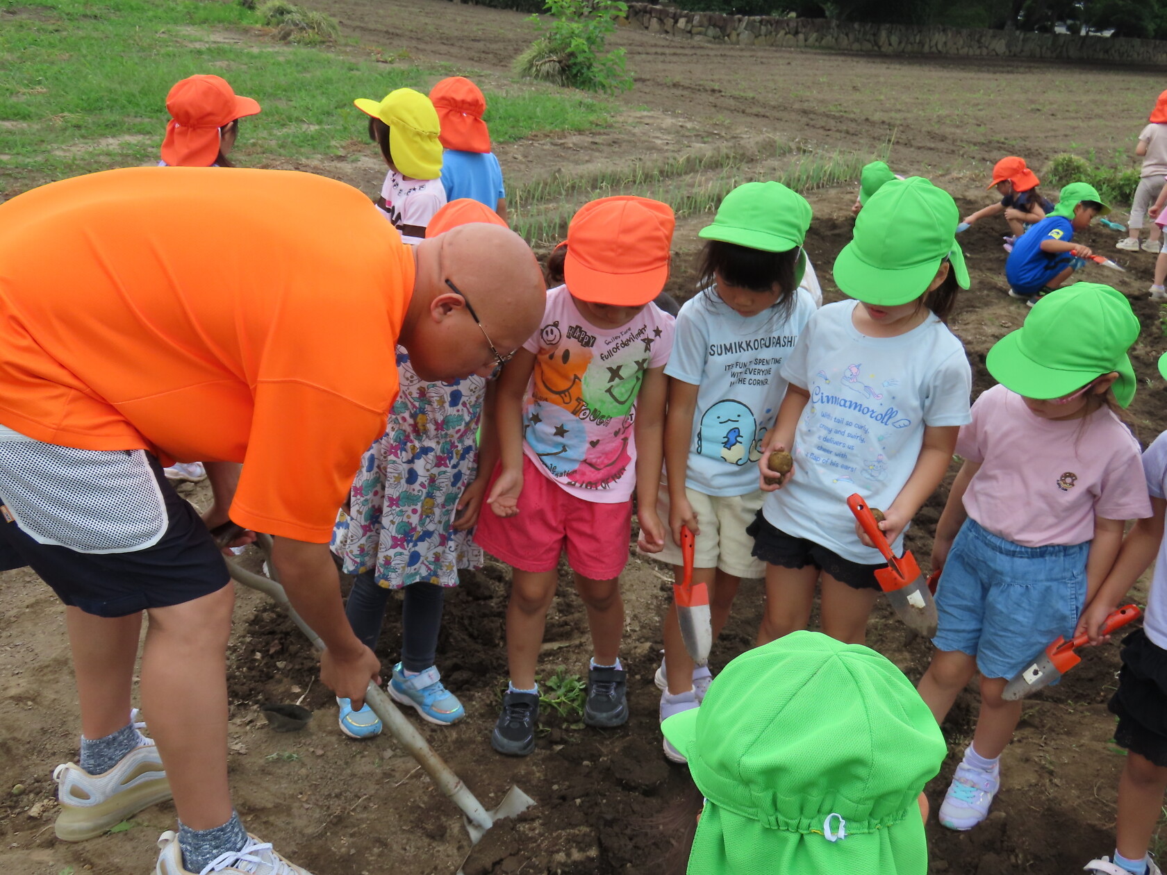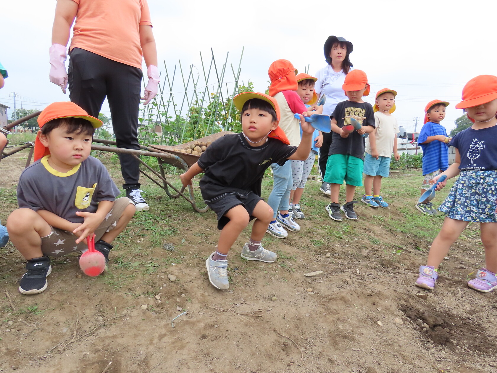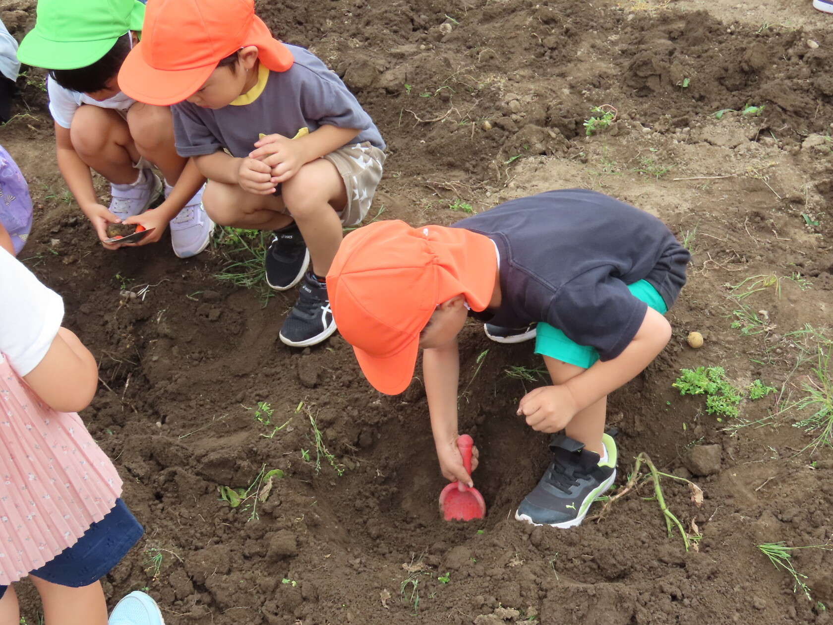 今日のできごと(ひまわり・ゆり) 公開済み: 2023年6月26日更新: 2023年6月26日 今日は保育園の畑でジャガイモ堀りをしました! 「ジャガイモ掘りをします!」と伝えると「やったー!!🙌」と大歓声があがり、とても喜びながらいざ畑へ✨、、 何も見えない所から土を掘りおこすとジャガイモがゴロゴロっと飛び出てきて「わー!!すごーい😆」と目を輝かせていました。 さて今度はみんなの出番です!!😊。各自、シャベルを持ち一生懸命に掘っていました。 とても楽しい収穫体験となりました。お家でもその時の様子を聞いてみて下さい😊。