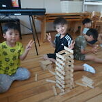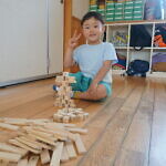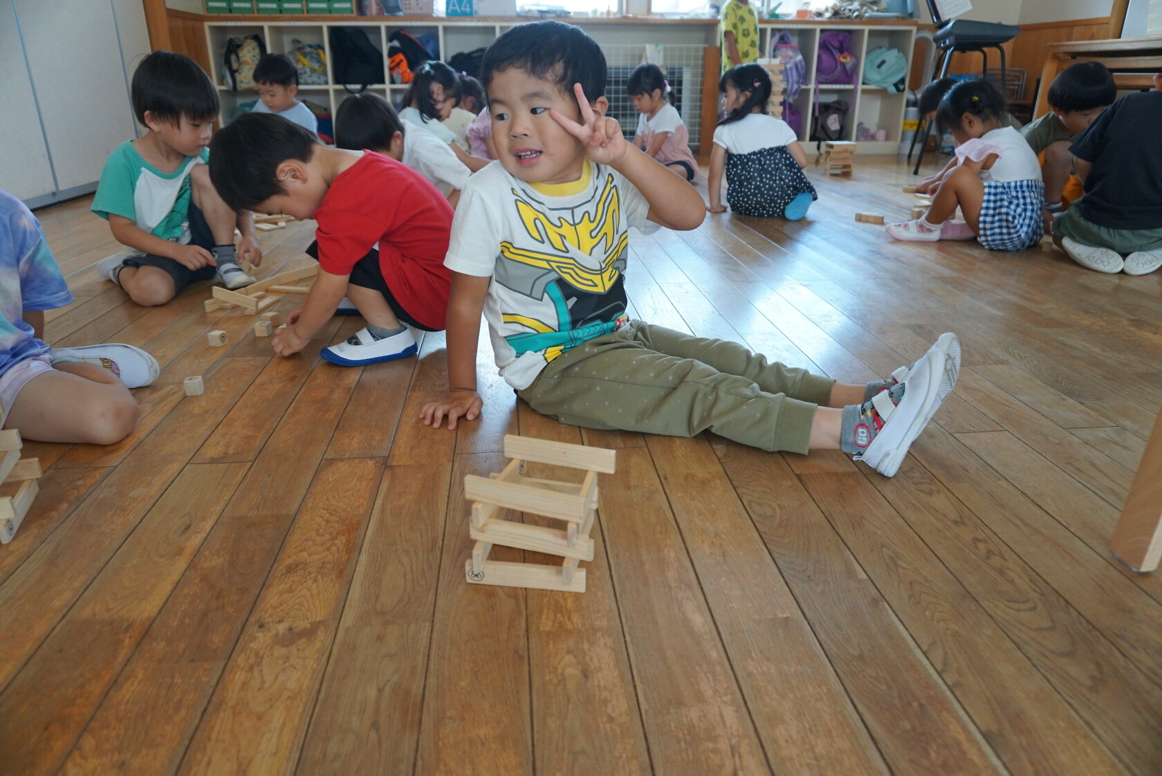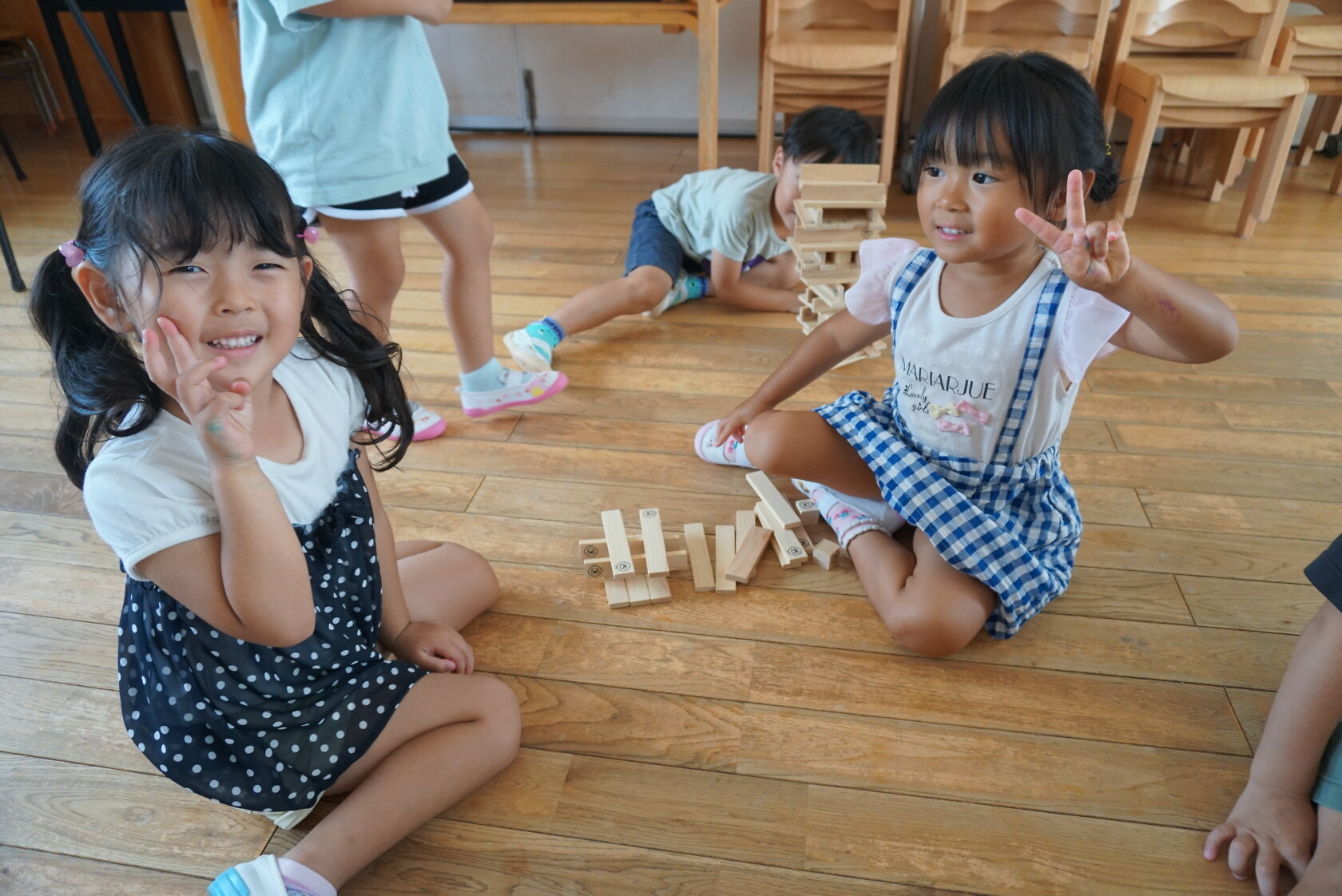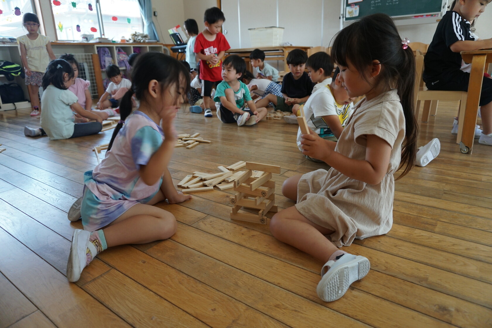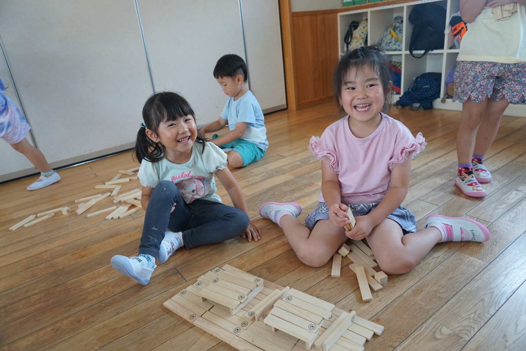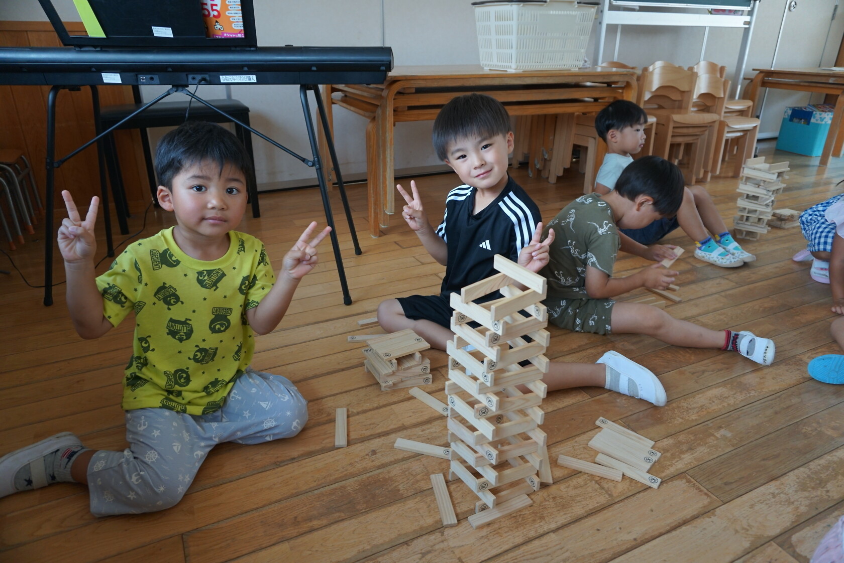 少しずつ積み方を変えながら、高く積み上げていく子や安定感のある積み方をする子など色々な方法で遊べるようになってきました😆