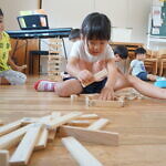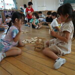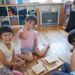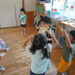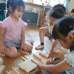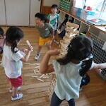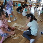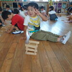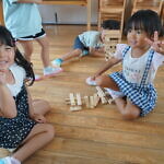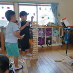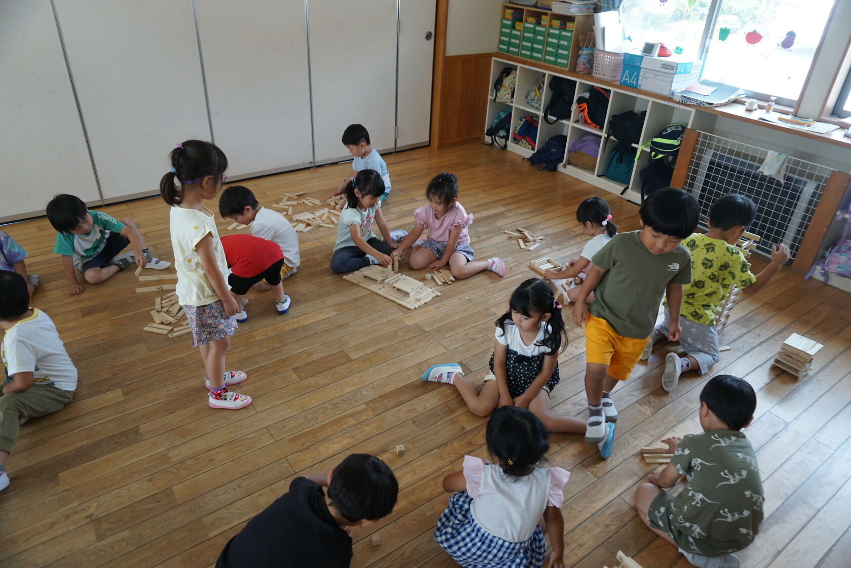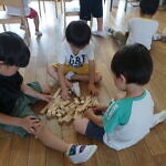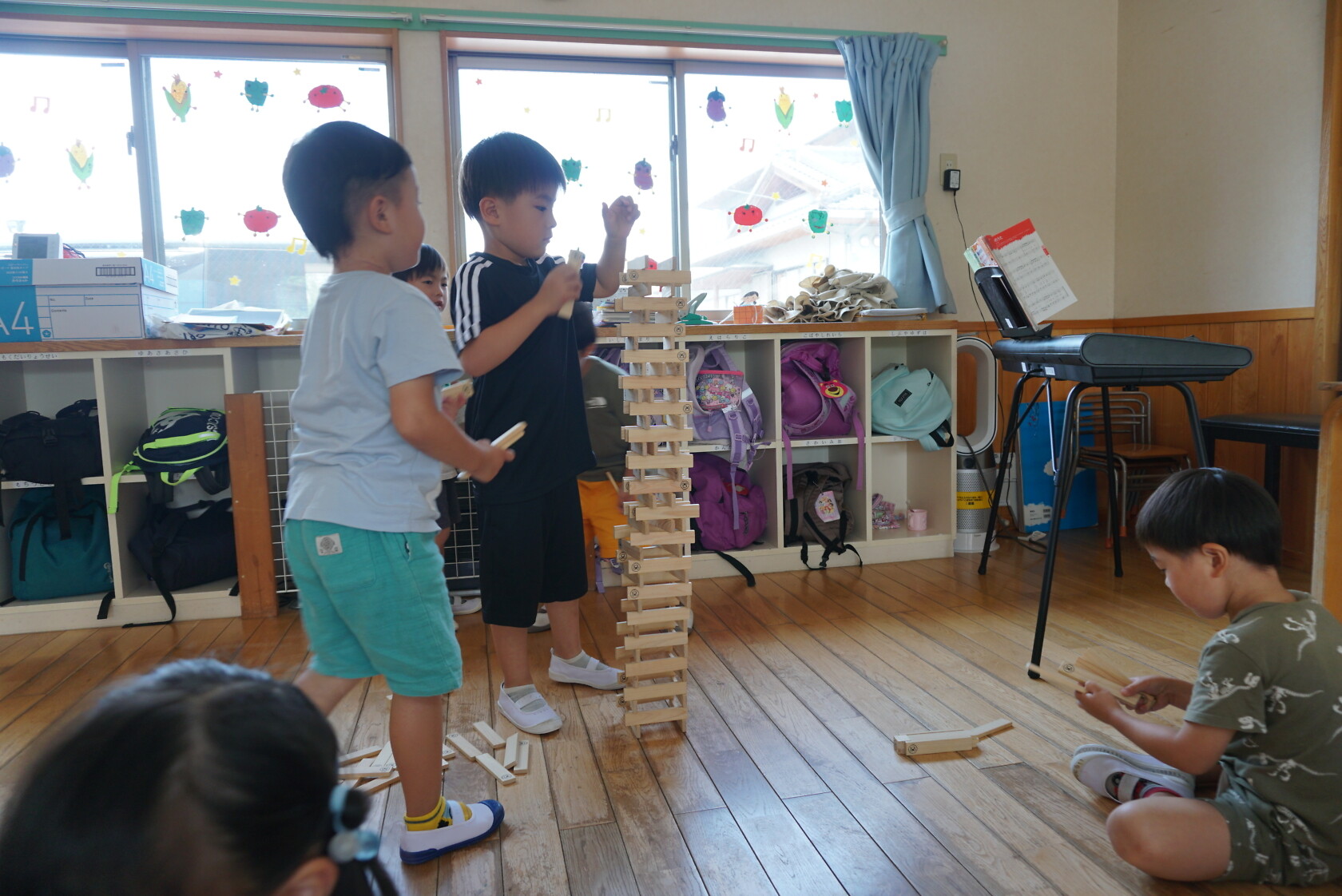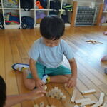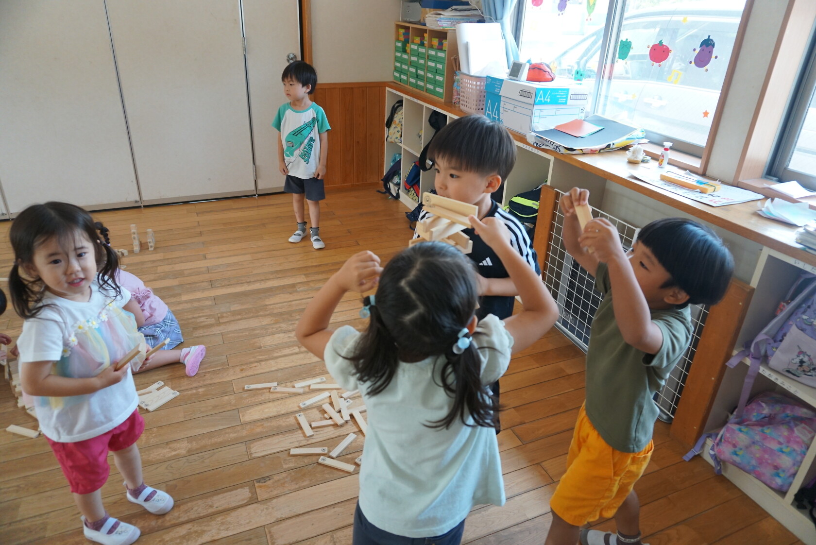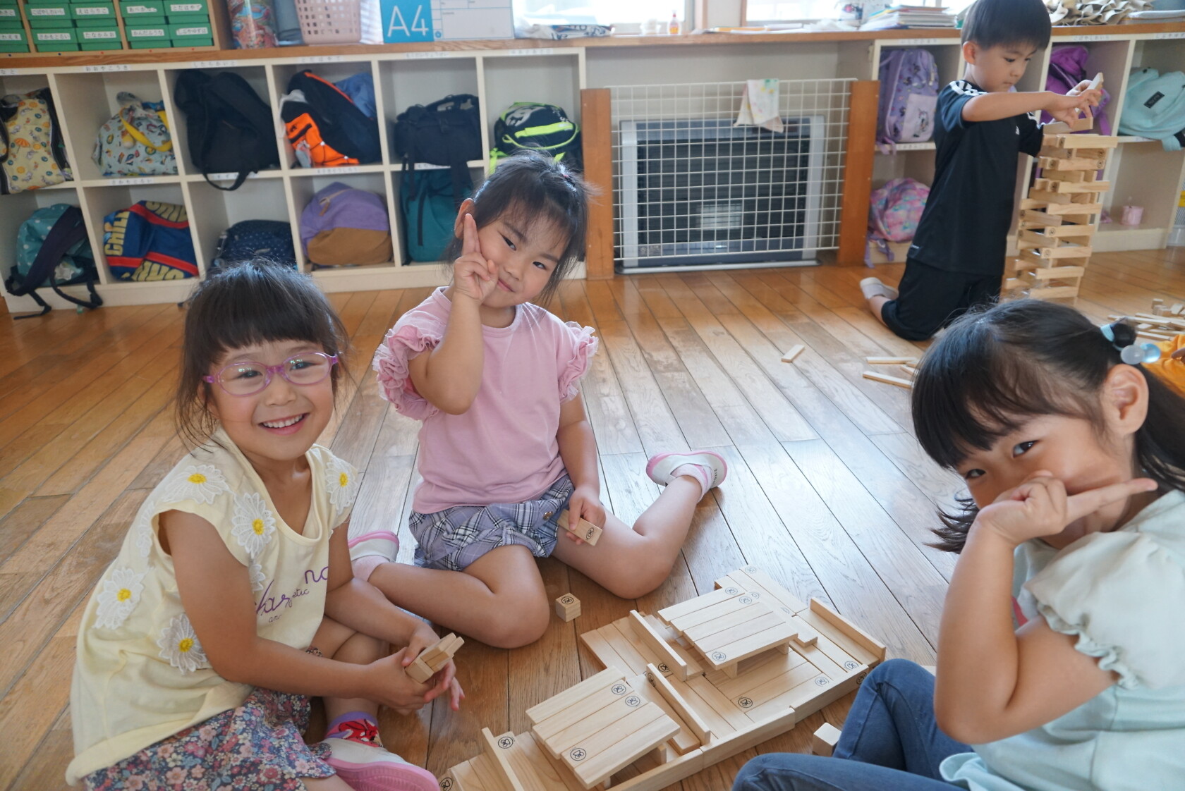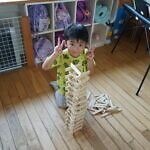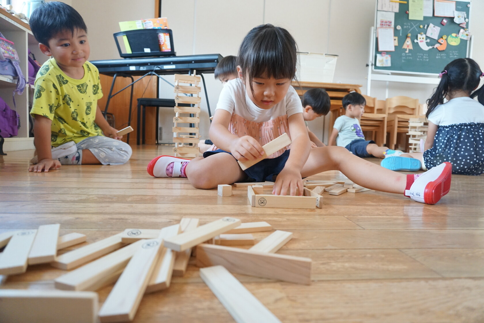 少しずつ積み方を変えながら、高く積み上げていく子や安定感のある積み方をする子など色々な方法で遊べるようになってきました😆
