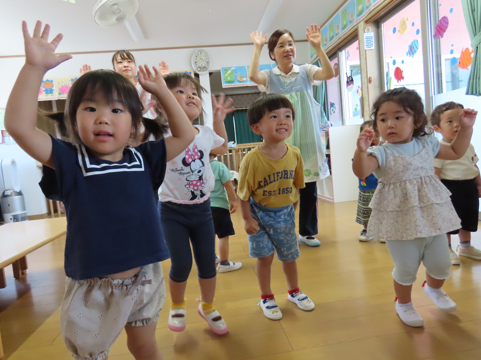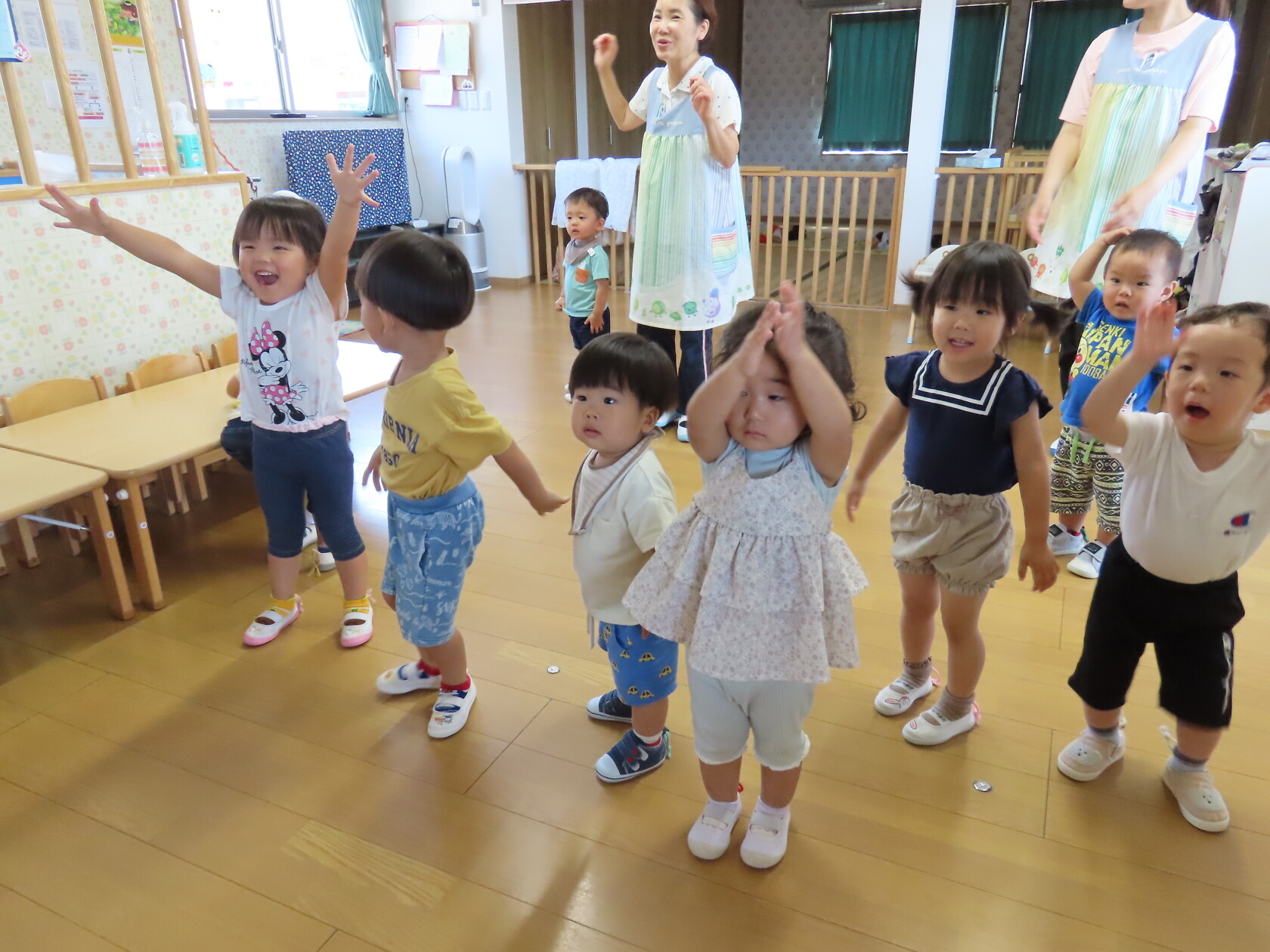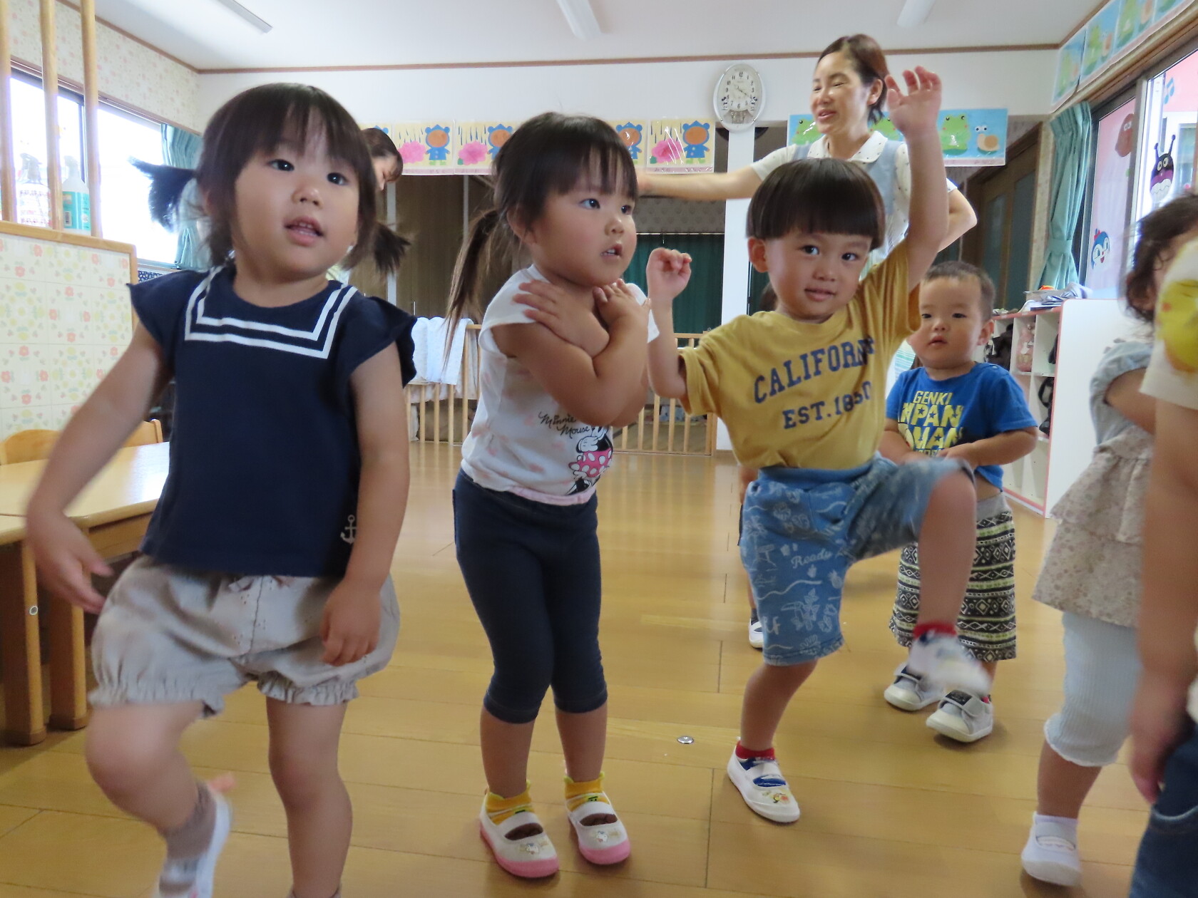 最初は少し恥ずかしそうにしていた子ども達でしたが、大好きなアンパンマンの曲がかかるとみんなノリノリで踊っていました😁🎵