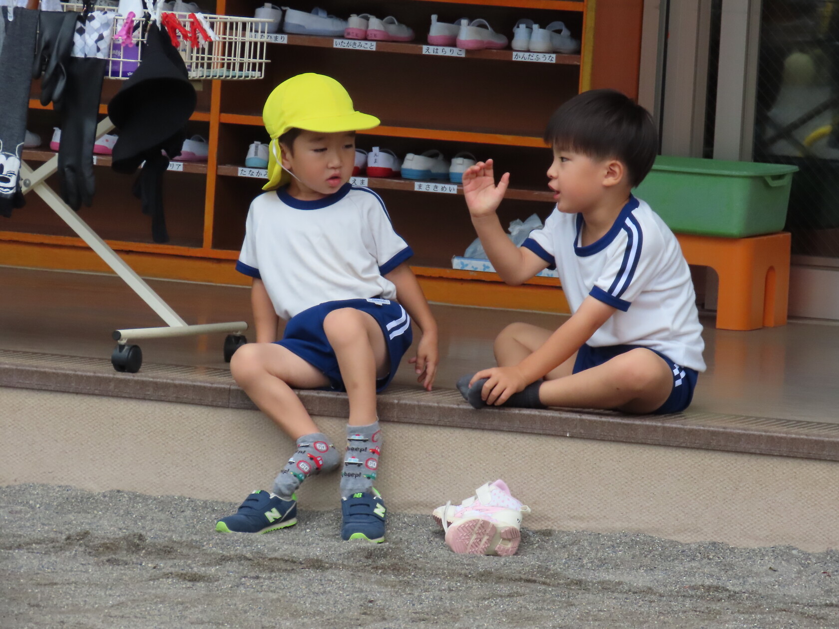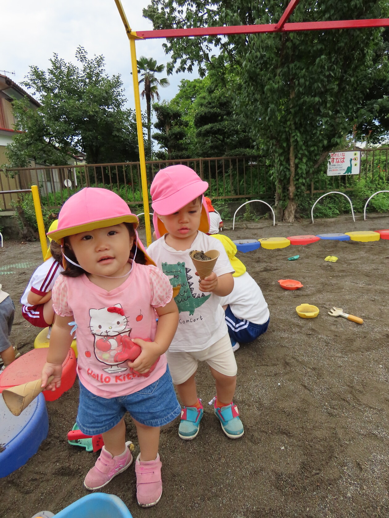 今日のできごと(園庭) 公開済み: 2023年7月13日更新: 2023年7月13日 今日は久しぶりに外の気温が低かったので朝の時間に園庭でたくさん遊ぶことができました😁 ひさしぶりの外遊びにみんな大興奮。笑顔で走り回っていました!! 気温が低いとはいえ湿度が高いので水分補給はこまめにしました🍹