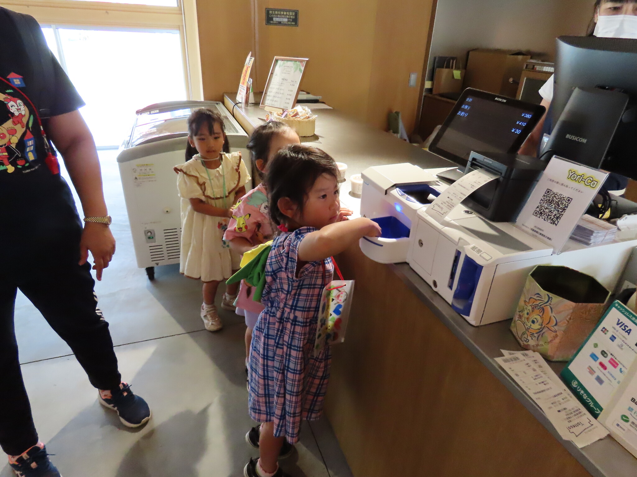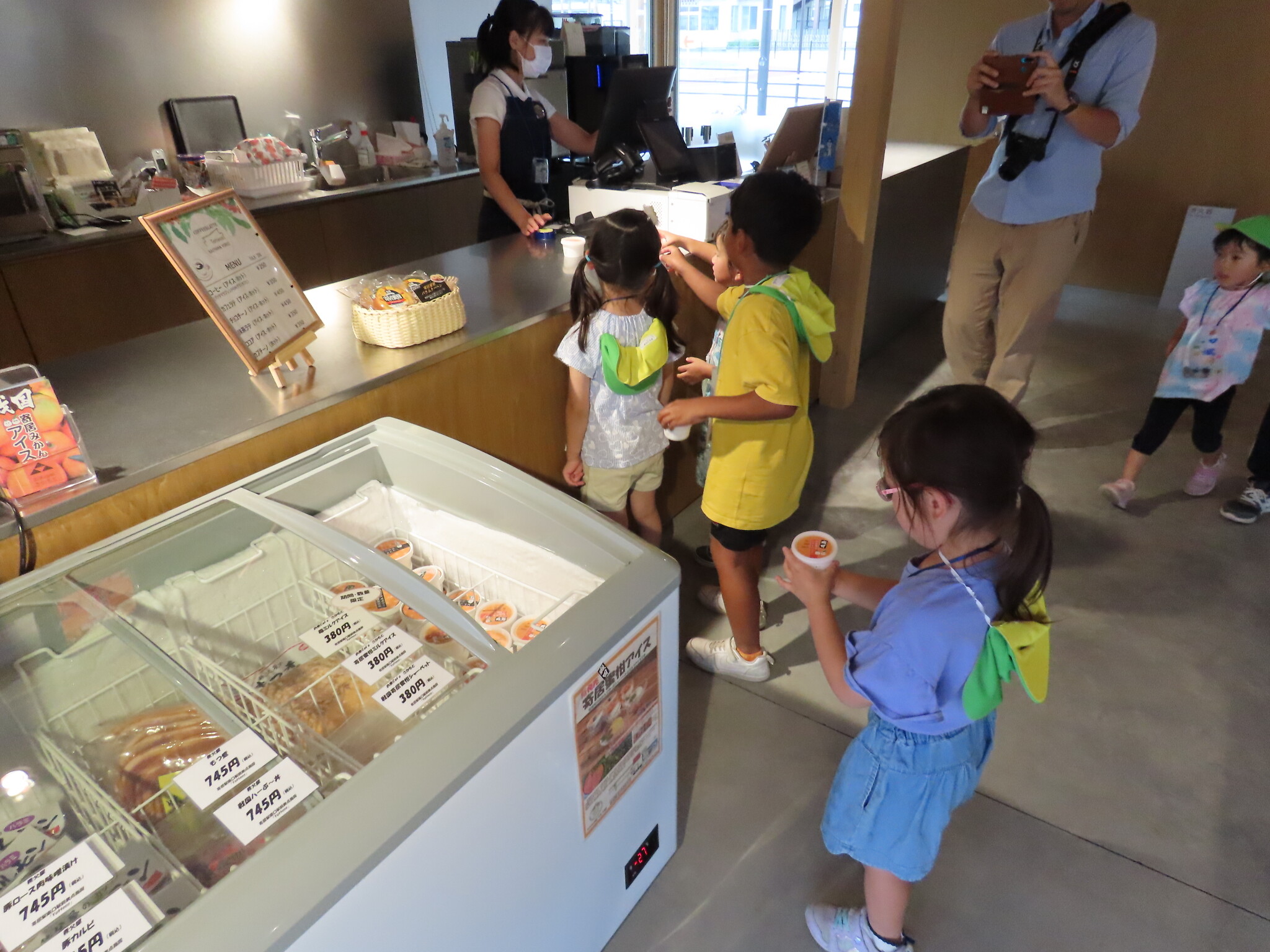 夕涼み会③ 公開済み: 2023年7月21日更新: 2023年7月21日 役場を出た後は雀宮公園にいきました!! 自然がいっぱいで涼しく普段とは違う公園にみんな大喜びでした😁 また、久保町議会議員も一緒に遊んでくれ楽しい時間を過ごしました👍 その後は待ちに待ったYottecoに蜜柑のジェラートを買いに行きました!! 自分で冷凍庫からアイスを出し一人一人お金を出して買いました! 買った後は屋上でみんなで仲良く食べました! ずっと楽しみにしていたようでみんなとても嬉しそうでした😁 寄居町を探索した一同はまた電車にのり無事に保育園に戻りました😁
