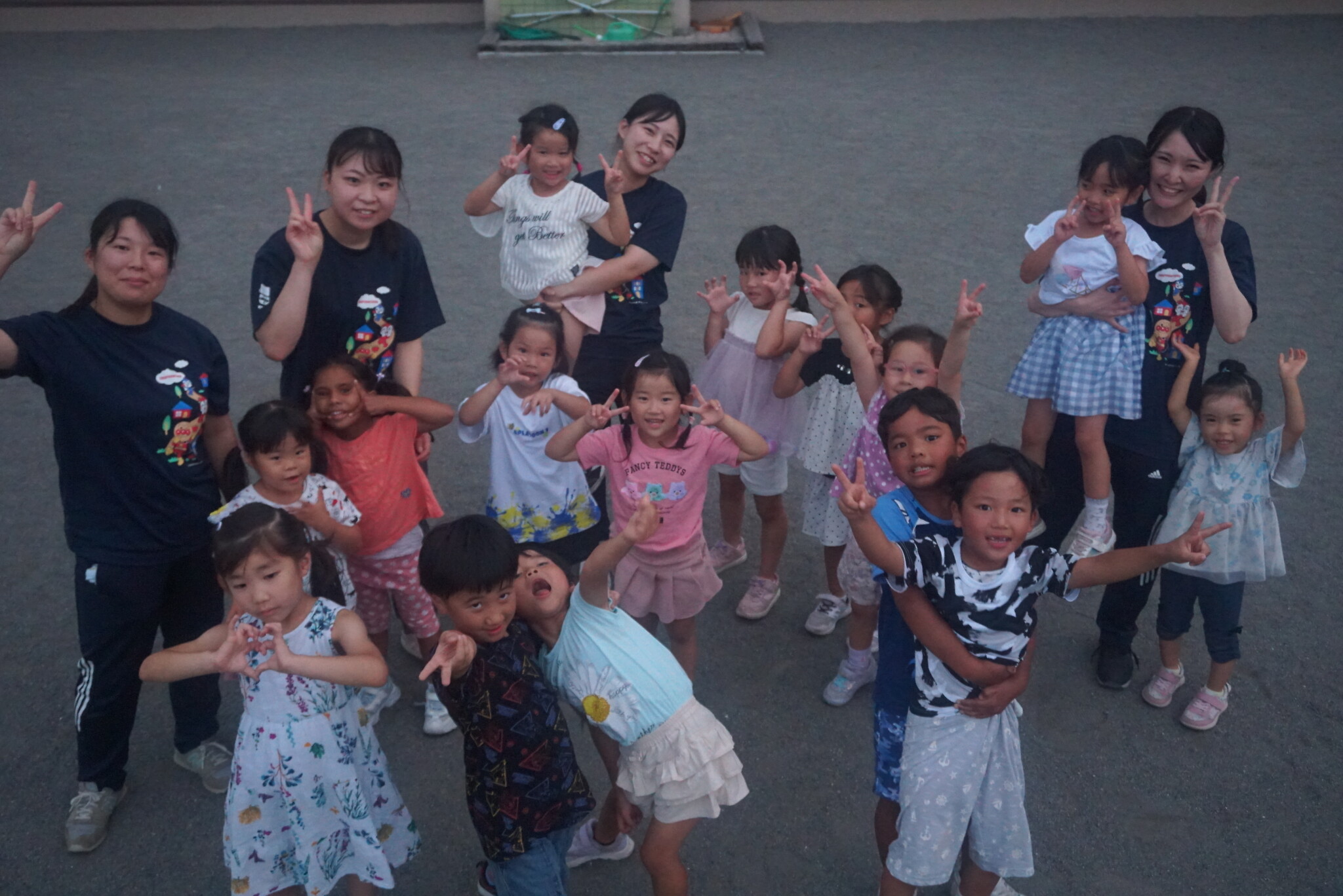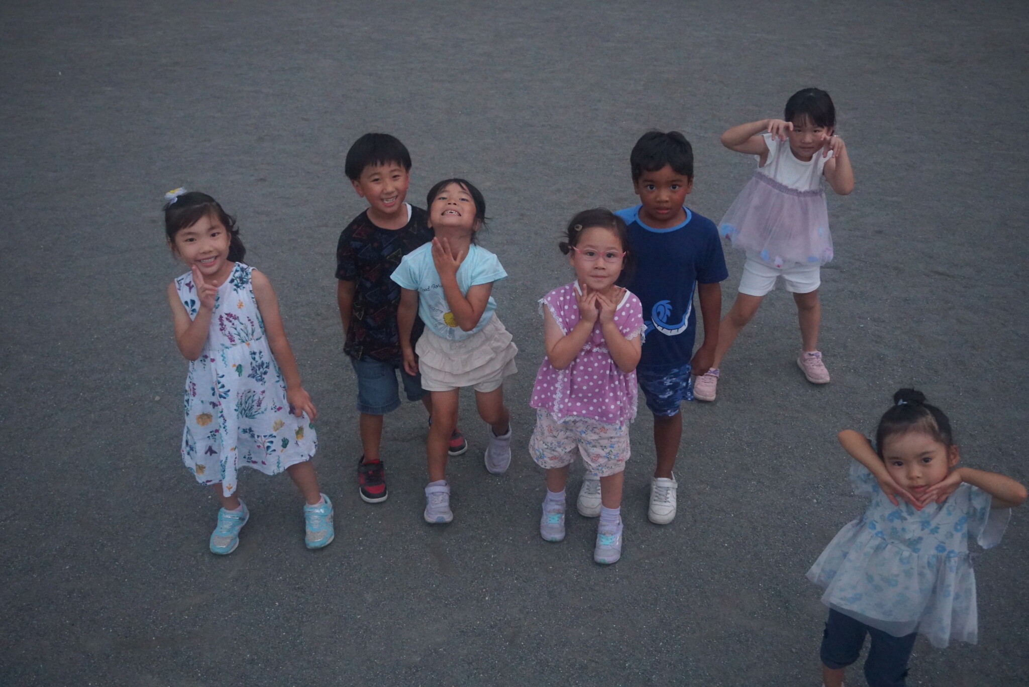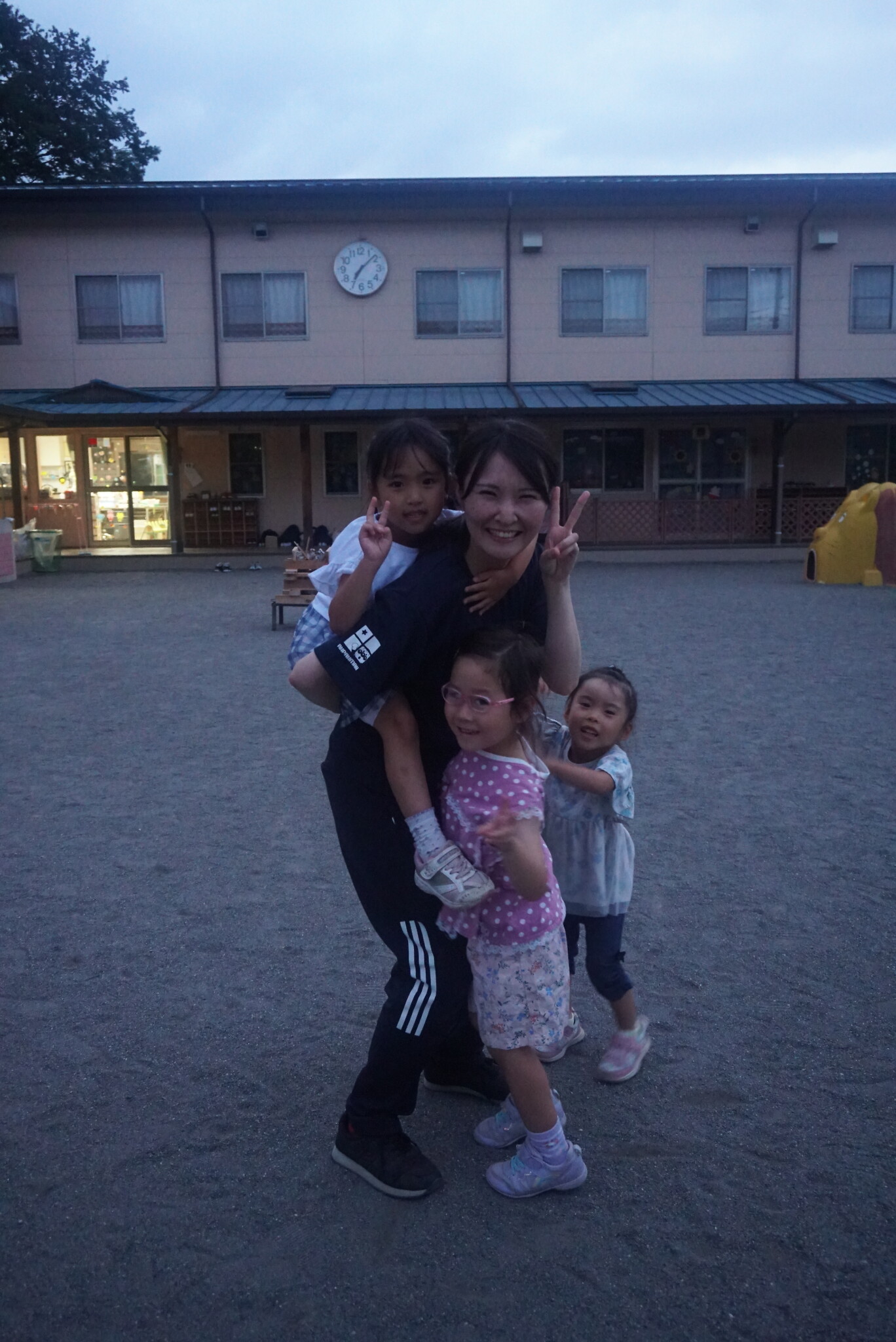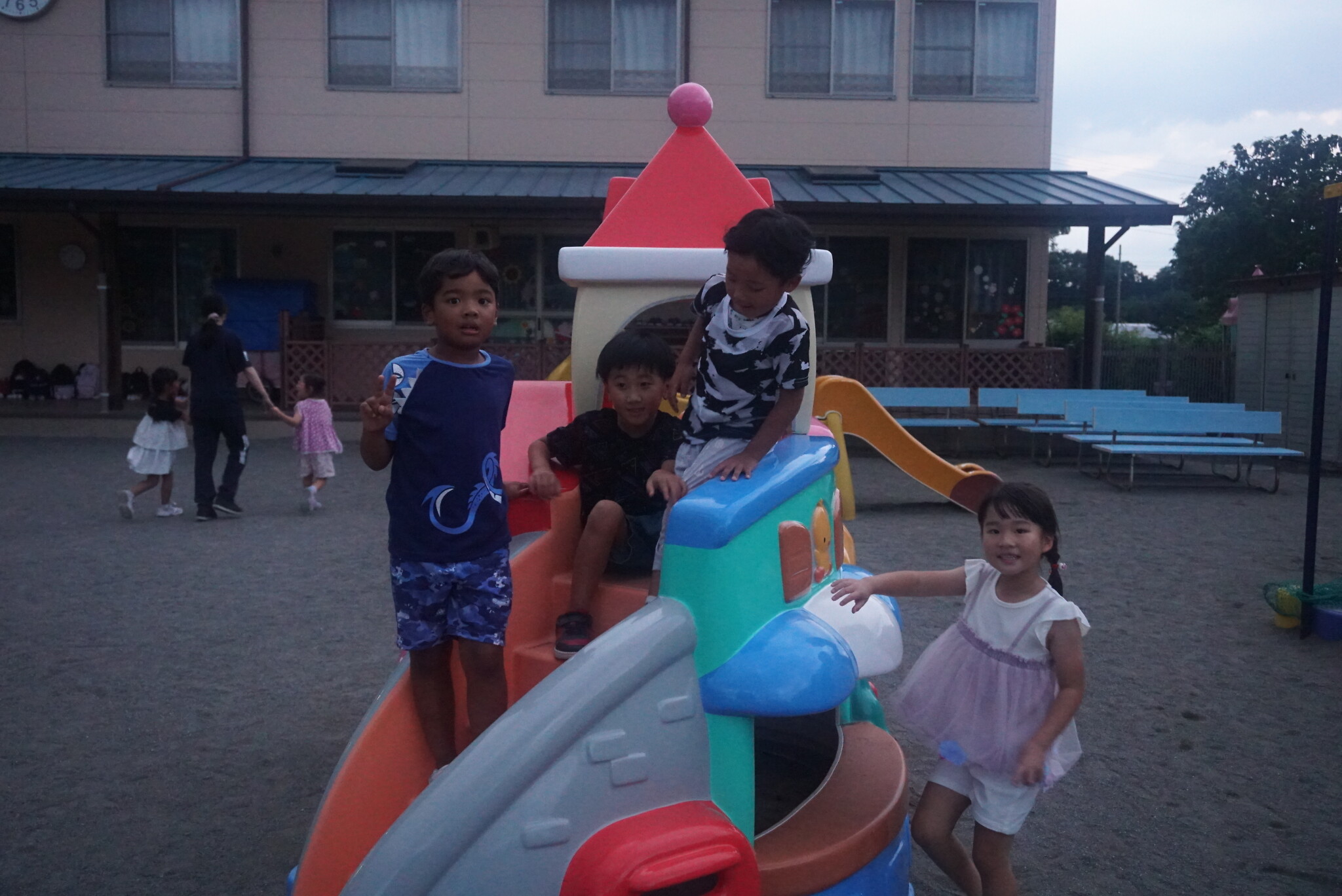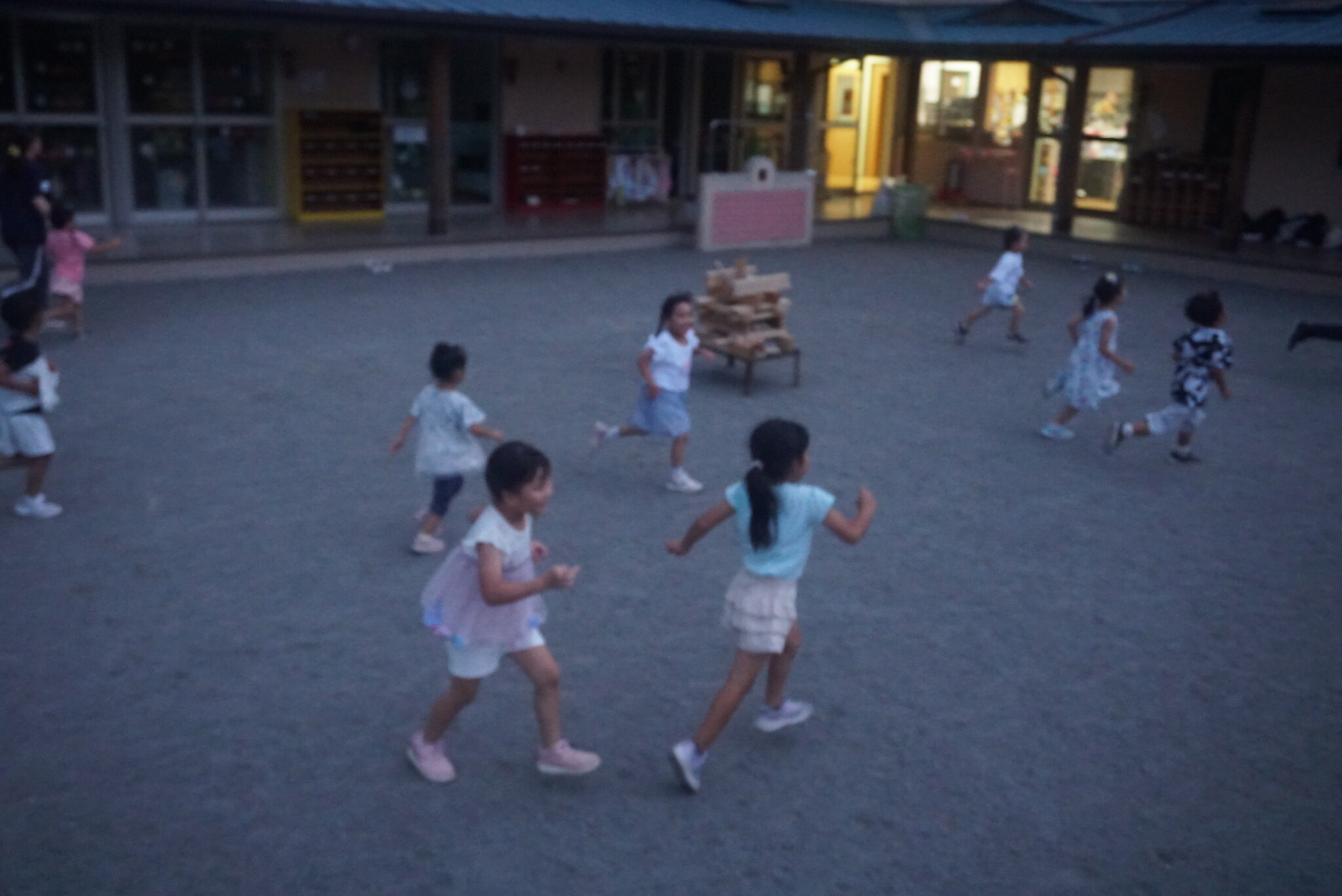 給食の後は夜の園庭で遊ん後にキャンプファイヤーをしました!!