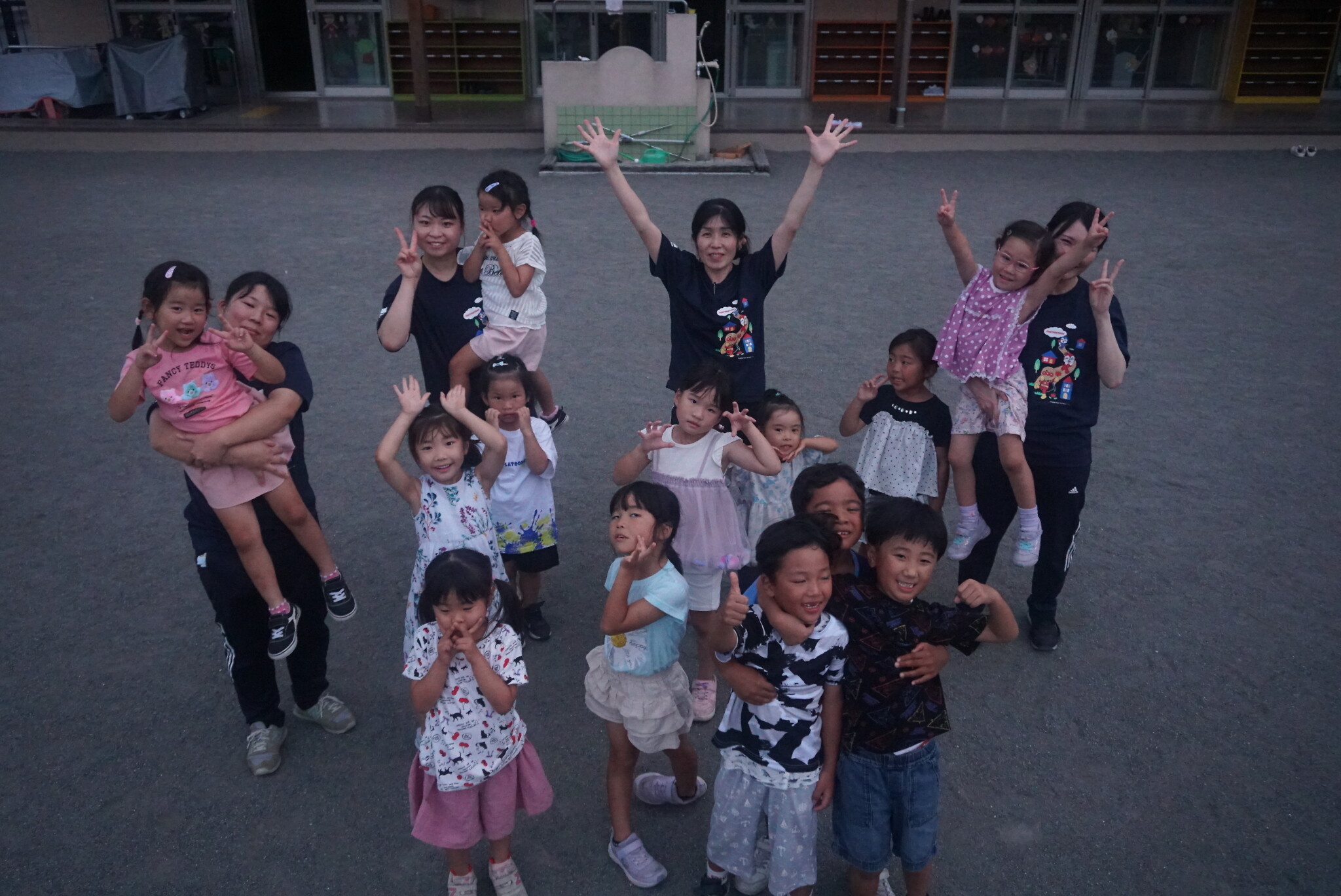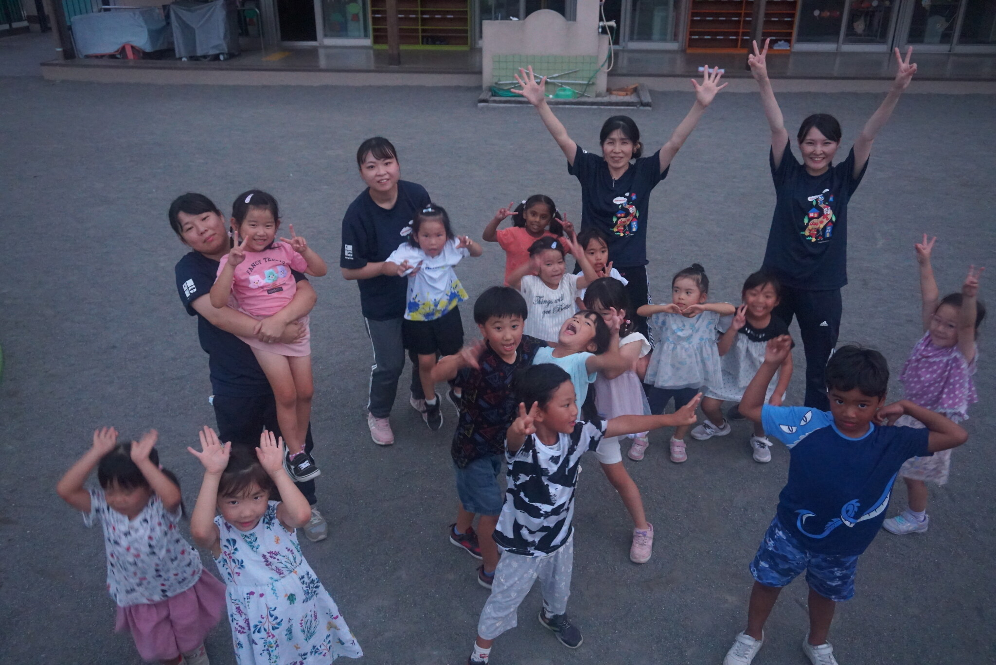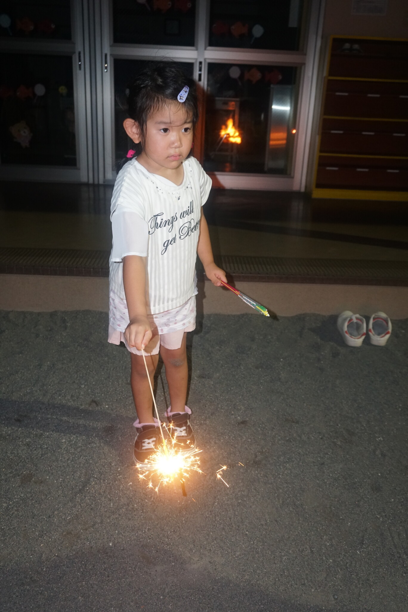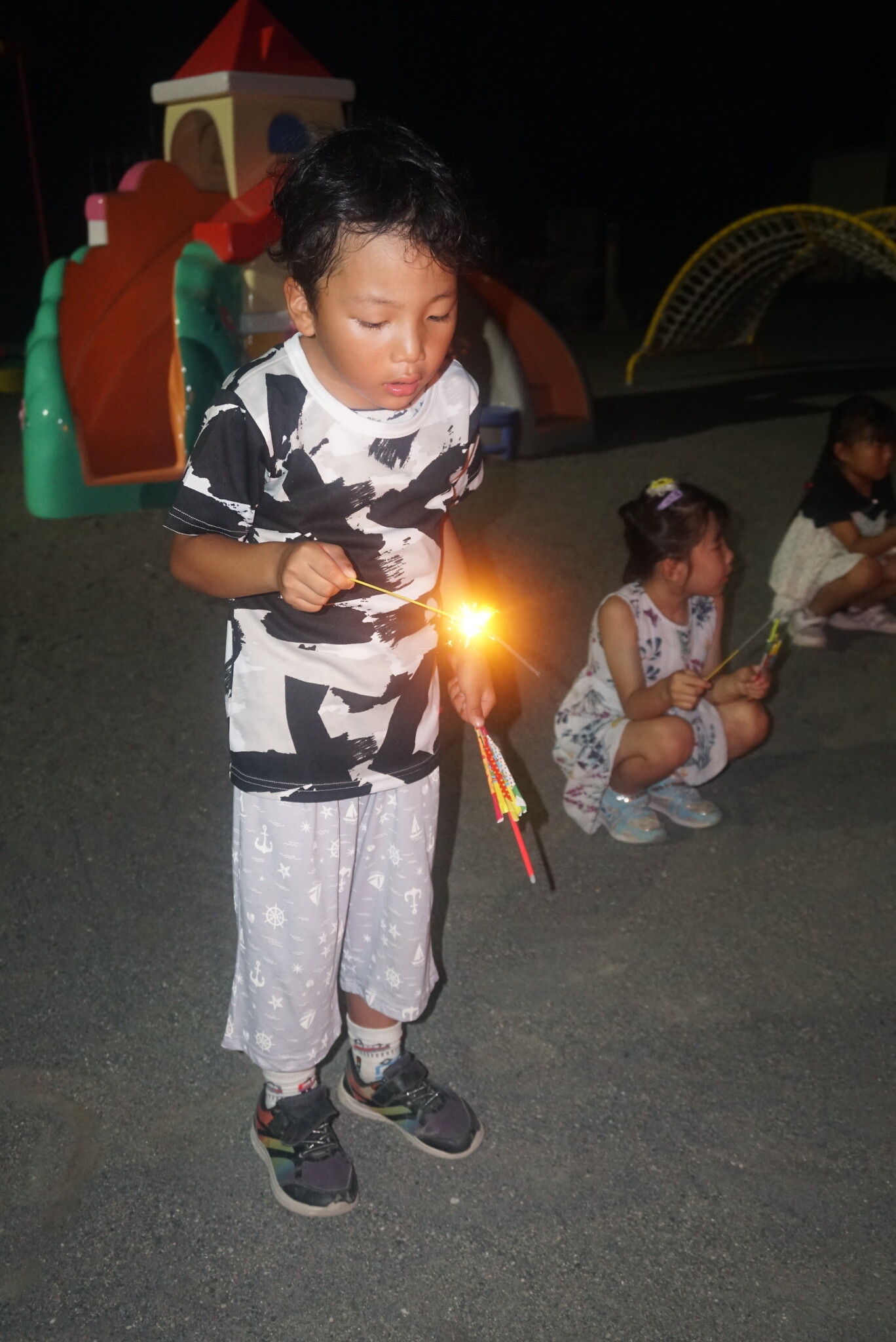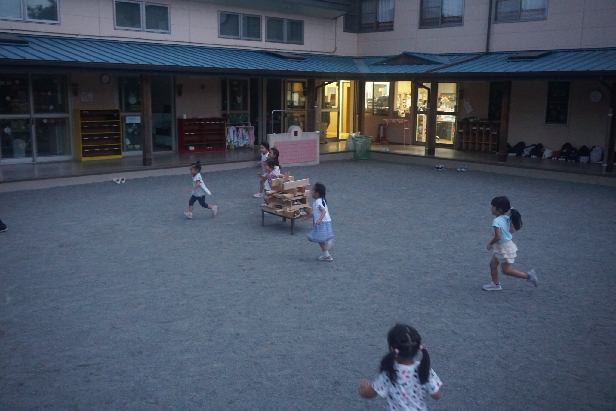 給食の後は夜の園庭で遊ん後にキャンプファイヤーをしました!!