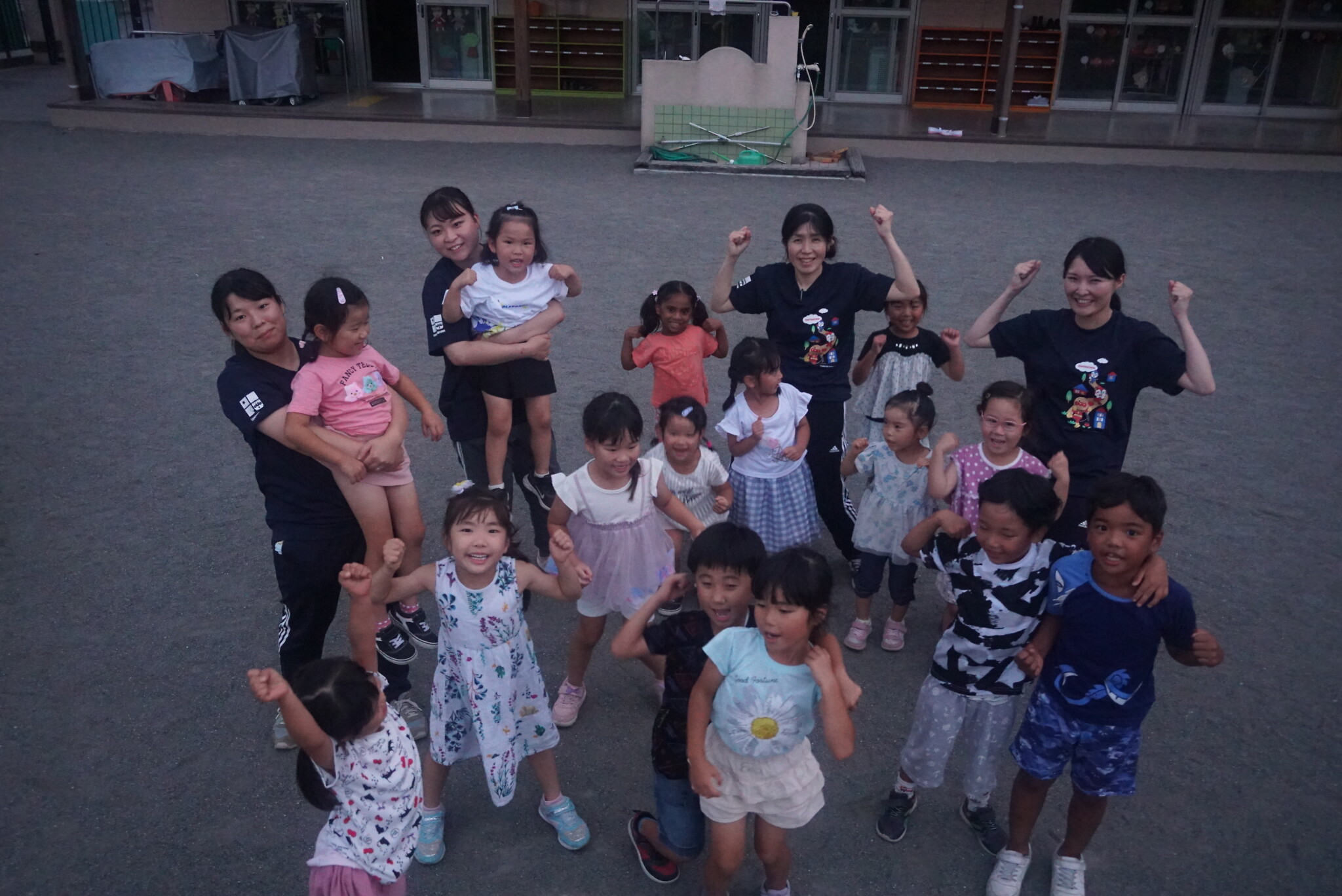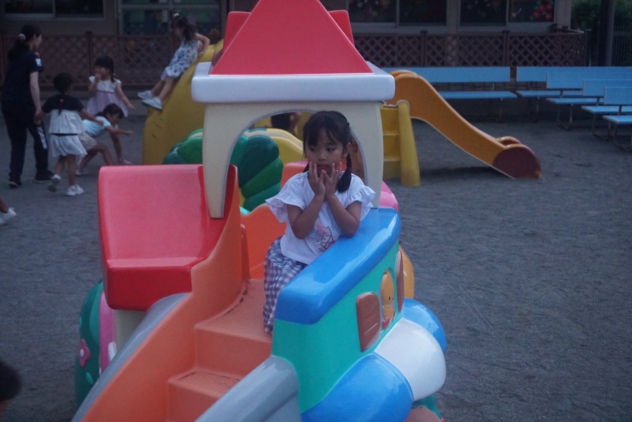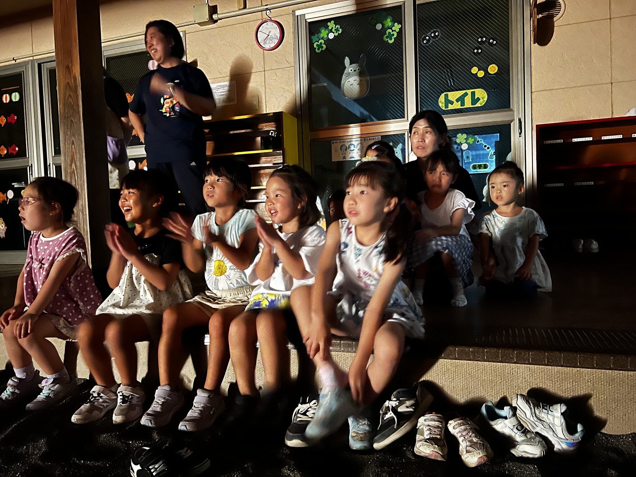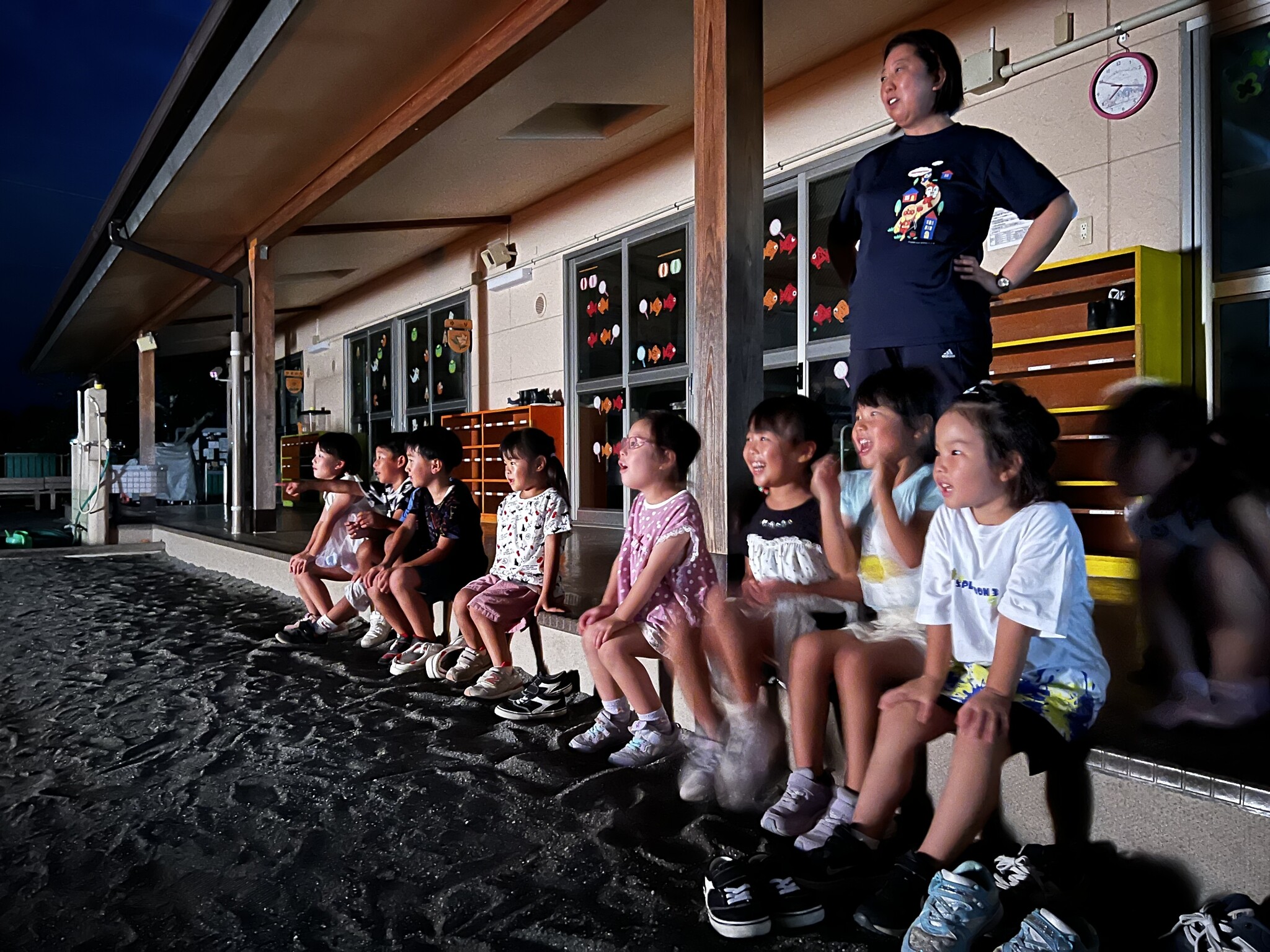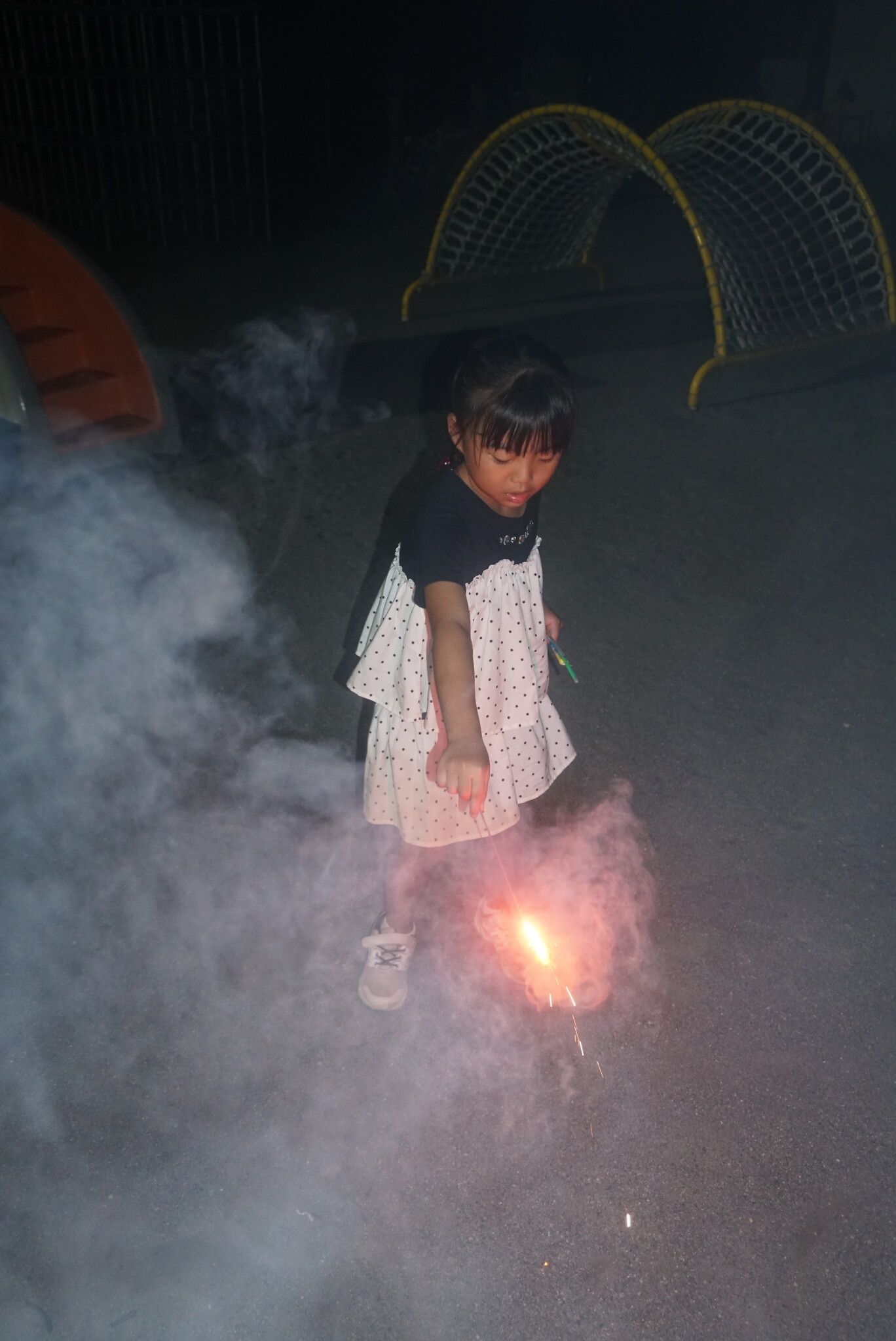 給食の後は夜の園庭で遊ん後にキャンプファイヤーをしました!!