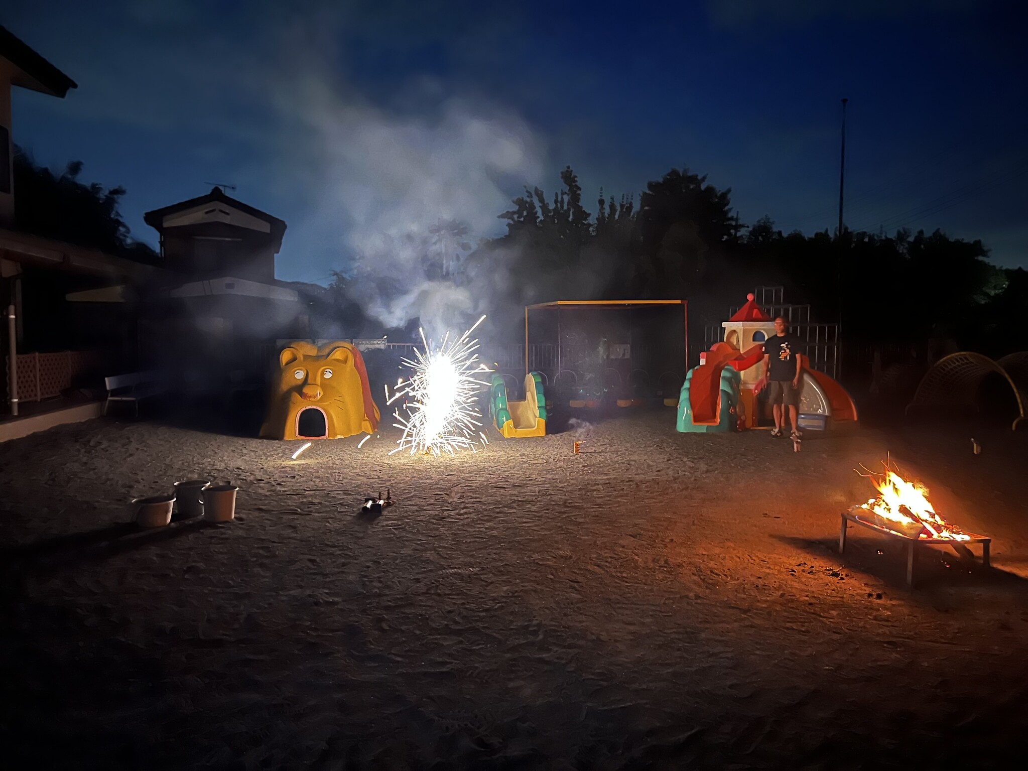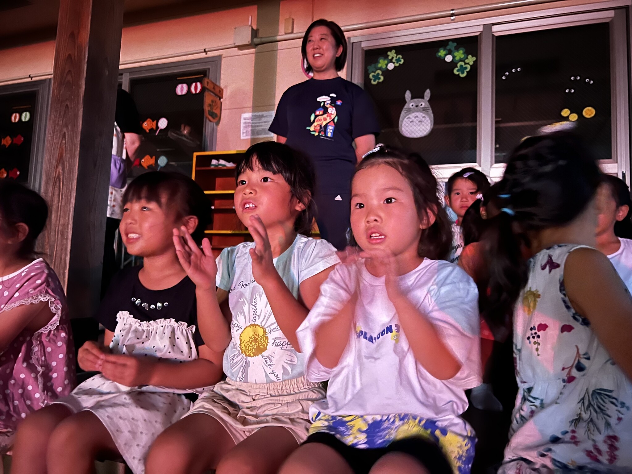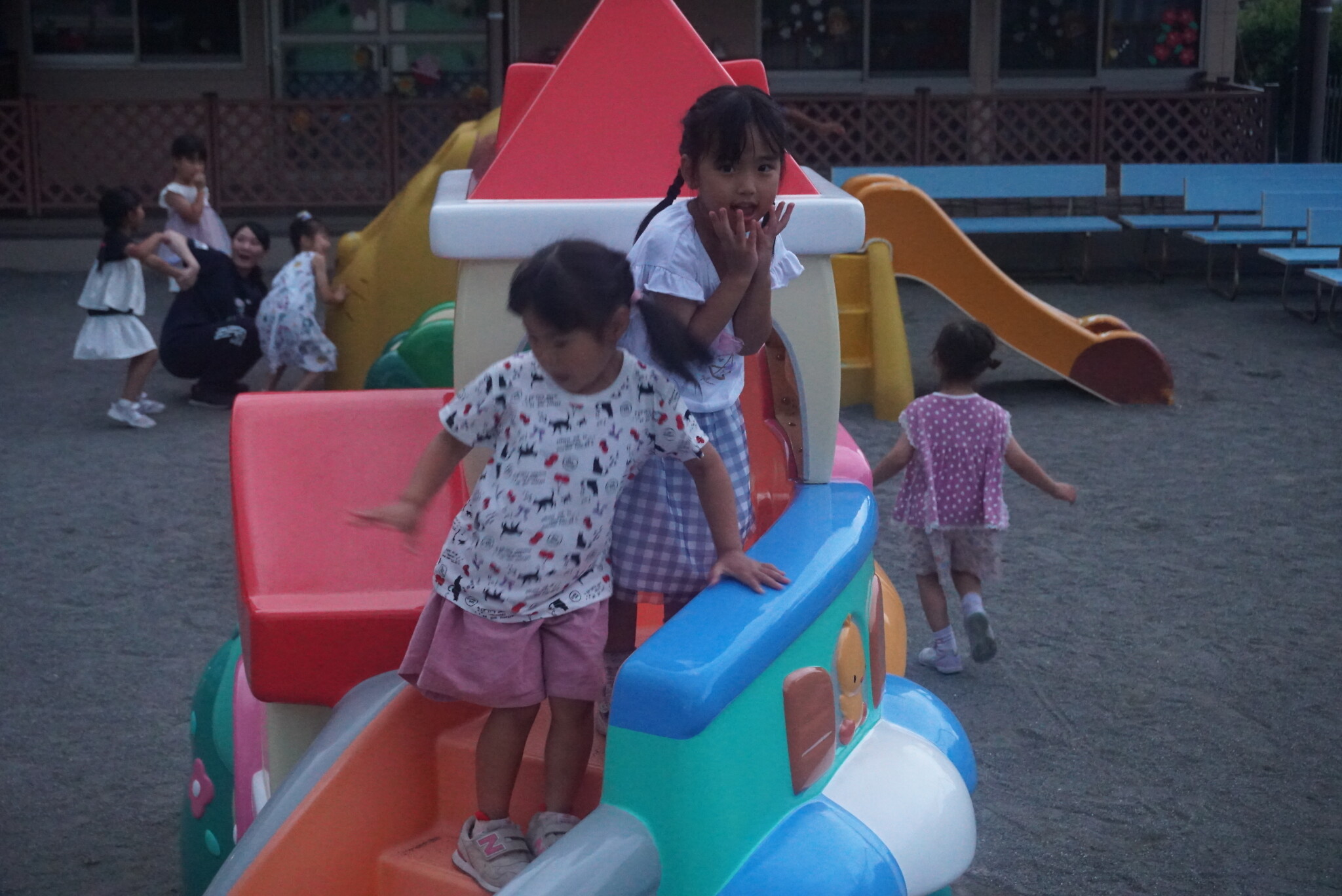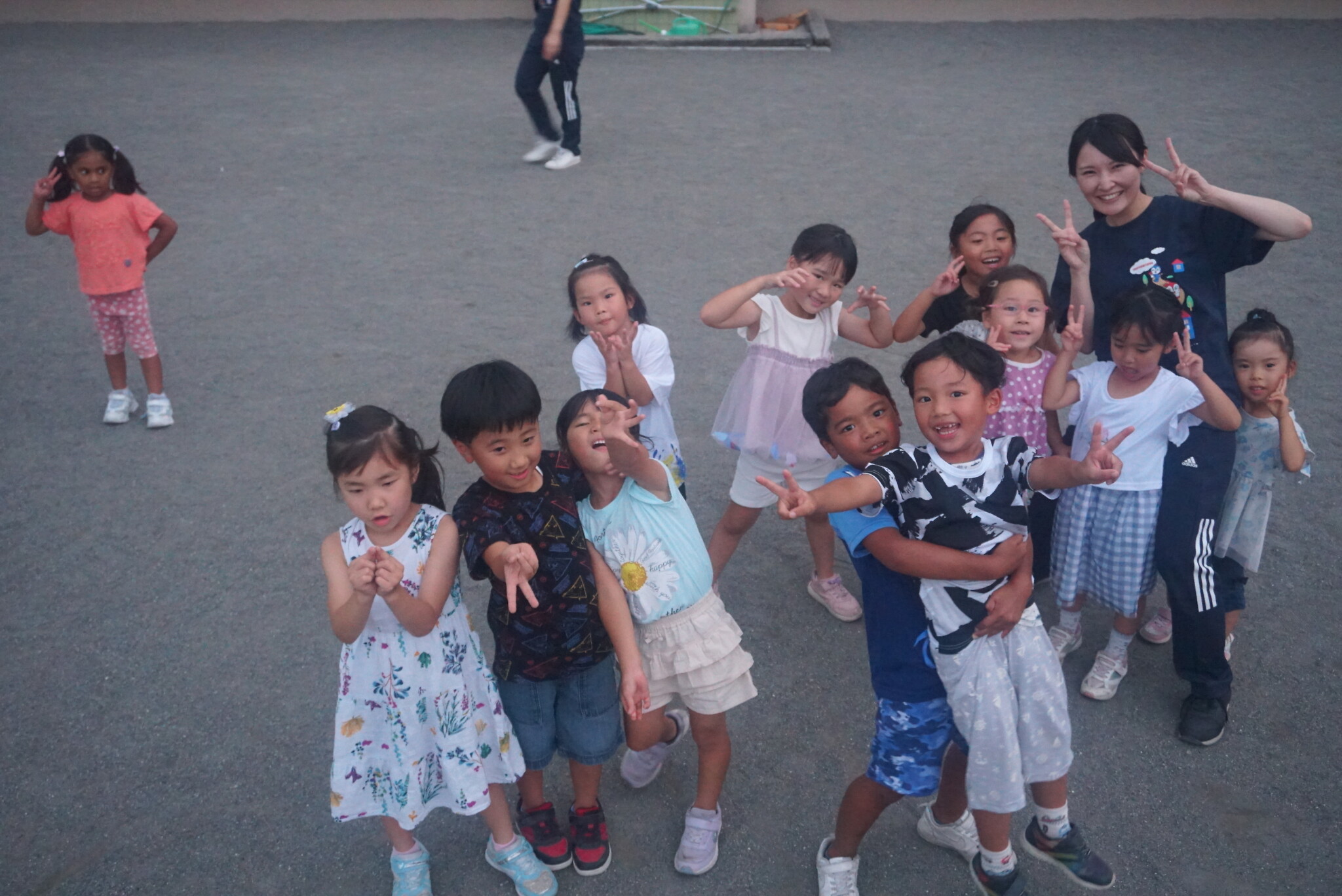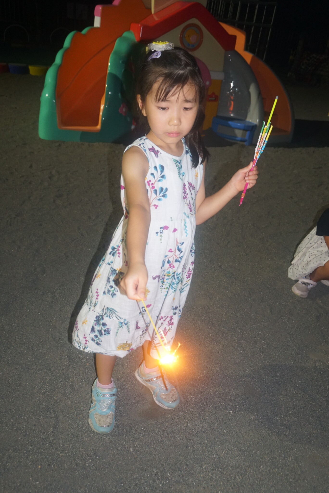 給食の後は夜の園庭で遊ん後にキャンプファイヤーをしました!!