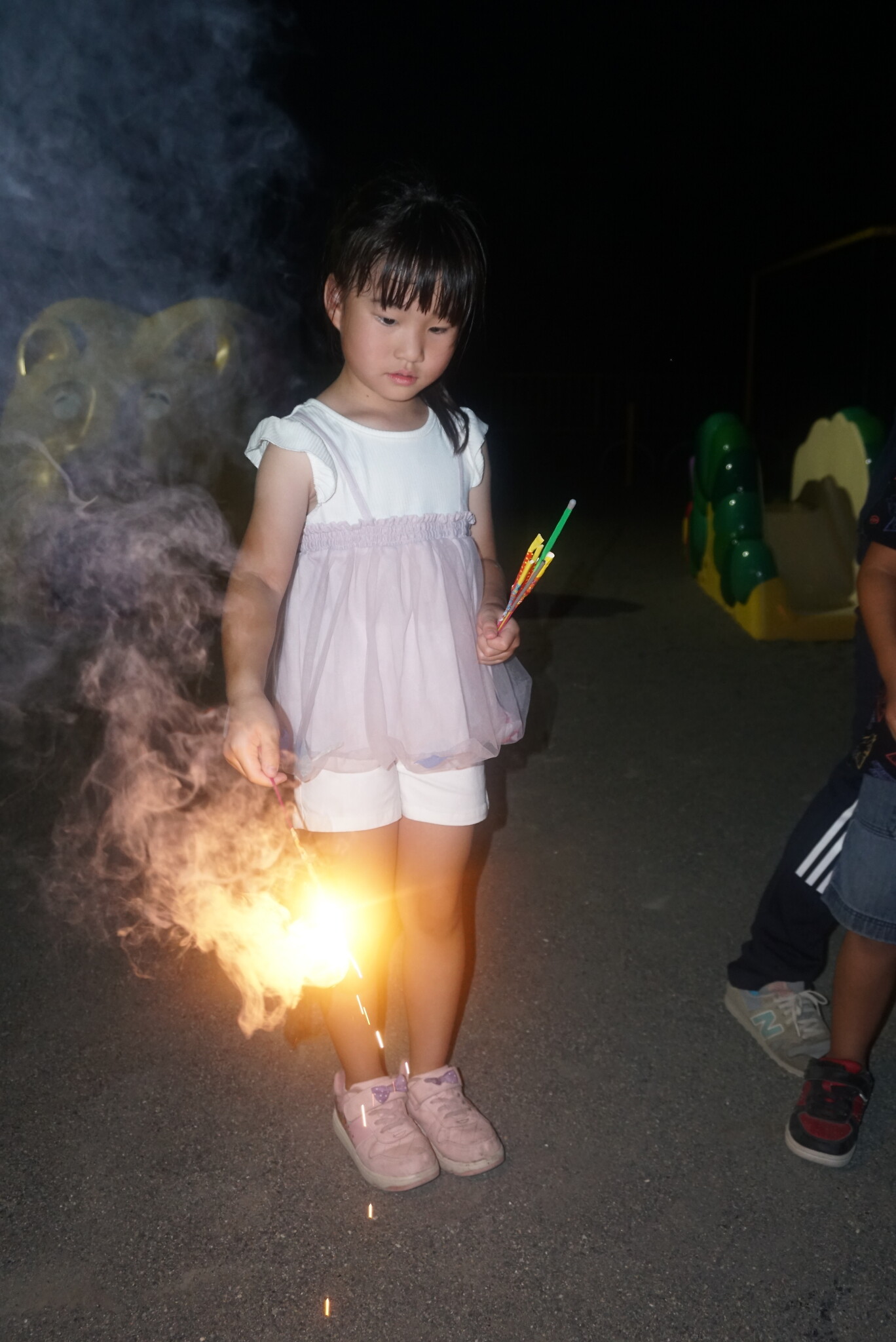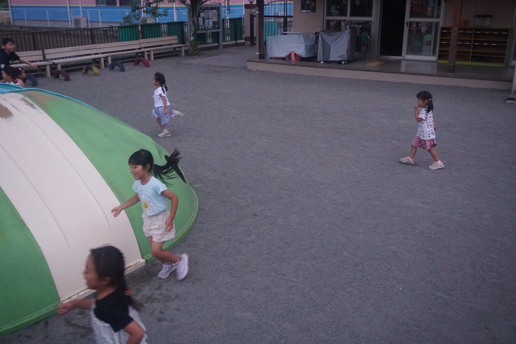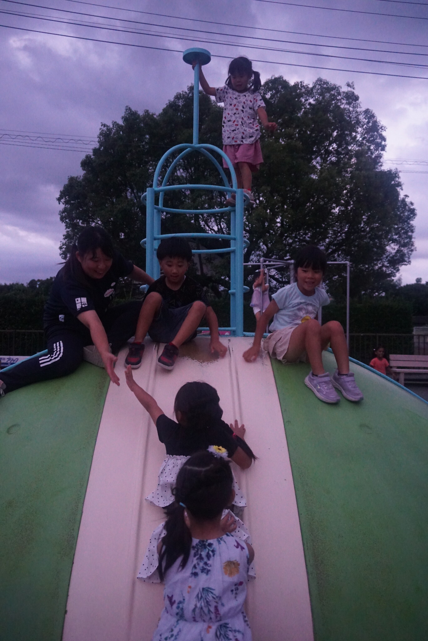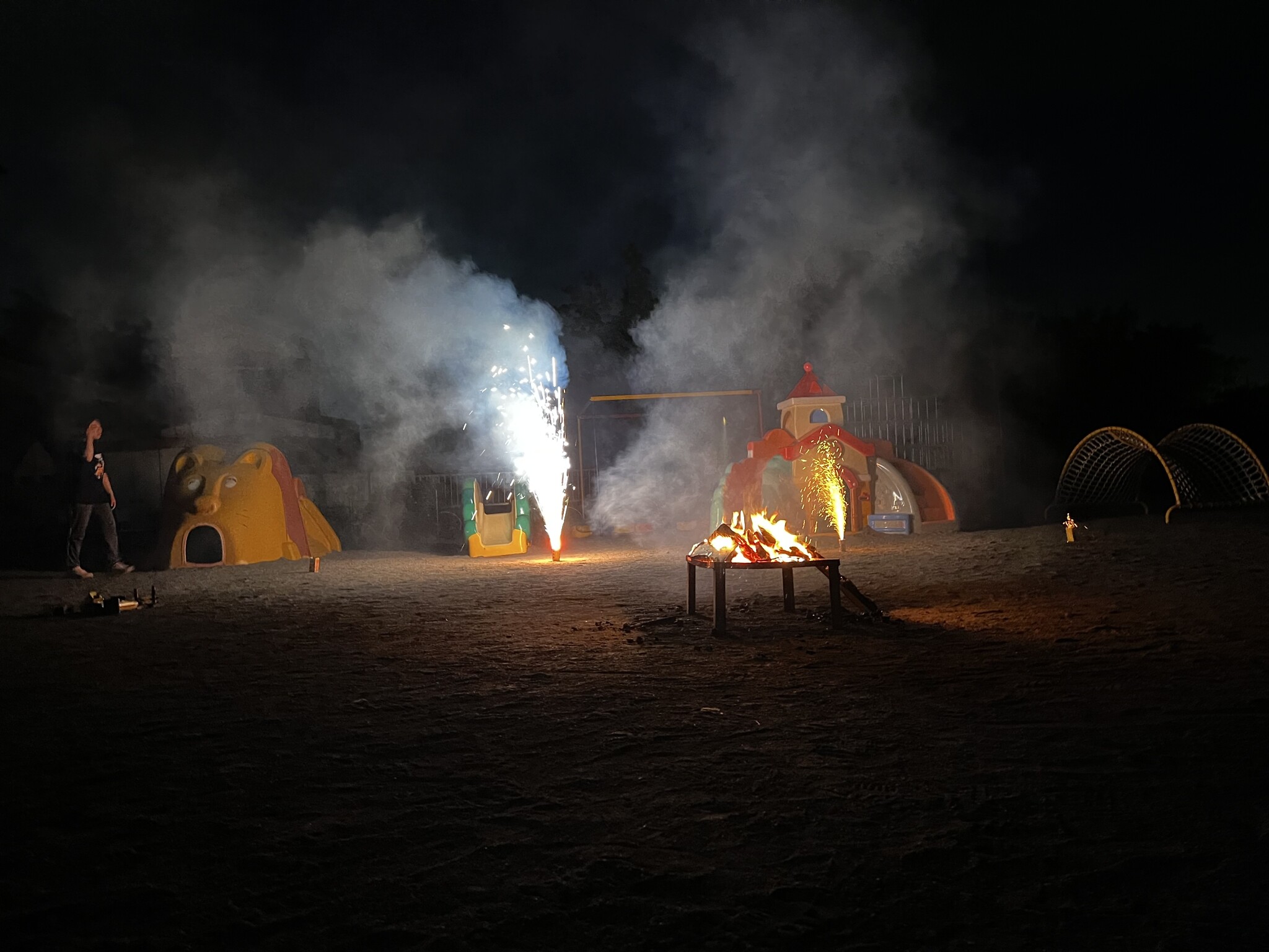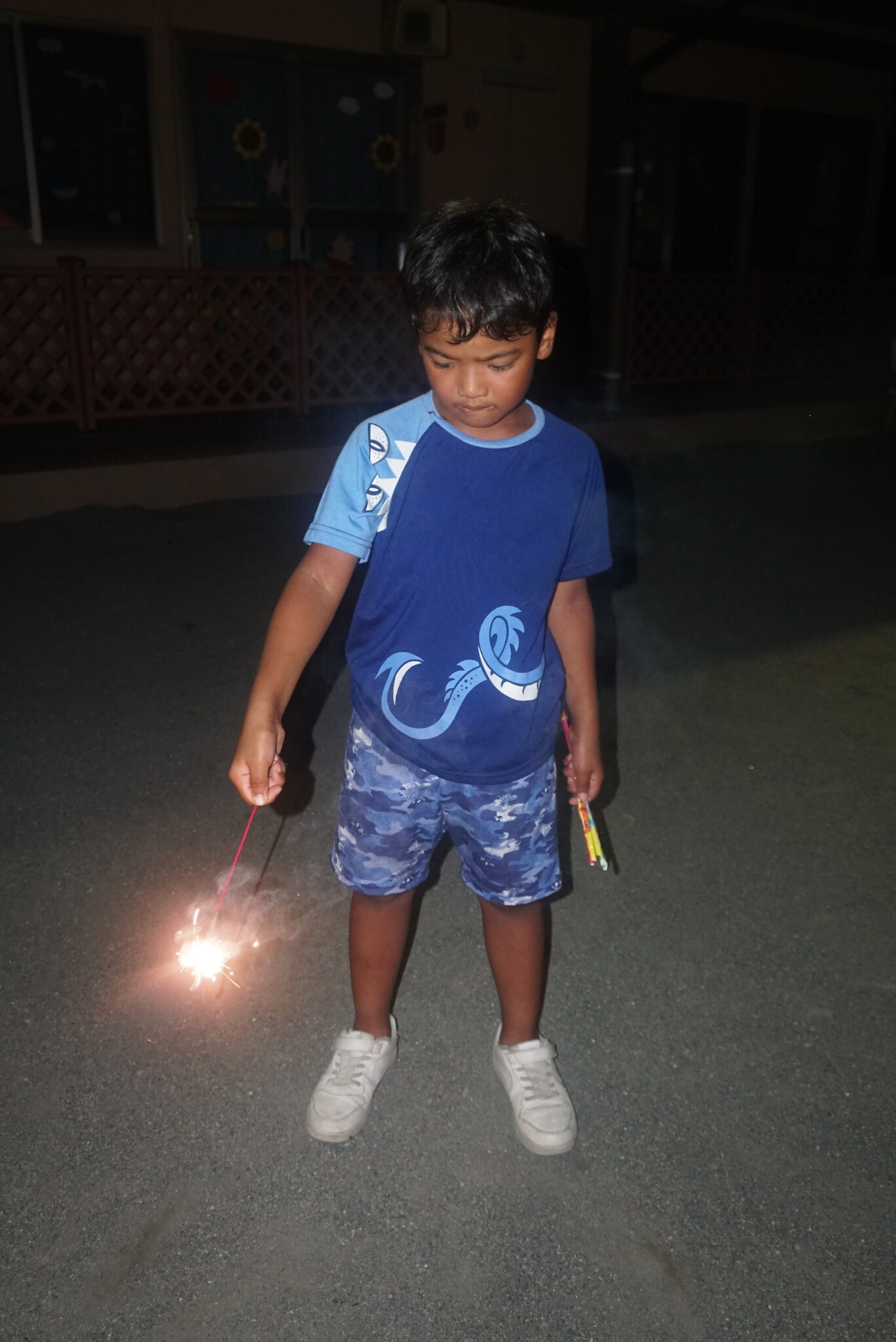給食の後は夜の園庭で遊ん後にキャンプファイヤーをしました!!