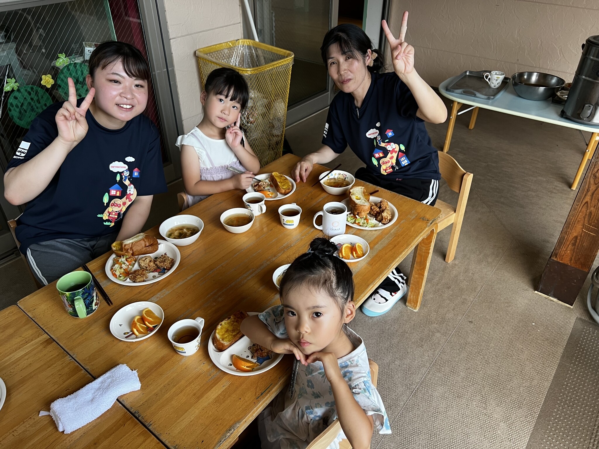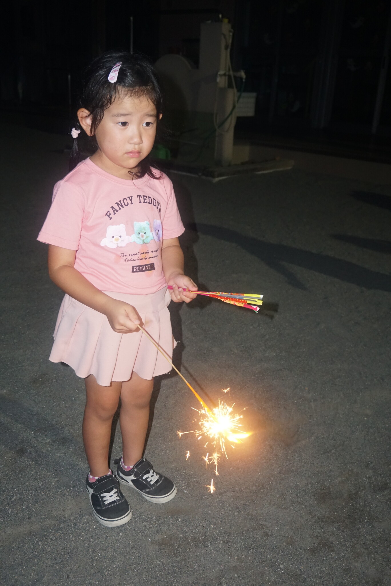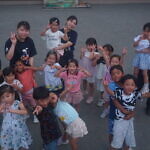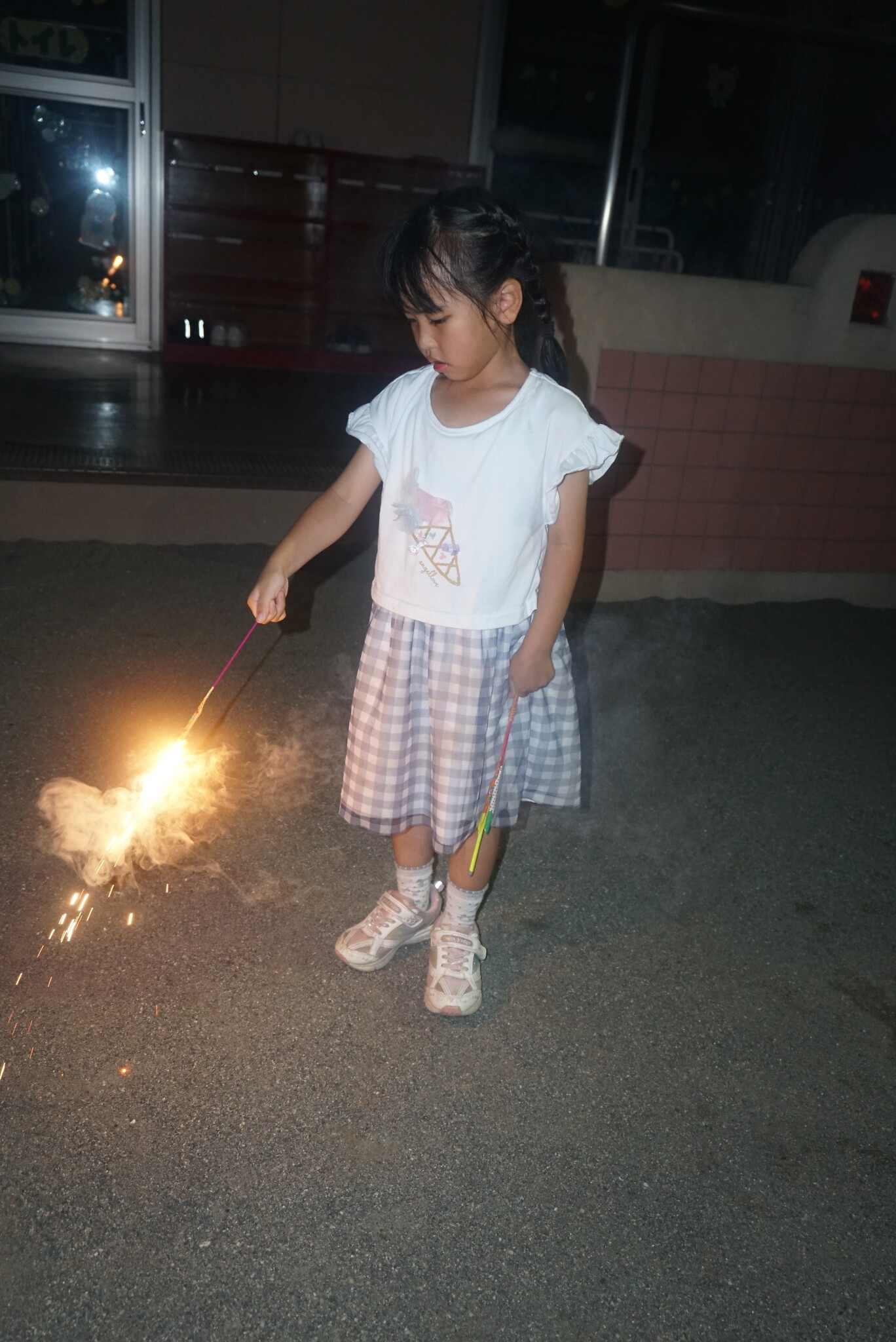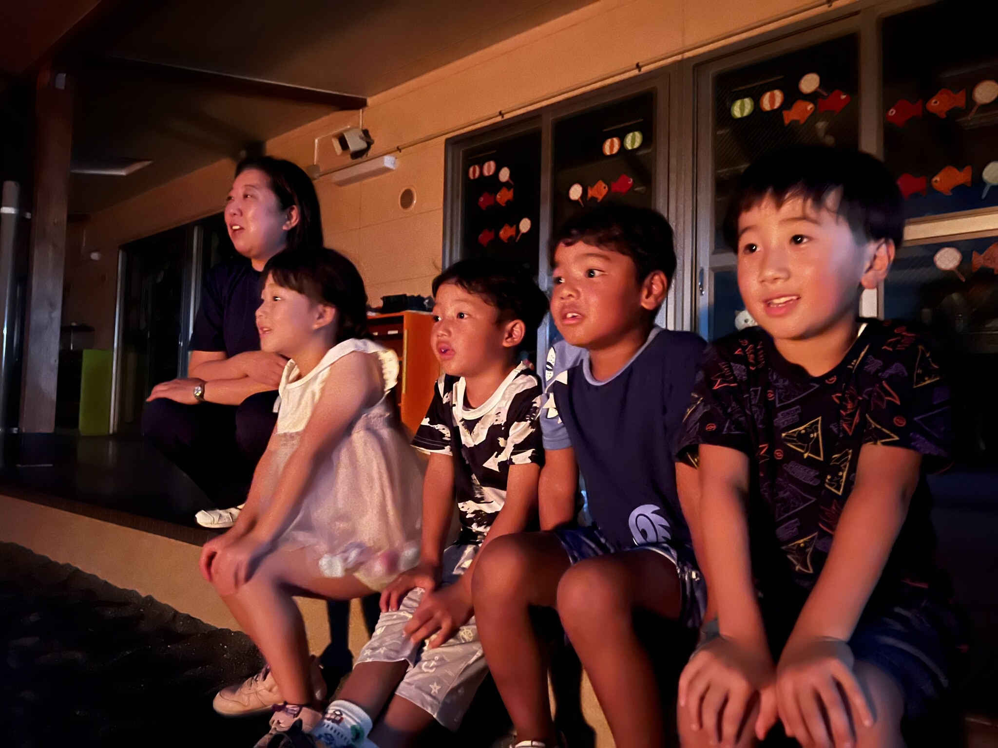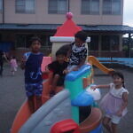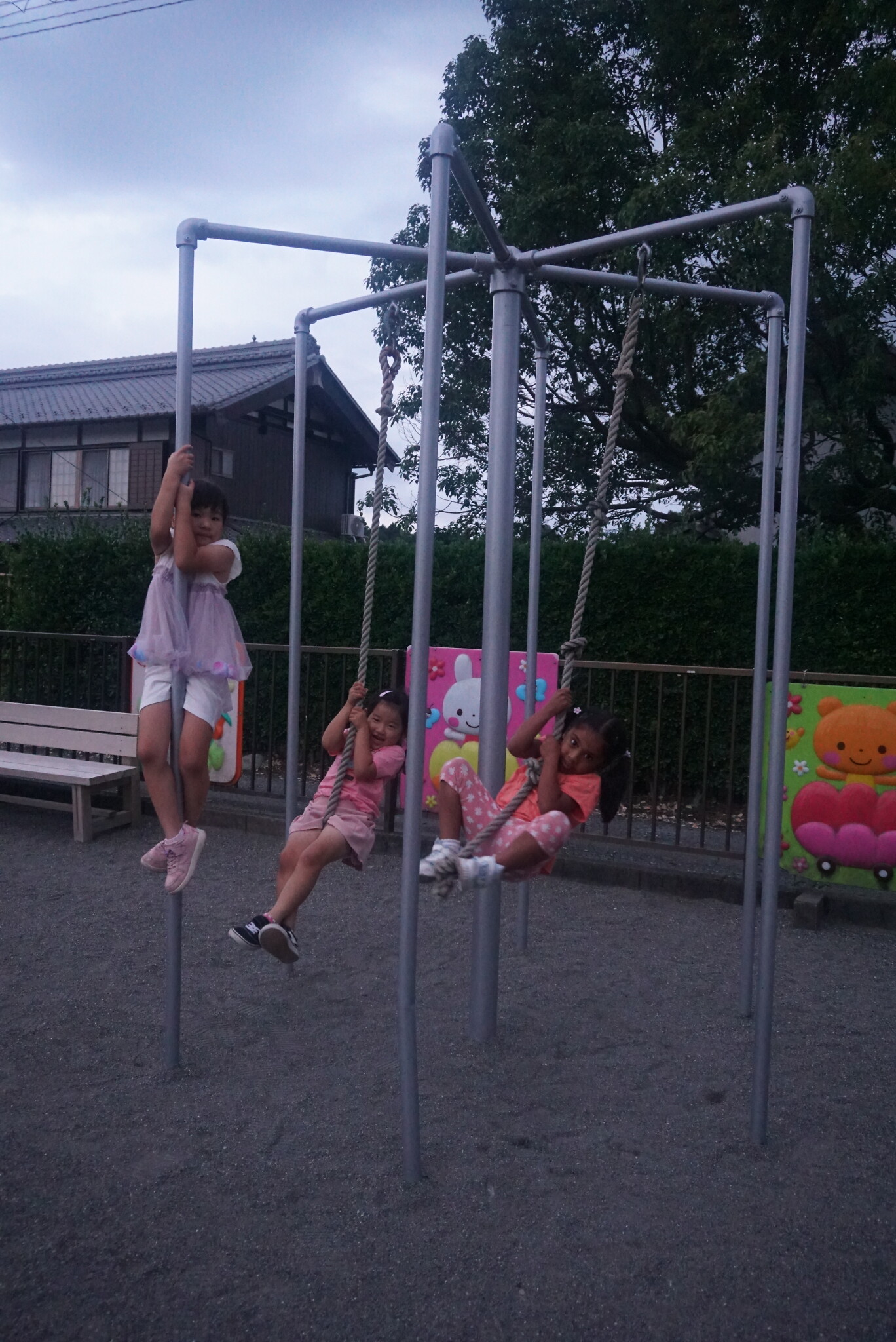 給食の後は夜の園庭で遊ん後にキャンプファイヤーをしました!!