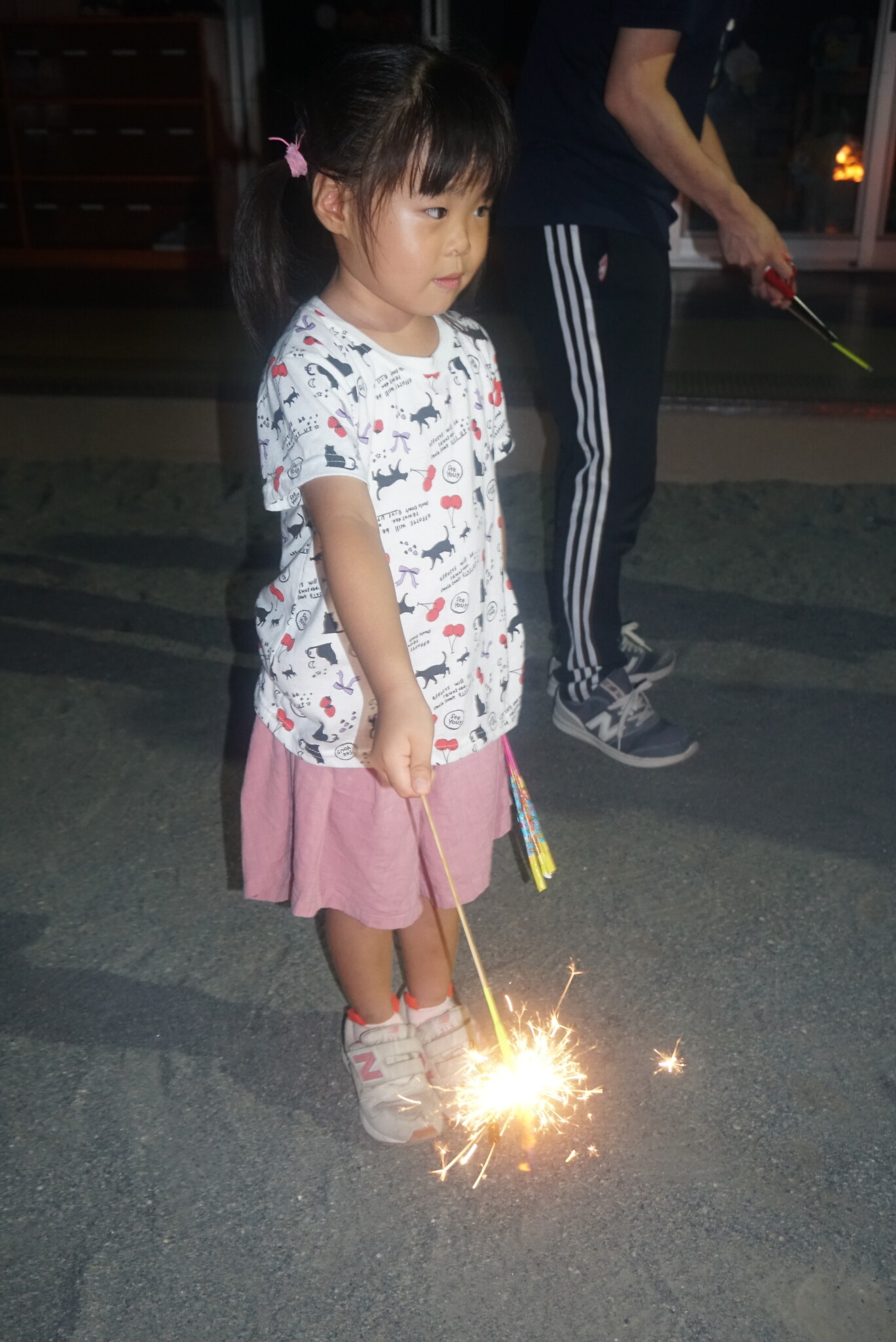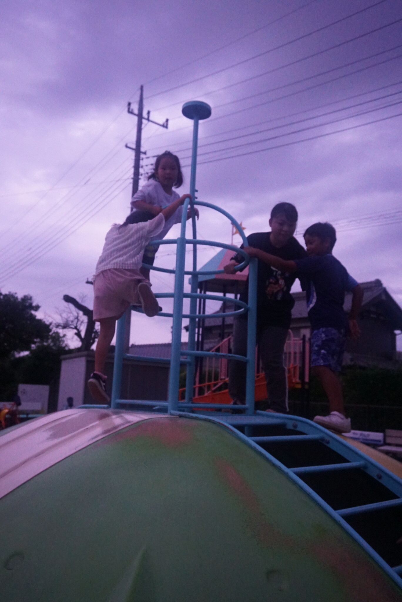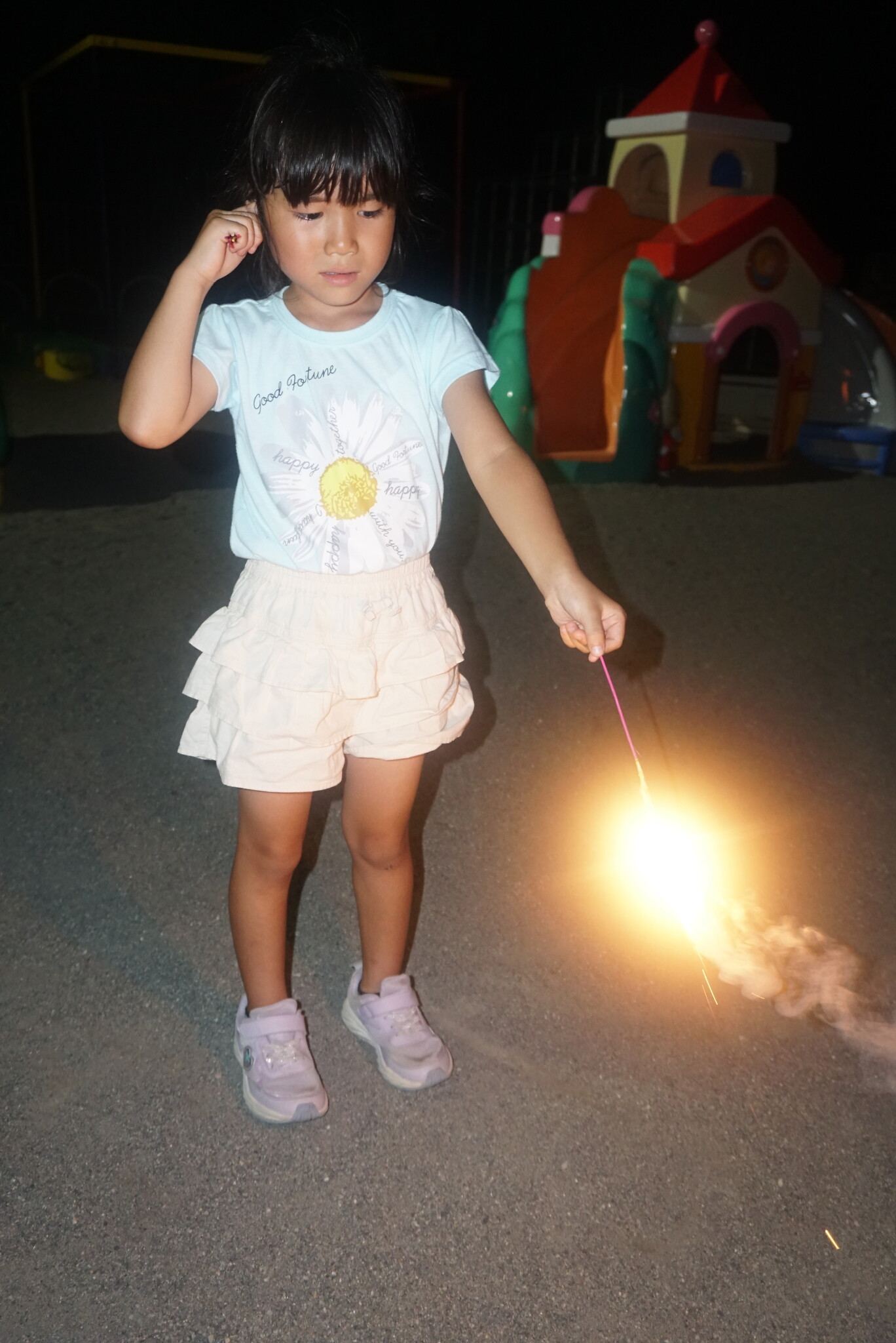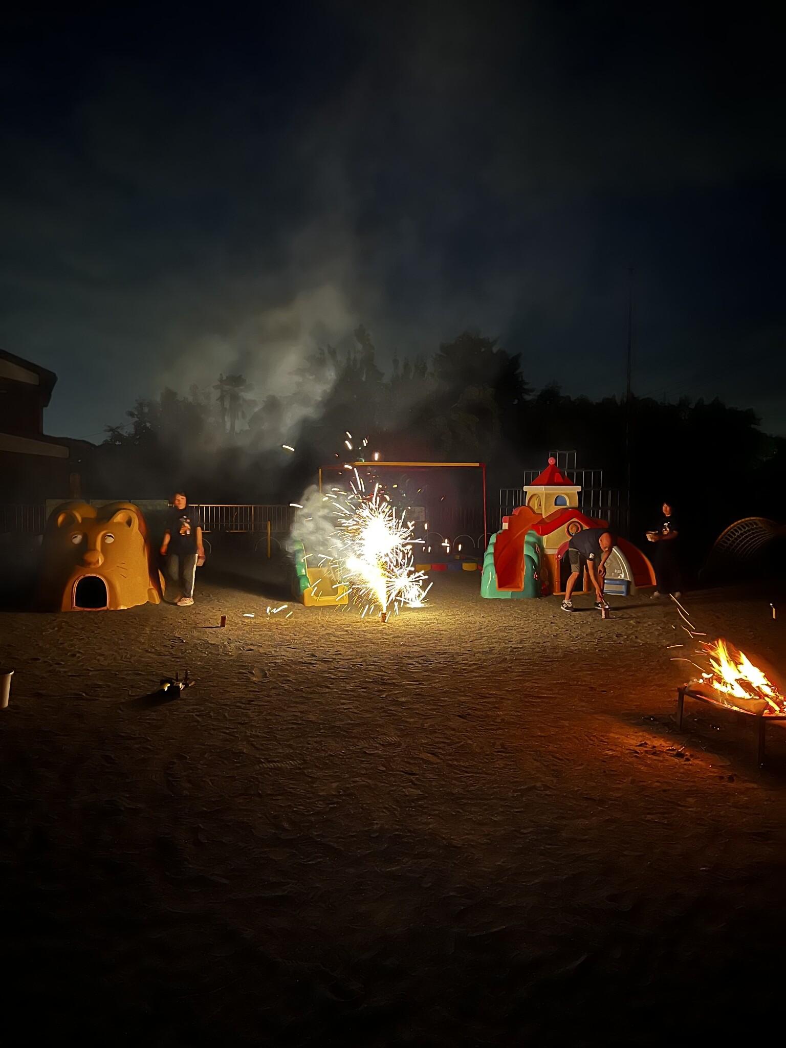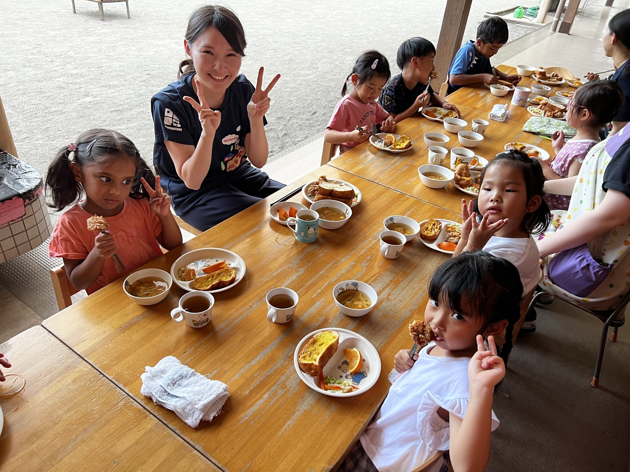 給食の後は夜の園庭で遊ん後にキャンプファイヤーをしました!!