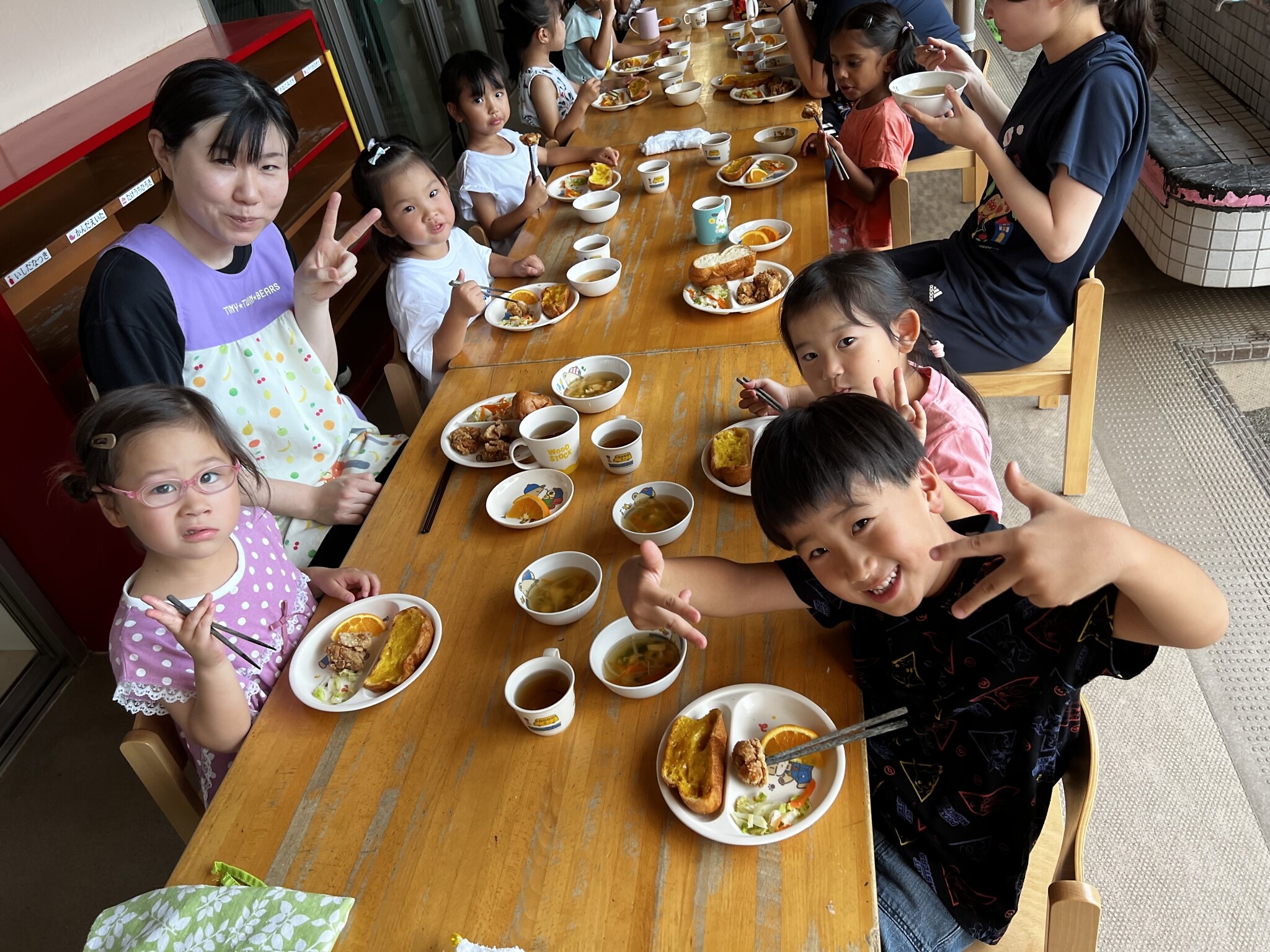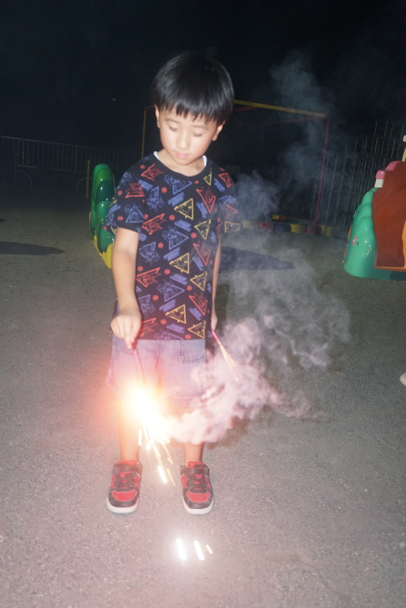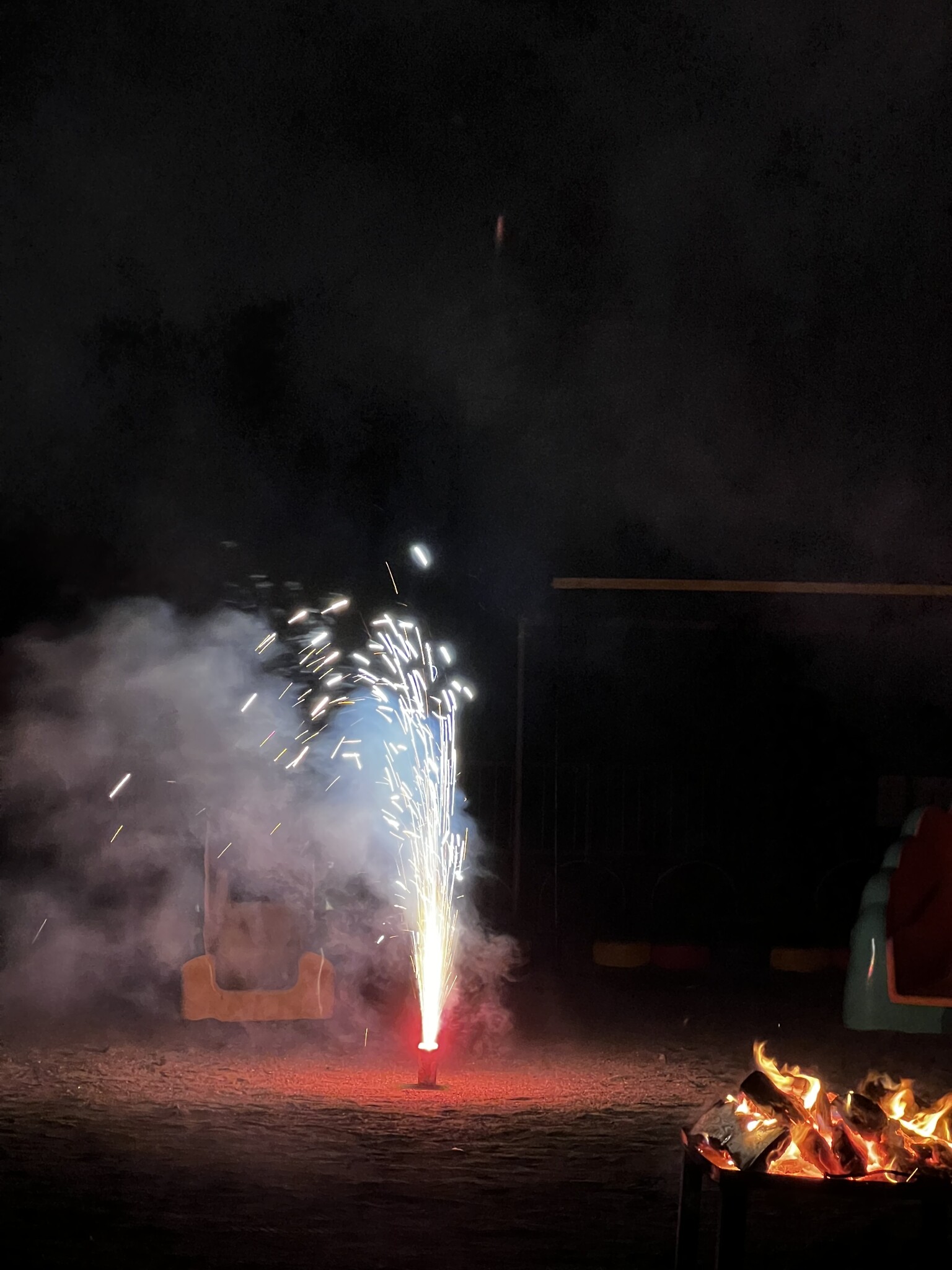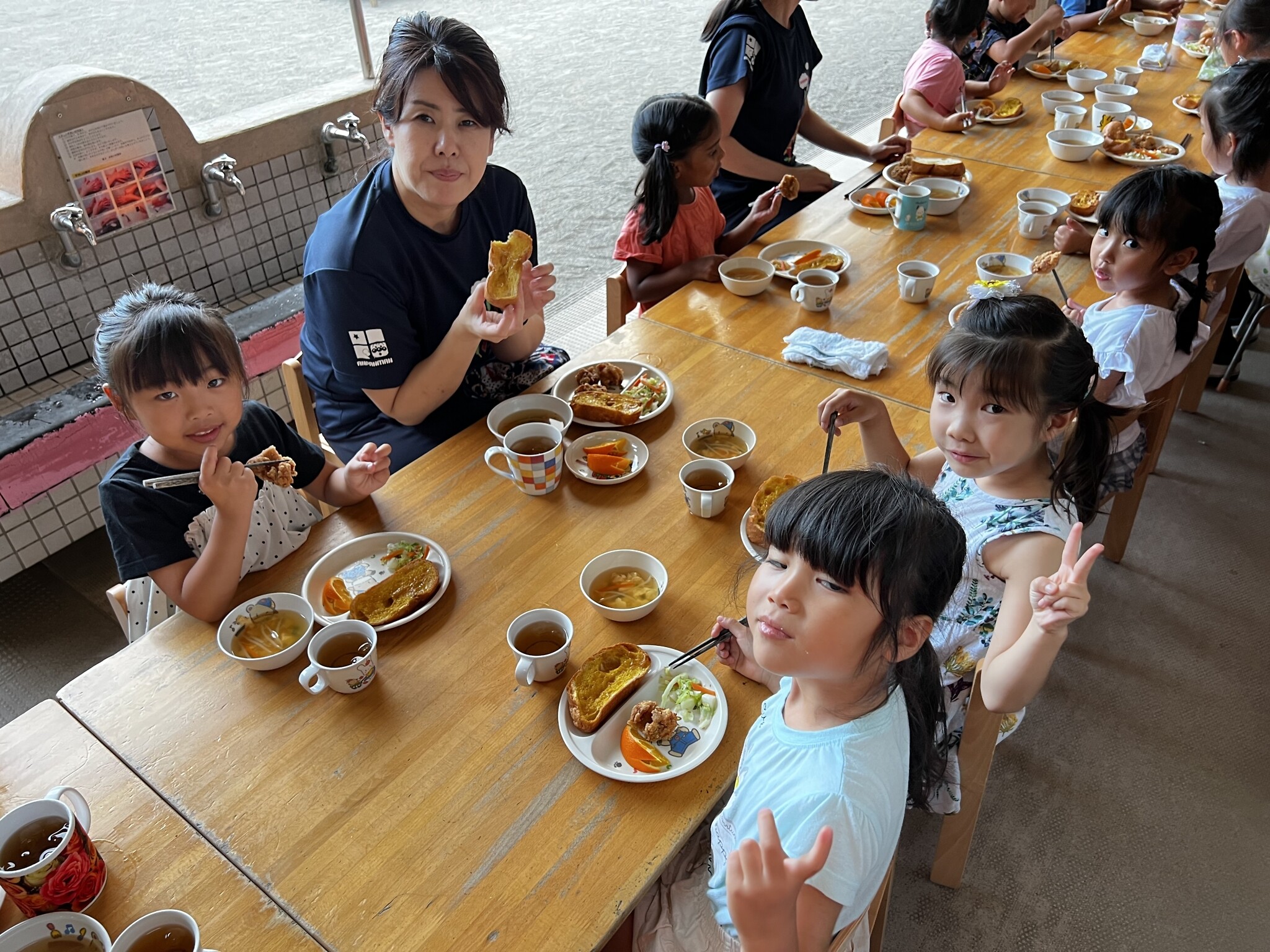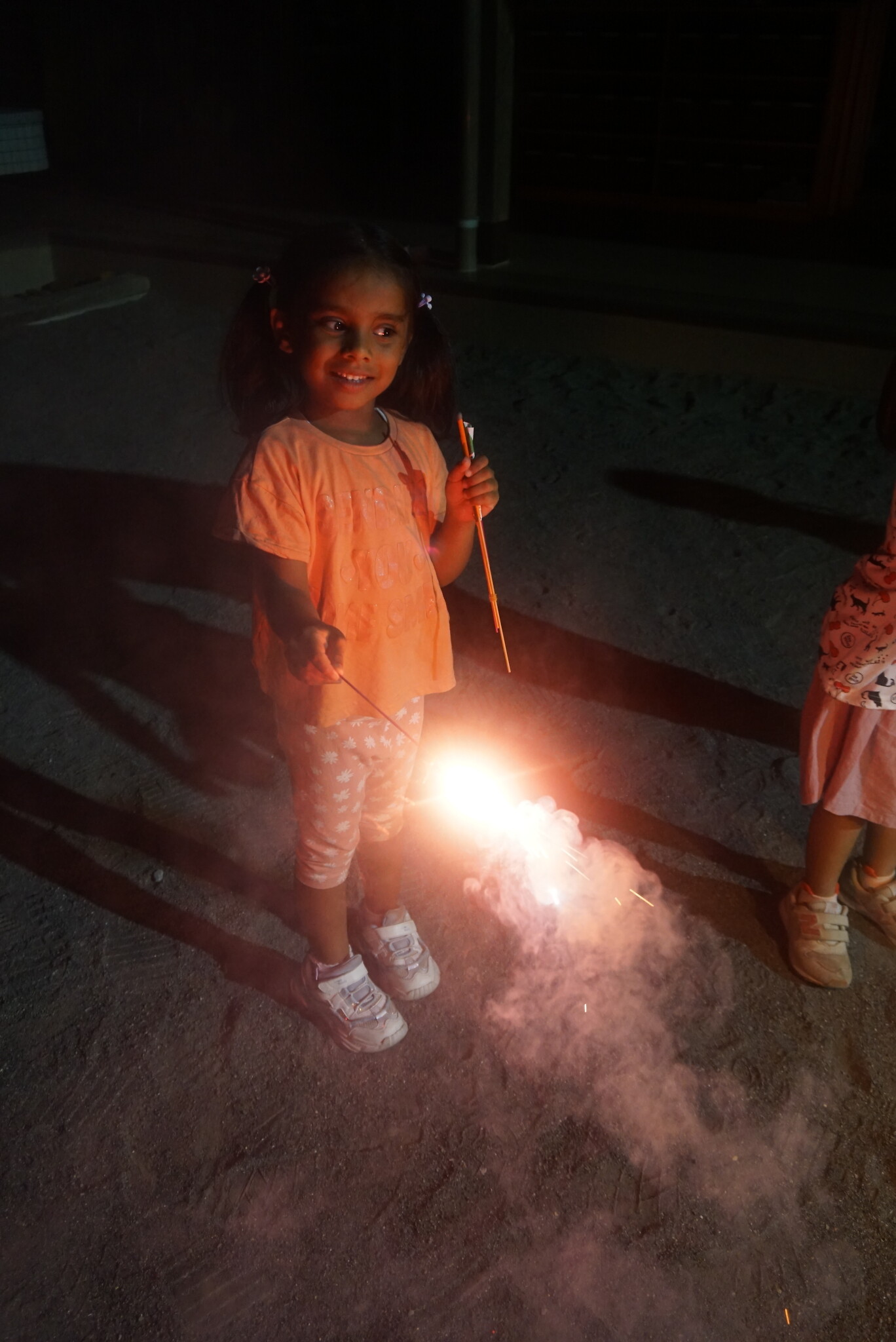 給食の後は夜の園庭で遊ん後にキャンプファイヤーをしました!!