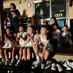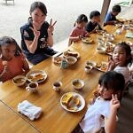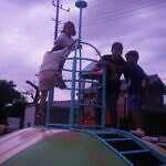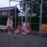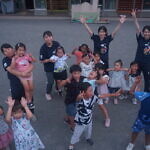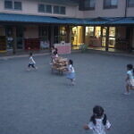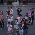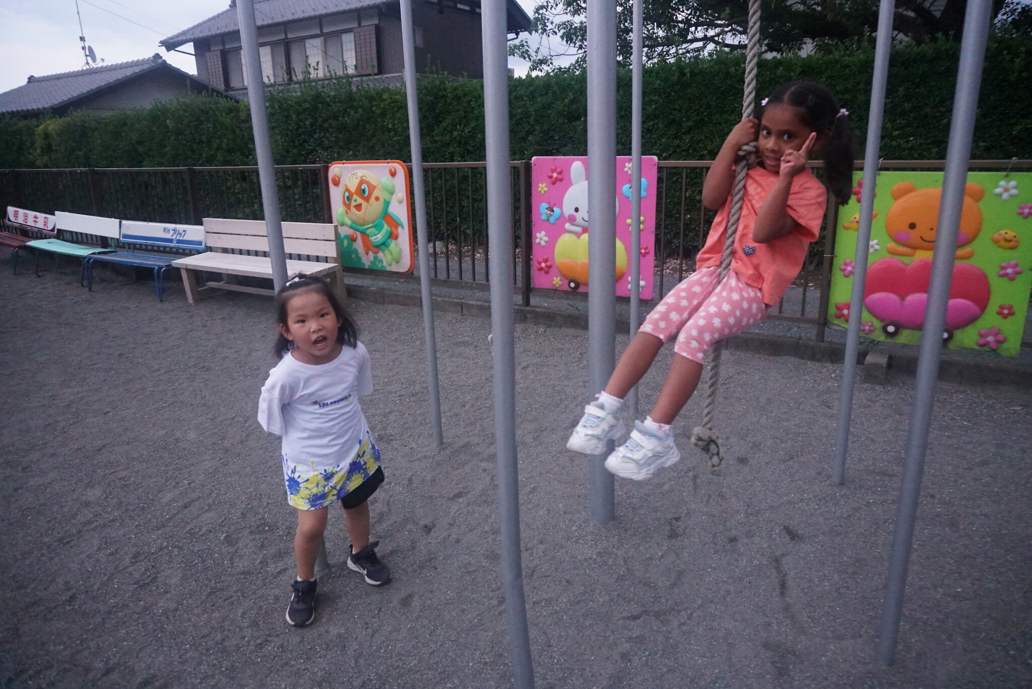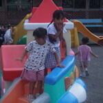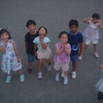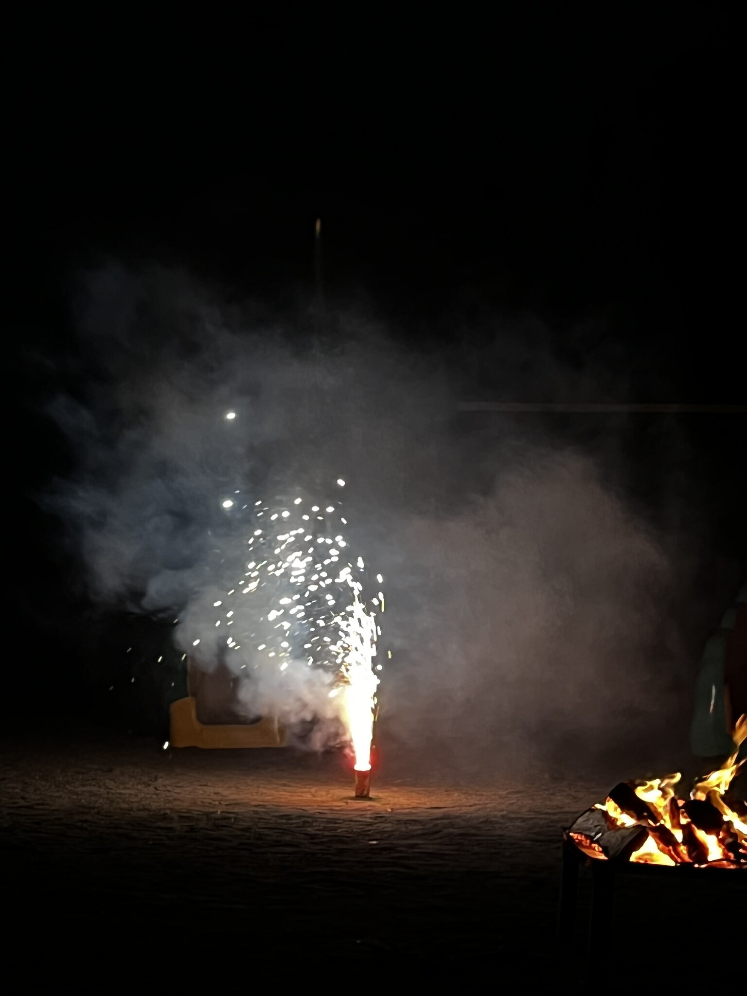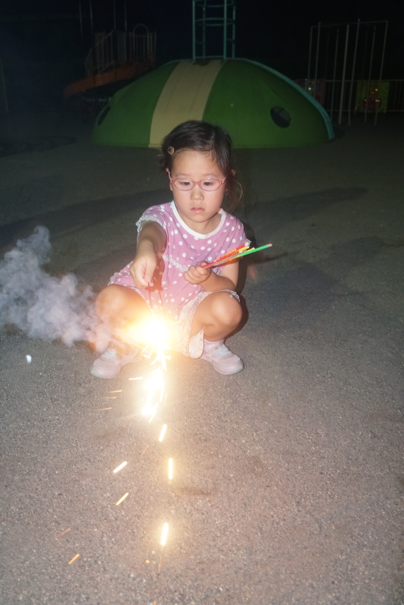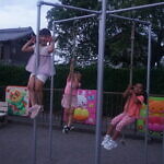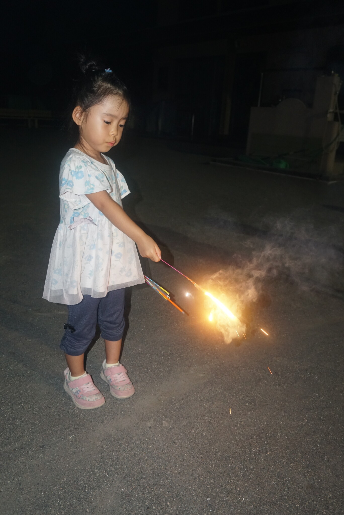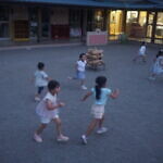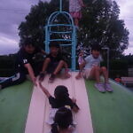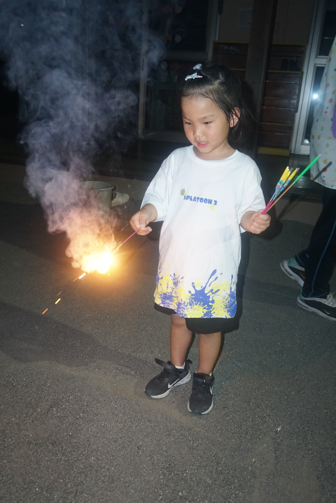 給食の後は夜の園庭で遊ん後にキャンプファイヤーをしました!!