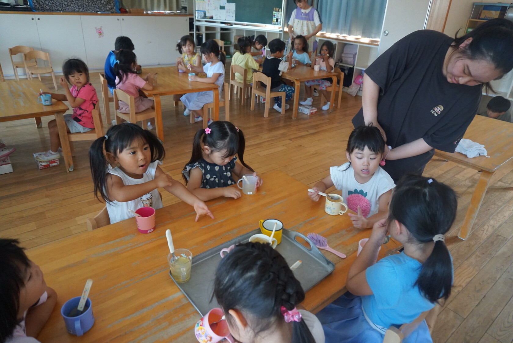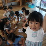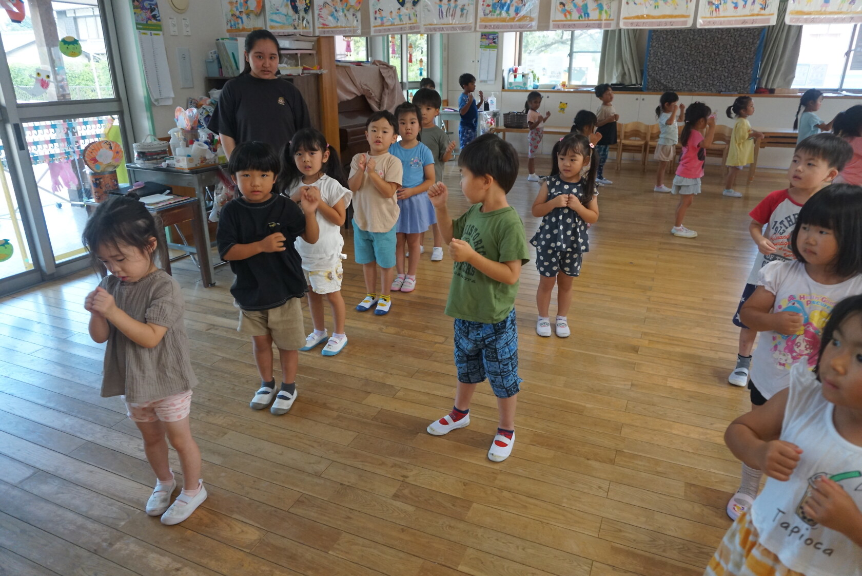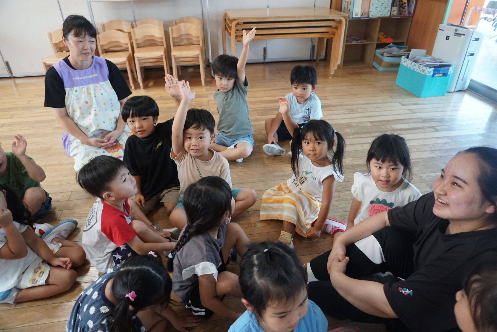 今日のできごと(ゆり) 公開済み: 2023年7月28日更新: 2023年7月28日 昨日、今日とボランティアのお姉さんが入ってくれました! 髪の毛を縛ってもらったり、遊んでもらったり、とても楽しそうにしていました 質問タイムもあり、好きな色や食べ物、動物や年齢などを元気に聞いていました 又、レコード鼓隊のポンポンの練習も始まり、ノリノリで踊る姿が見られます