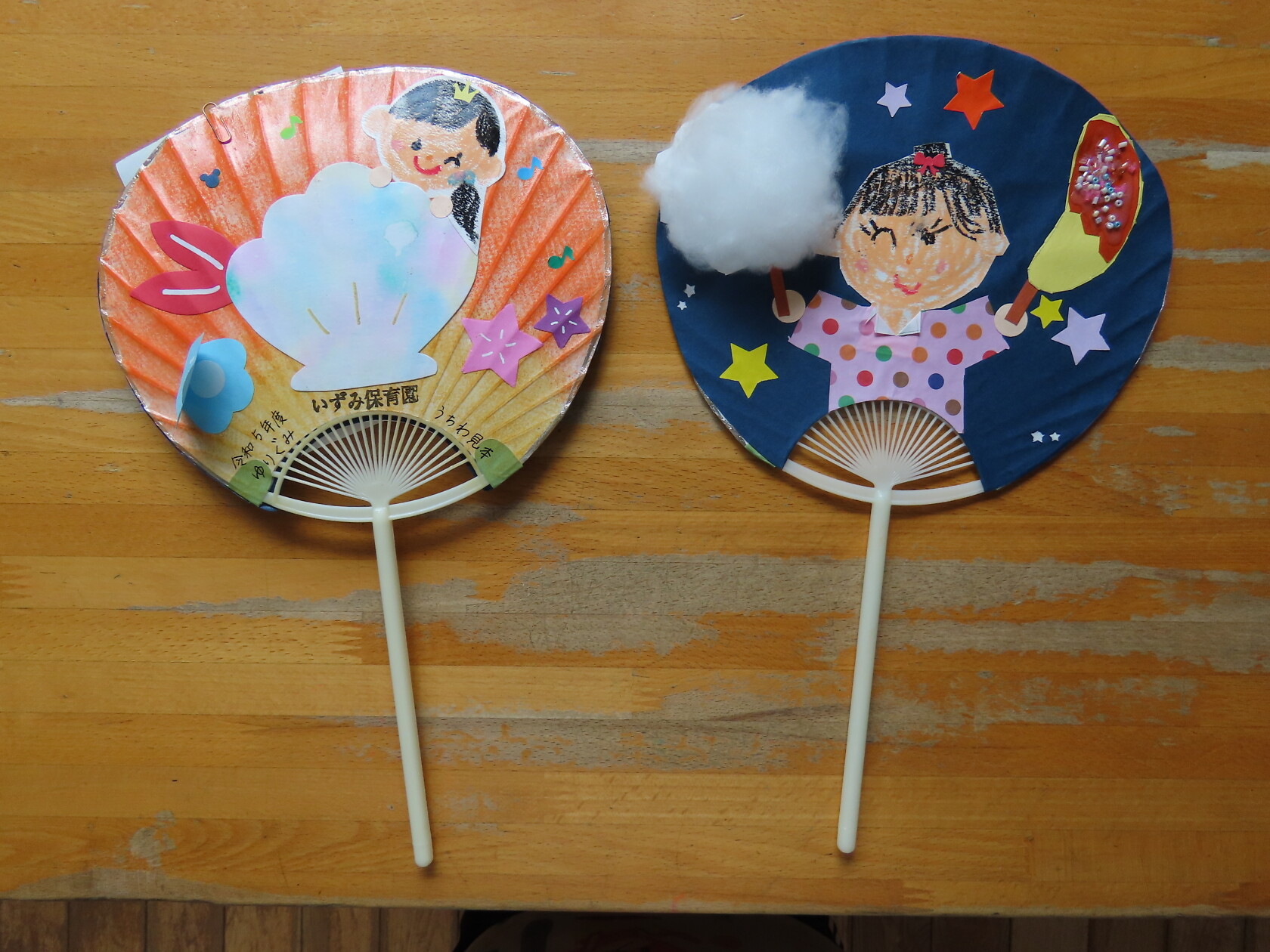 うちわの製作持ち帰り(ゆり) 公開済み: 2023年7月31日更新: 2023年7月31日 本日うちわを持ち帰ります🎵 アルミホイルを使ってにじみ絵をしたり、チョコバナナにビーズを振りかけて飾り付けたりと楽しく製作することができました! お家でぜひ使って下さい✨