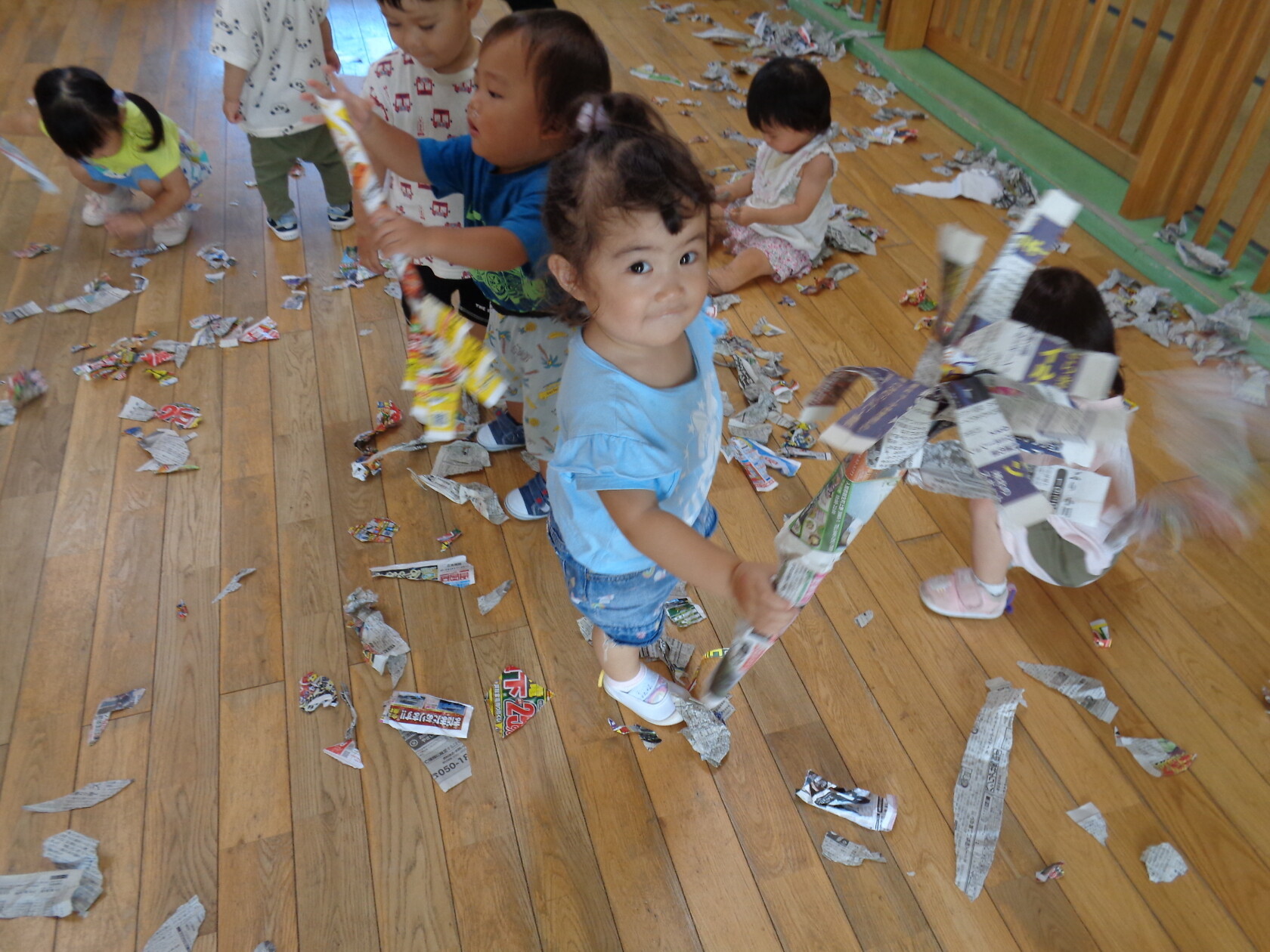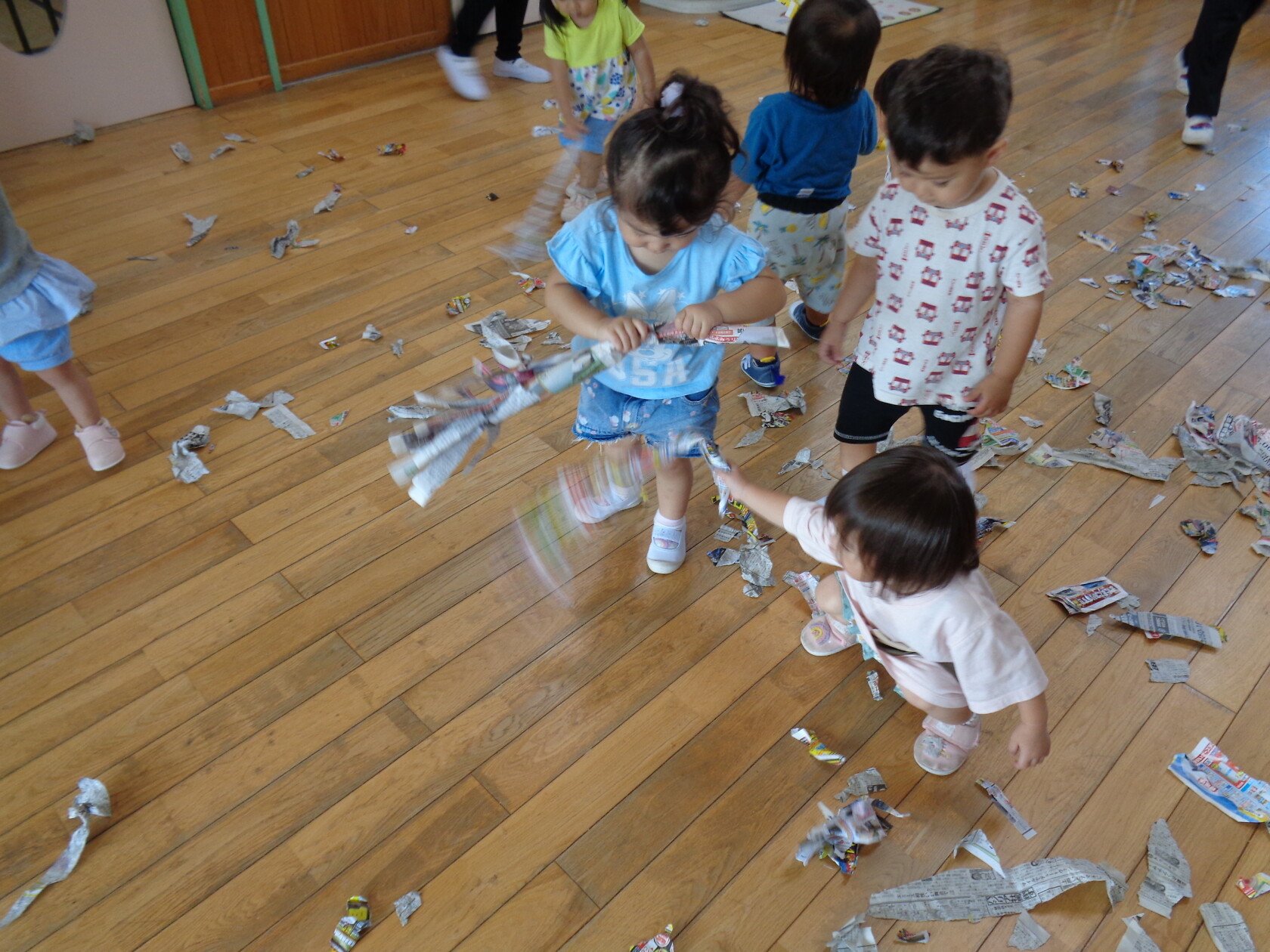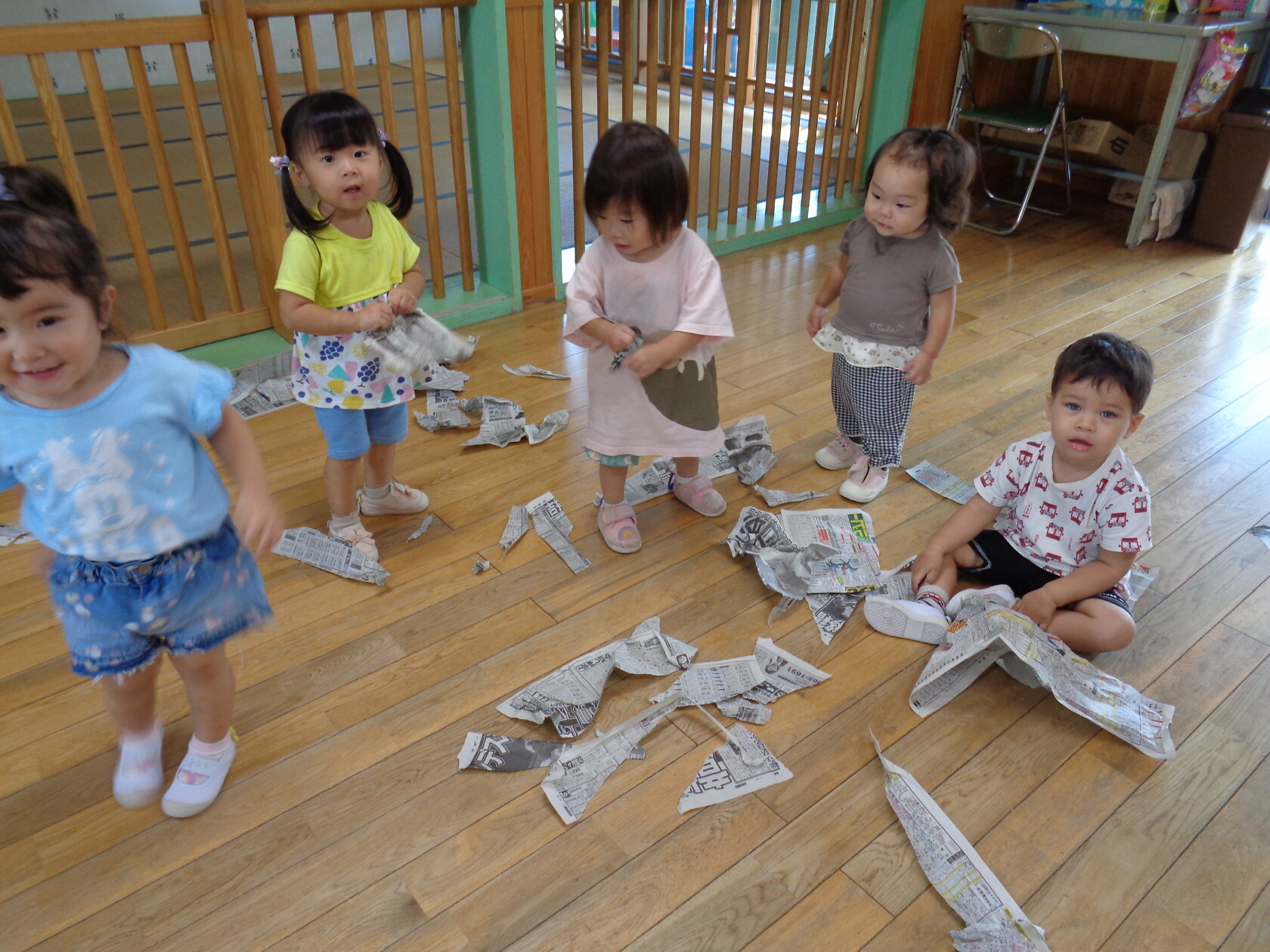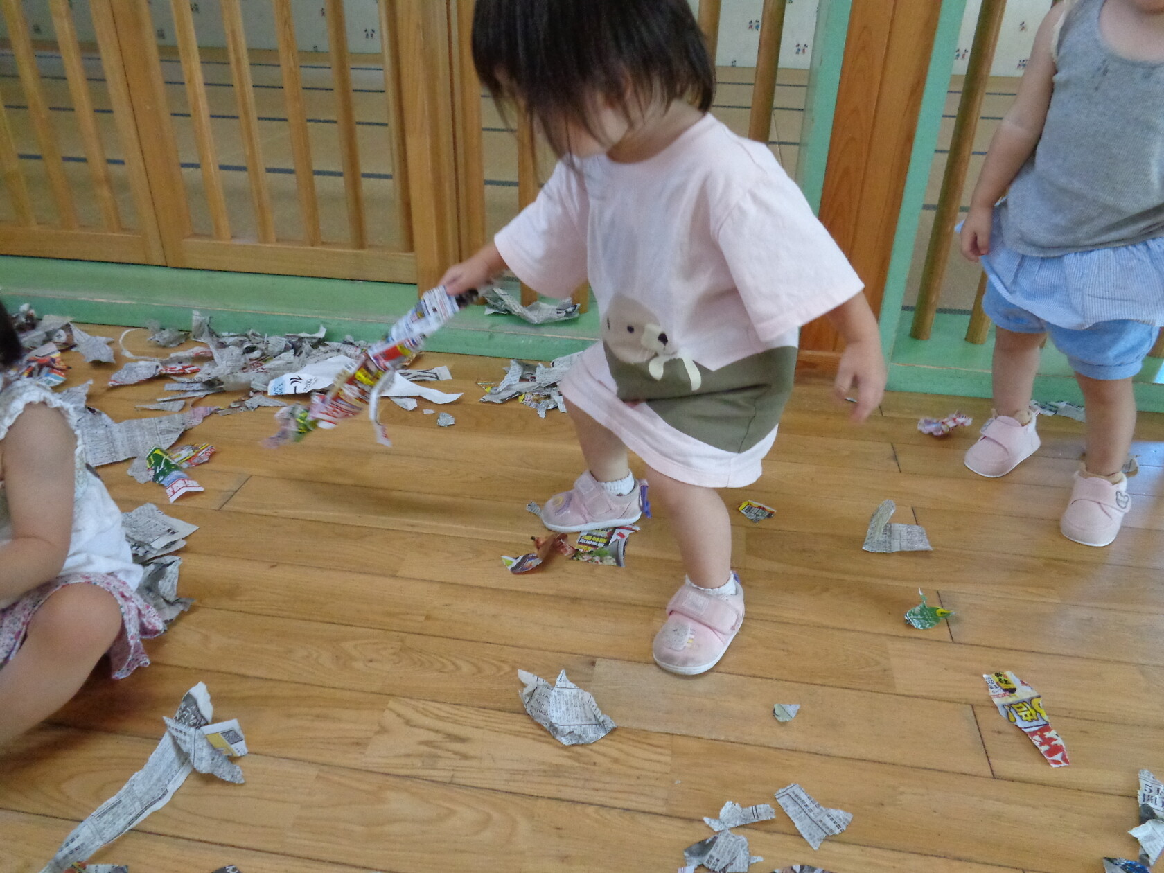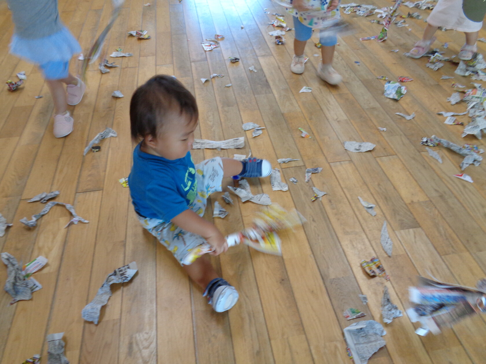 今日は、お部屋で新聞遊びをしました🎼 ちぎったり、丸めてボールにしたり、花びらのように上からパラパラ落としたり、色々な遊び方を楽しみました😊