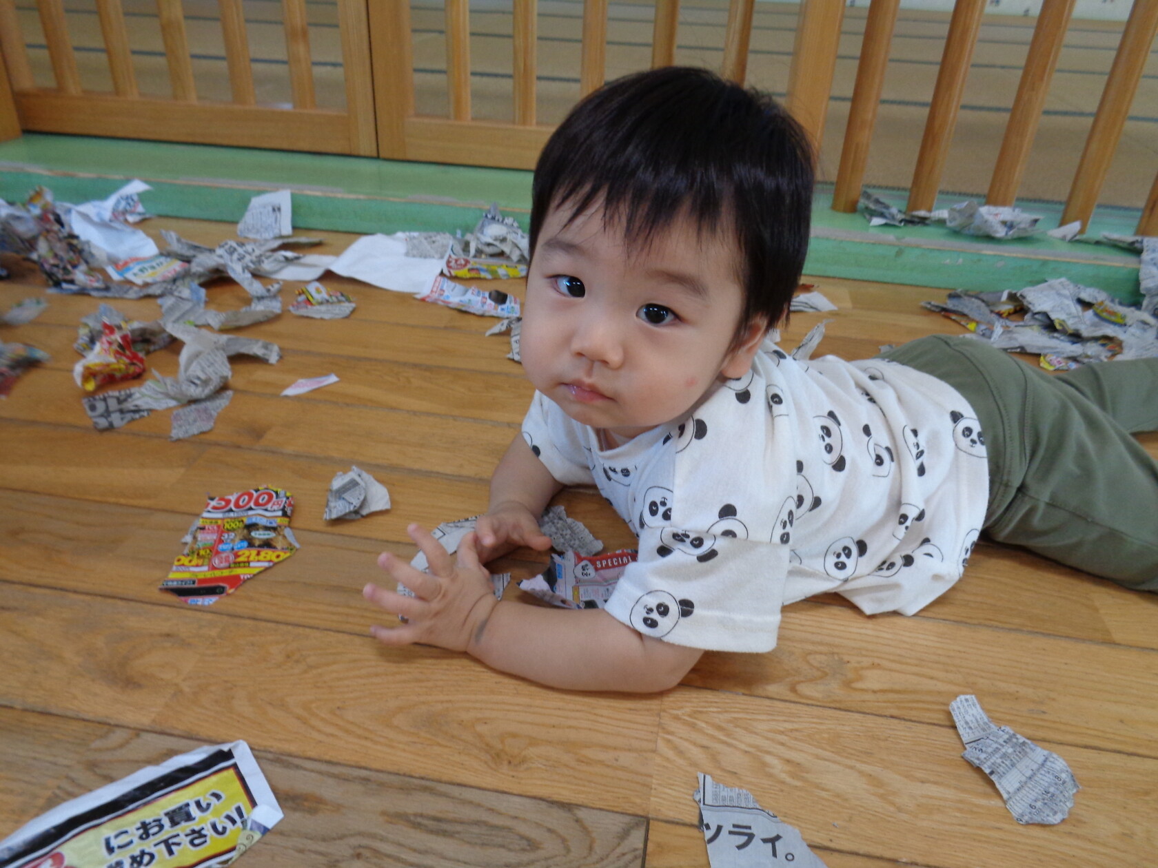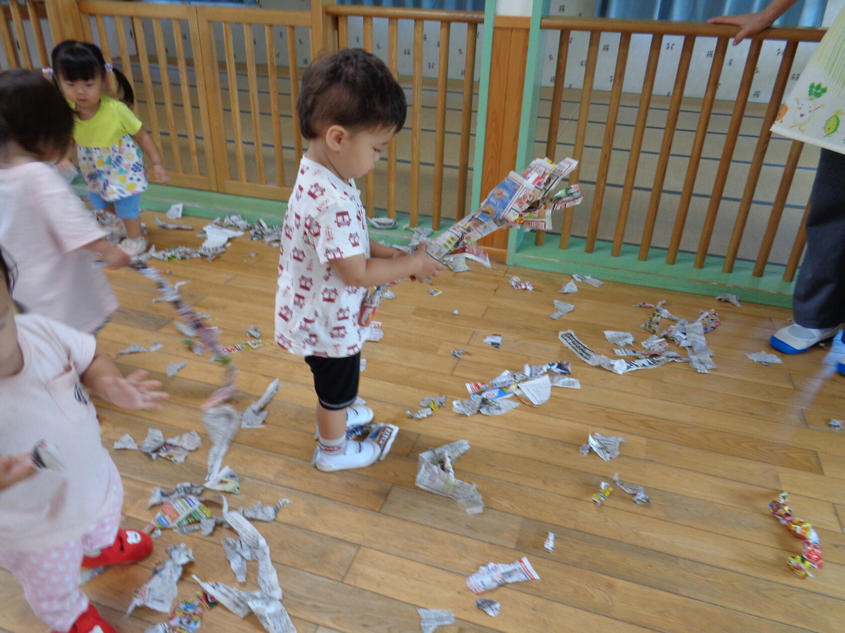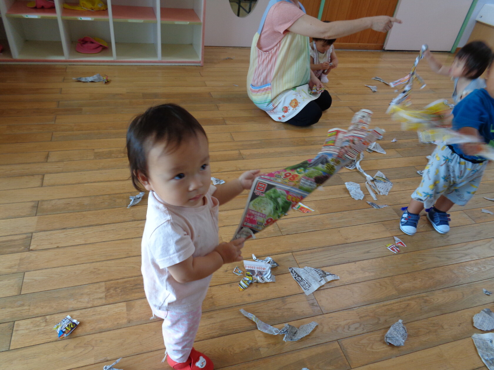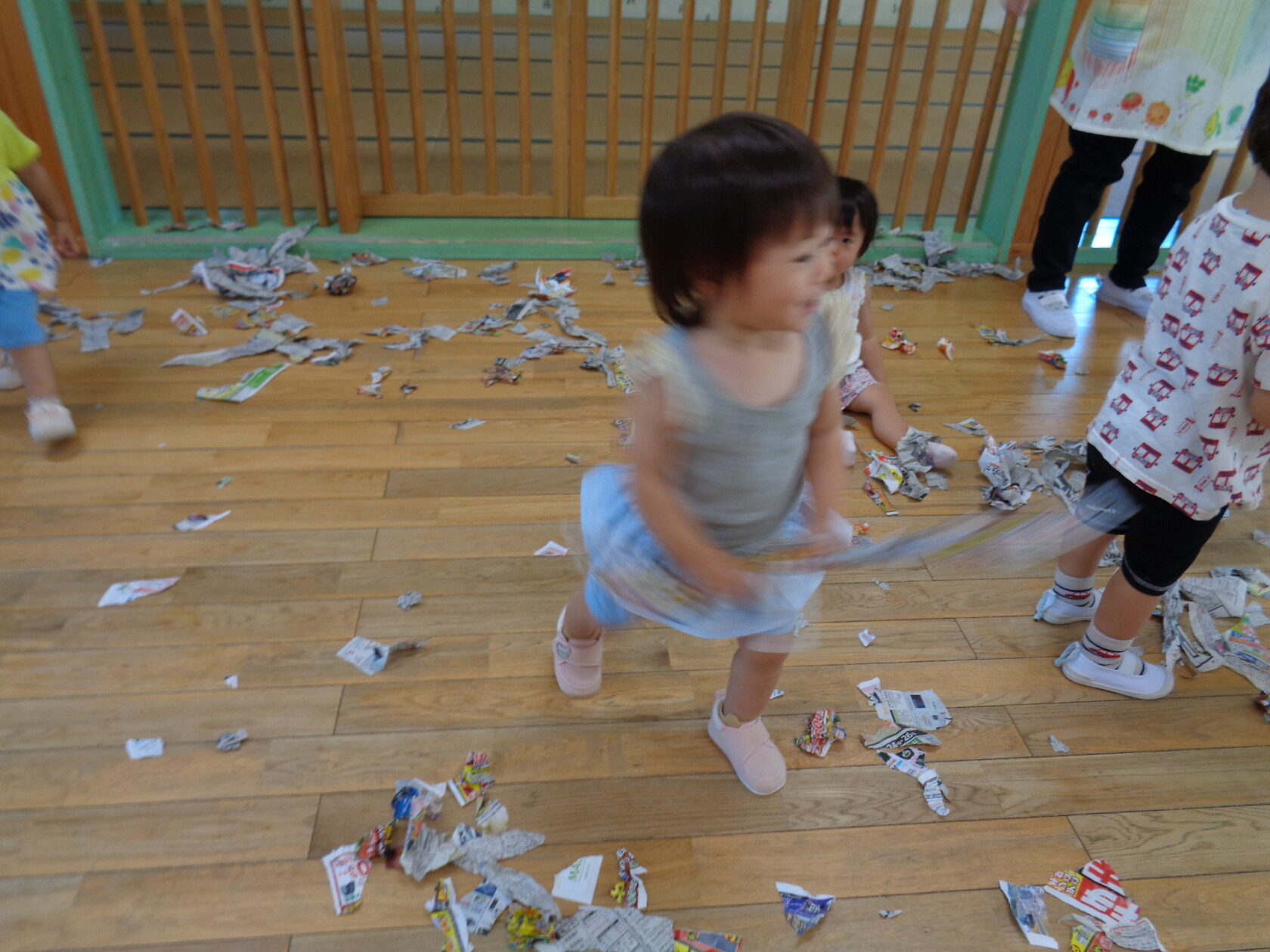 今日は、お部屋で新聞遊びをしました🎼 ちぎったり、丸めてボールにしたり、花びらのように上からパラパラ落としたり、色々な遊び方を楽しみました😊